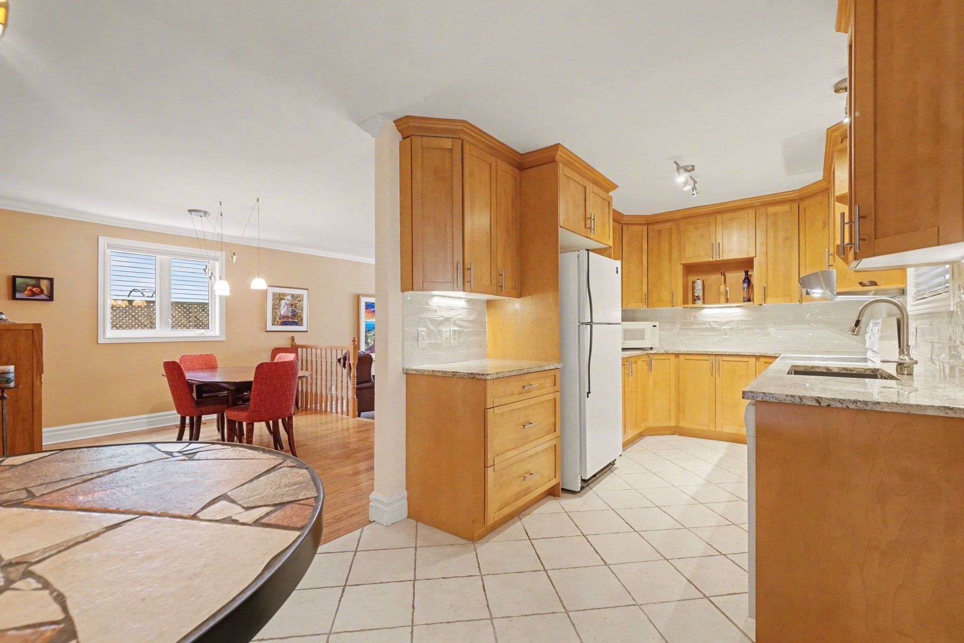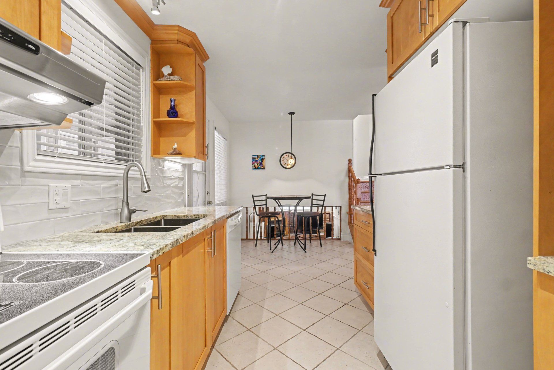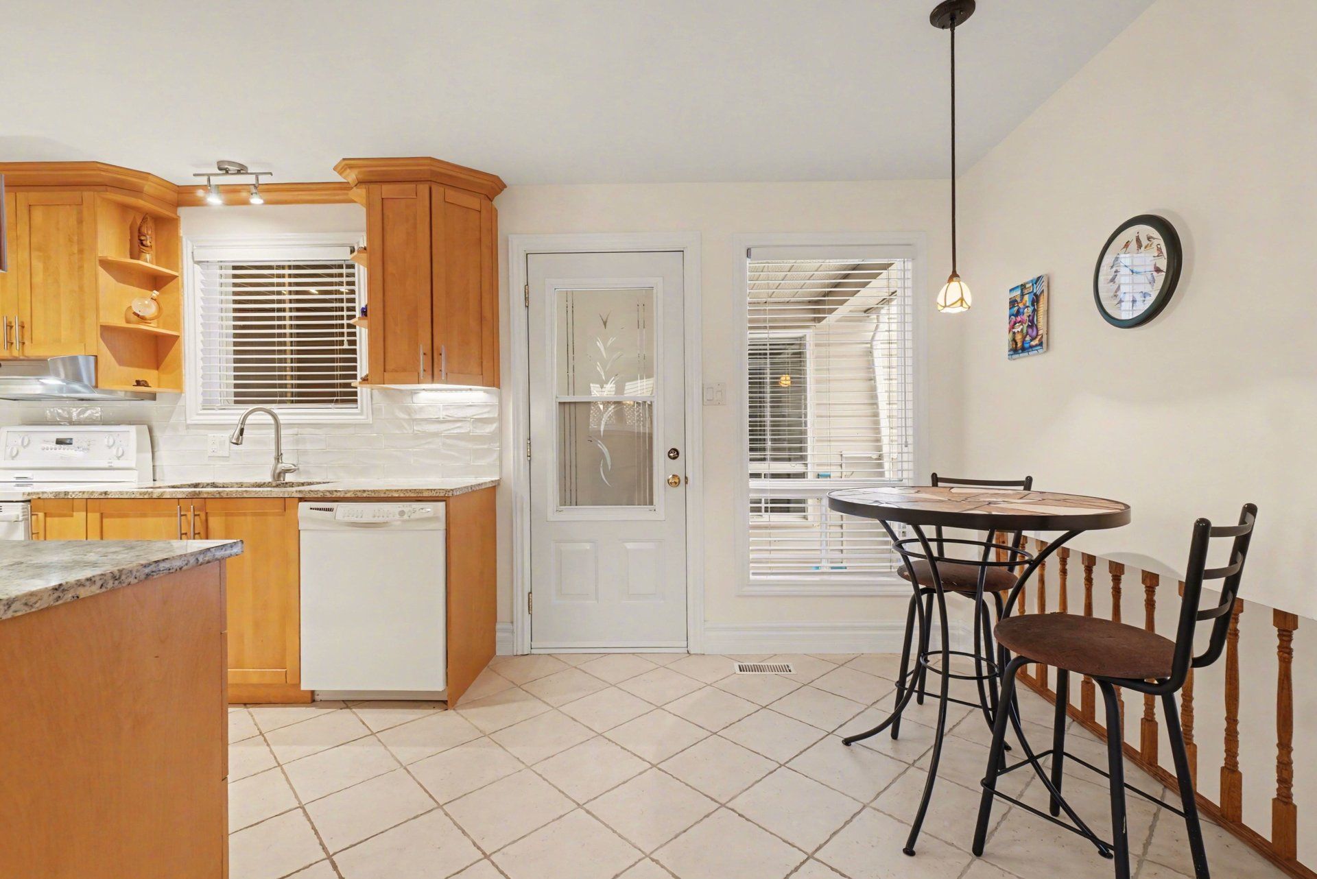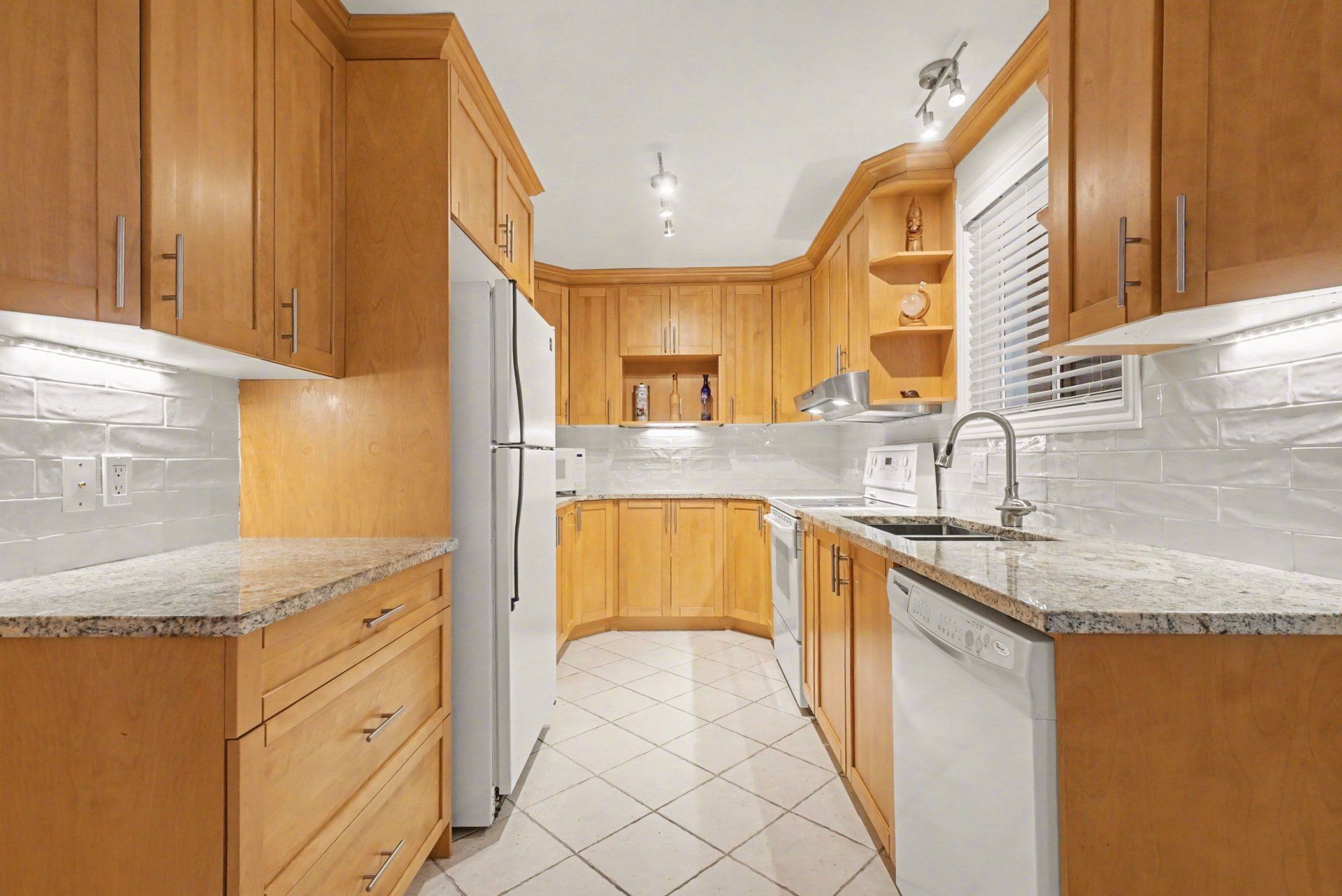 • Bright kitchen with granite countertops and plenty of renovated cabinets.