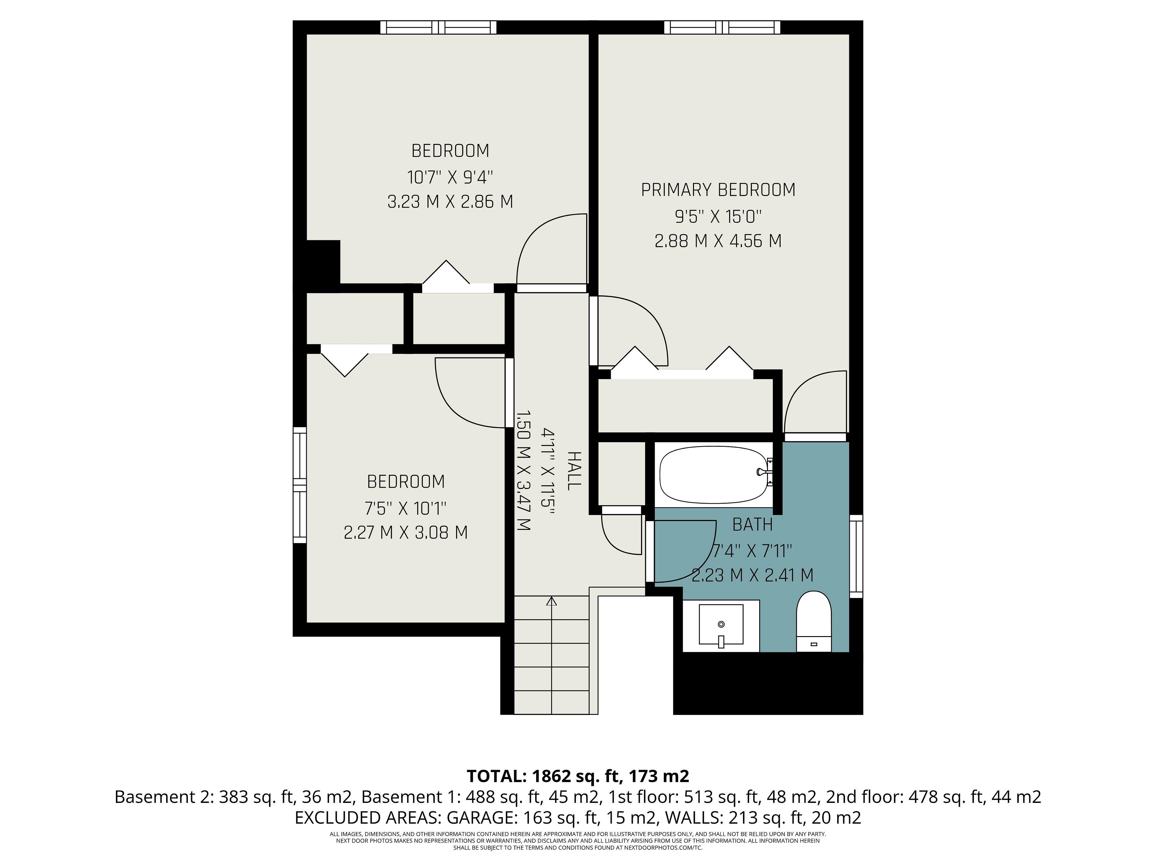 • Large primary bedroom with a cheater ensuite, plus two more bedrooms.