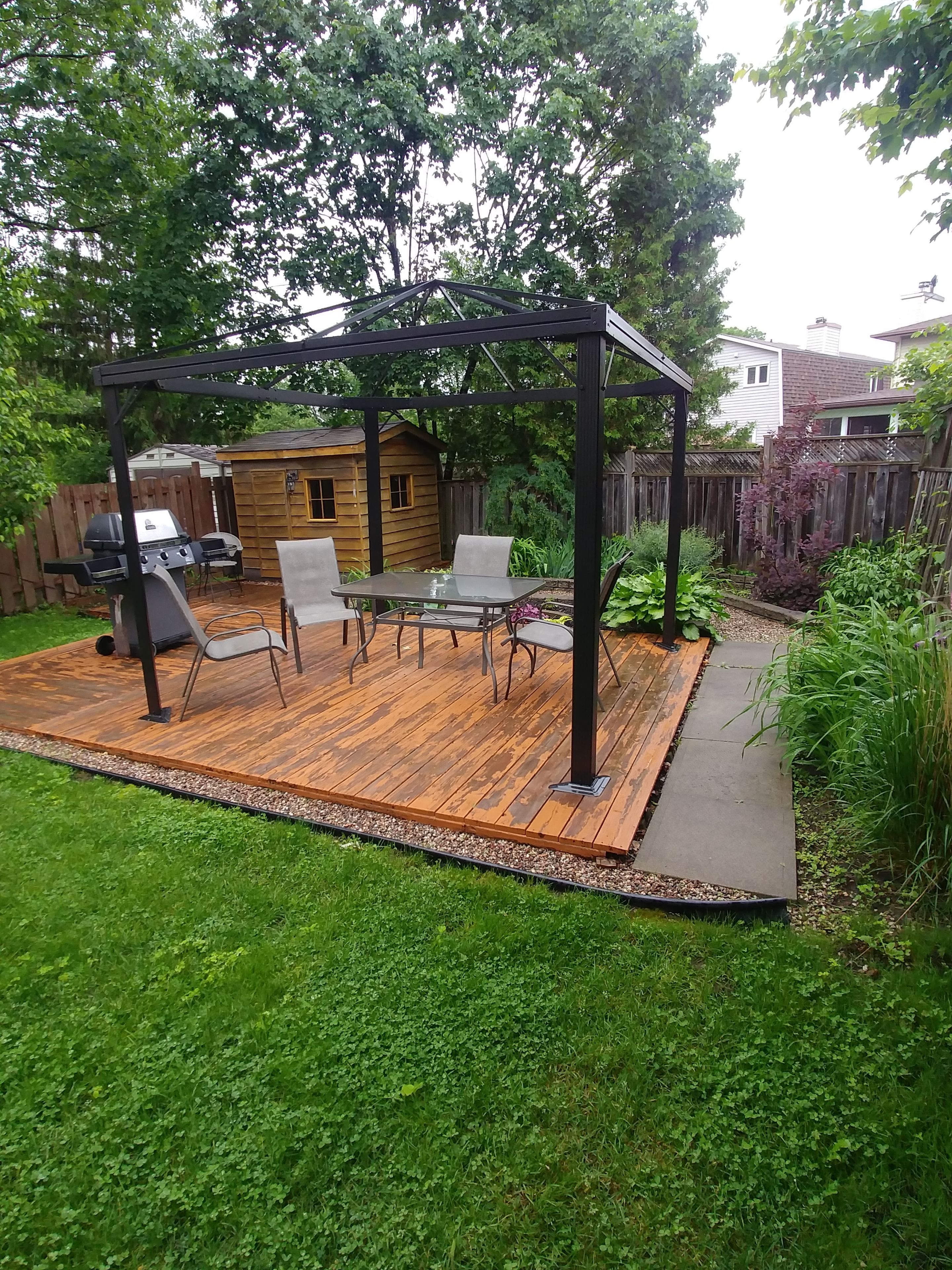 • Deep fenced backyard with a deck, gazebo, and room for outdoor activities.