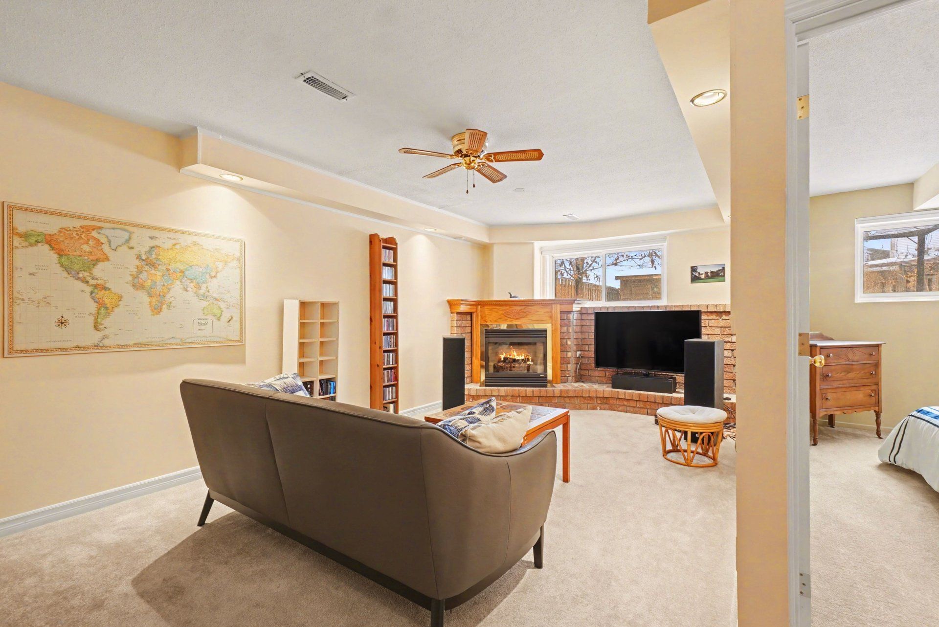 • Spacious lower level featuring a family room with a gas fireplace.