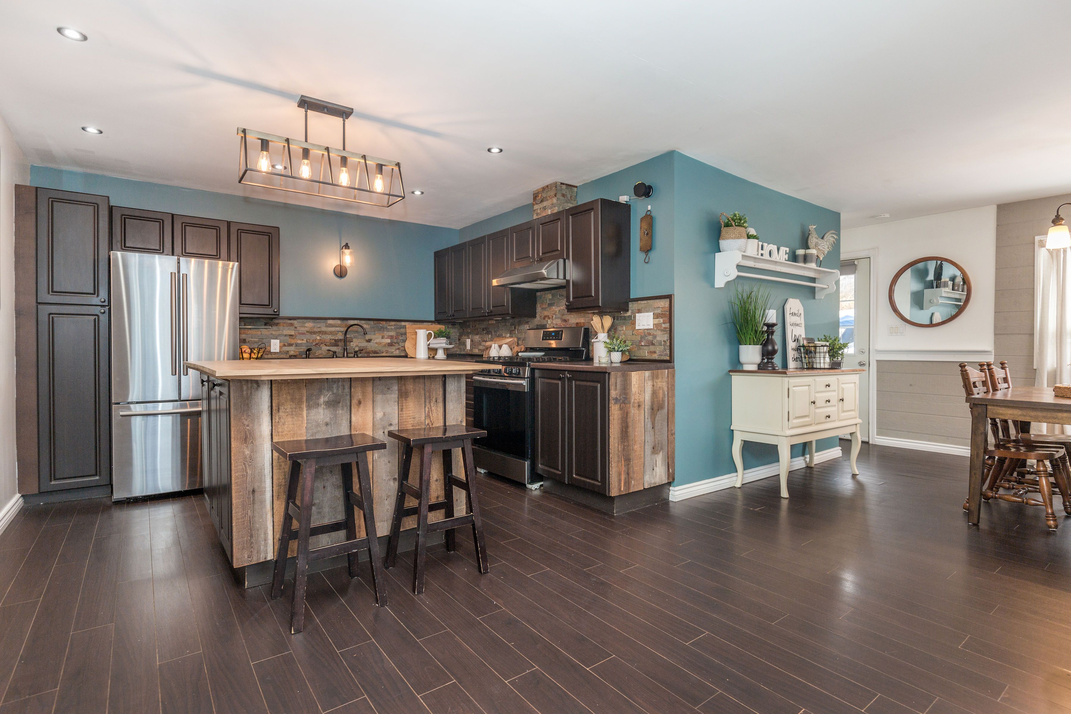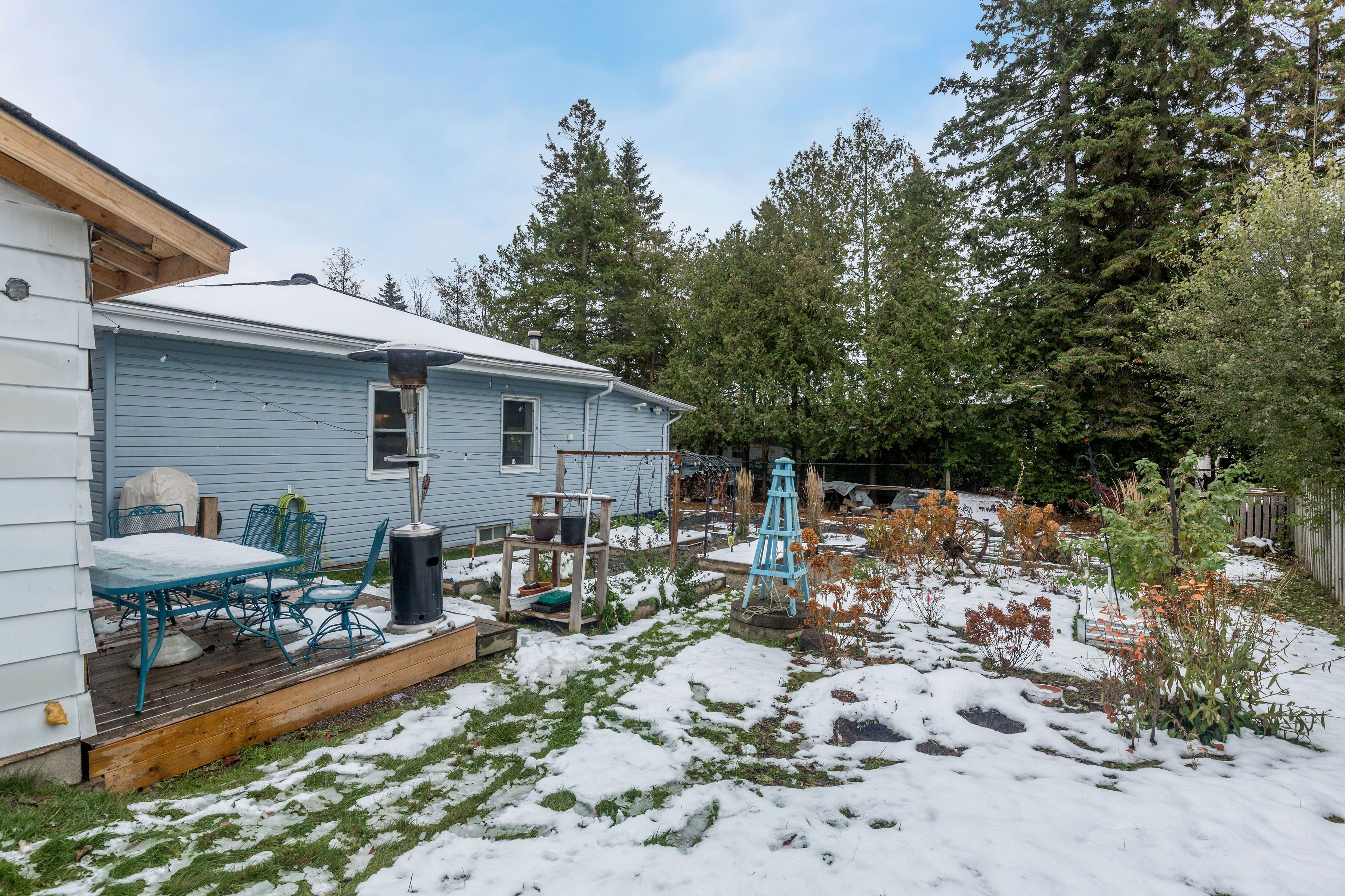Welcome to 1104 ferrier avenue in lefroy, just a few minutes walking distance to lake simcoe. Nestled in the quiet waterfront community of lefroy, is known for its cottage feel with all the convenience less than ten minutes to alcona. Enjoy your summers in the water and your winters on the ice! Ideal for downsizers, first time home buyers or young families. This is condo pricing, for a detached four season home! A welcoming covered porch, perfect for your morning coffee. Coming in to an open concept design, the kitchen is ideal for connection and gathering. An oversized island with a new countertop, stainless steel appliances, gas range, breakfast bar seating, and updated lighting. The adjoining dining area easily accommodates large family dinners and holiday celebrations. The cozy family room is truly the heart of the home, featuring a charming wood-burning fireplace and wall-to-wall windows that fill the space with natural light year-round. Two comfortable bedrooms provide flexible living options, including a spacious primary retreat with room for a king-size bed and custom closet organization. An insulated attic with pull-down ladder access for bonus storage. Beautiful perennial gardens, granite walkways, and mature landscaping create a peaceful backyard escape. Fire-pit of those cool spring nights. The yard is fenced on three sides, offering privacy while still feeling open and inviting. Need room for vehicles, toys, or hobbies? You'll love the recently repaved driveway with parking for 6 or more, perfect for boats, trailers, or guests. The converted garage workshop with recently re-insulated walls and a subpanel, making it ideal for projects, storage, or a creative workspace. A large shed with covered storage for more versatility. Owned on-demand hot water heater, newer air conditioner, repaved driveway, backyard walkway making it move-in-ready.