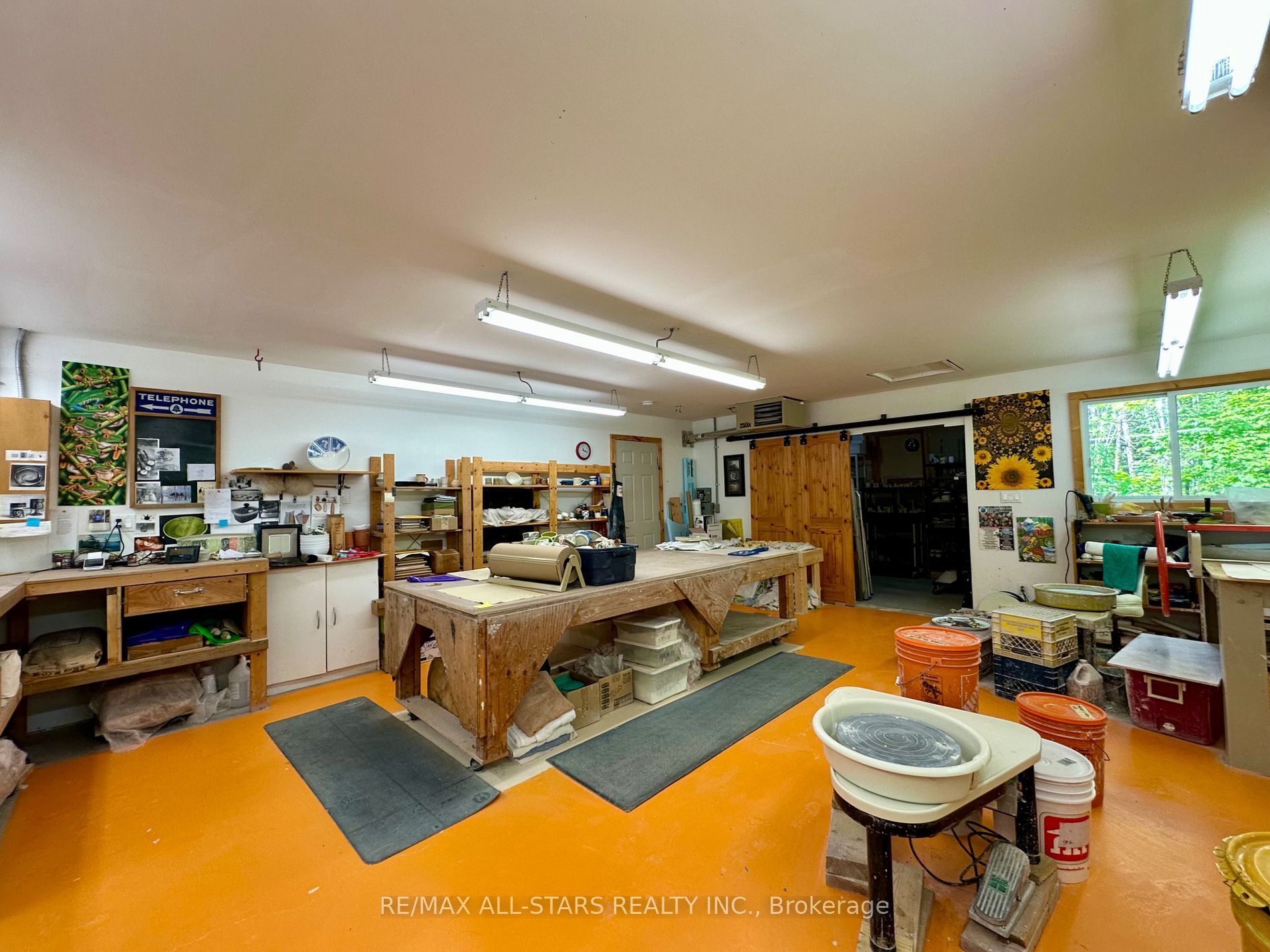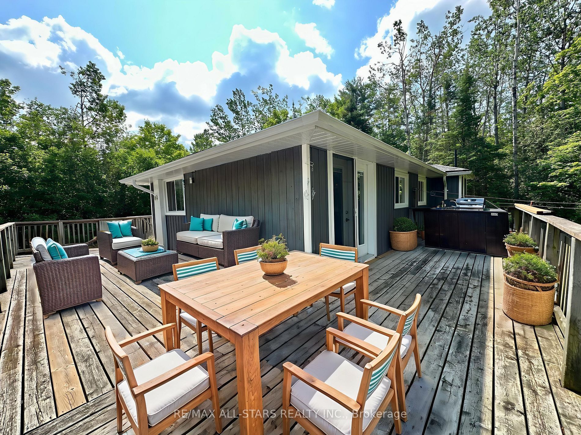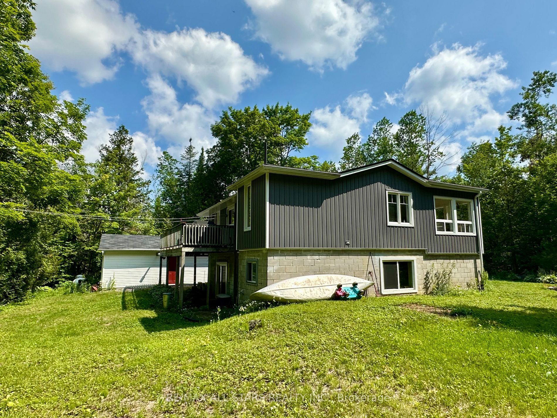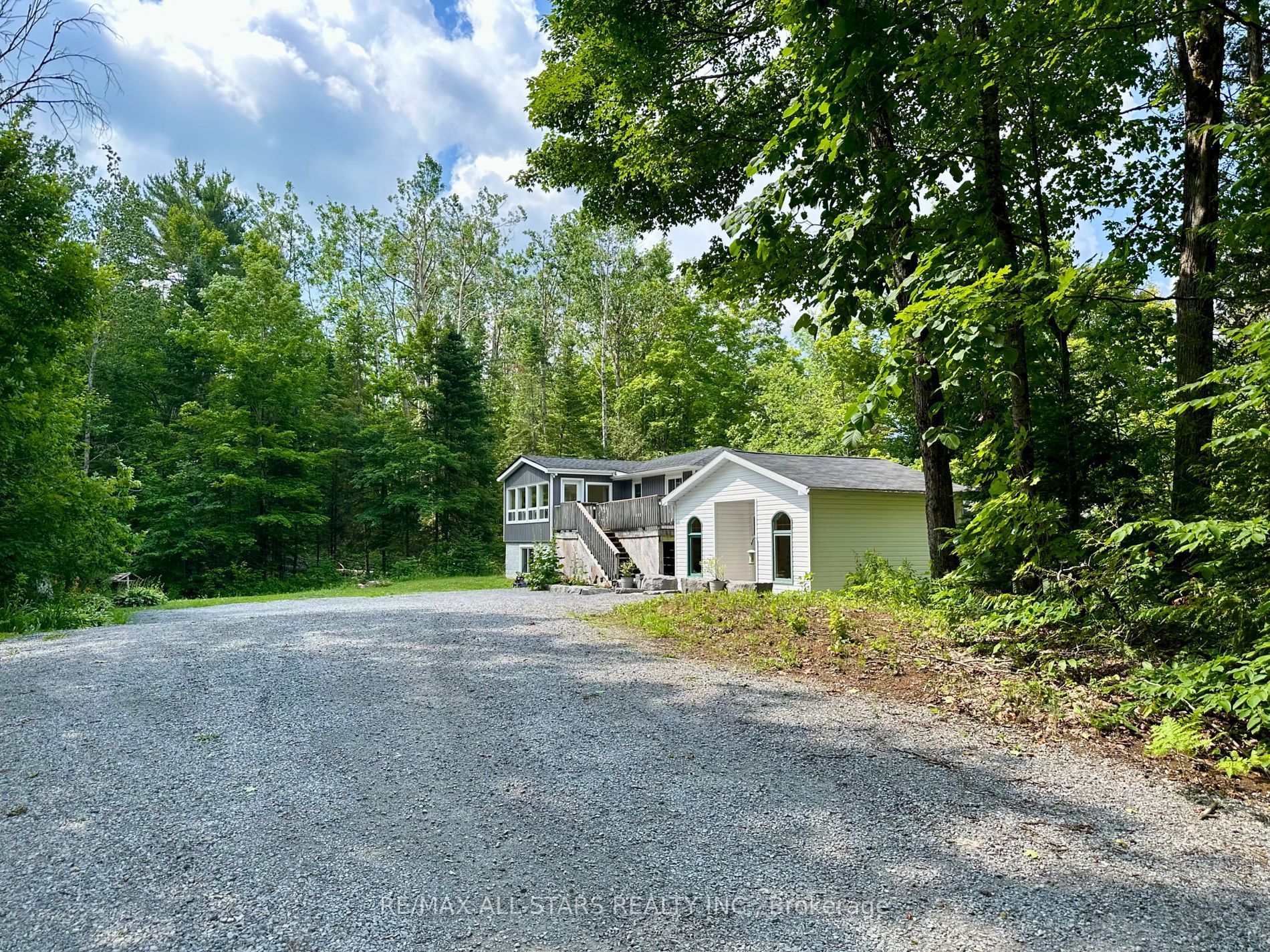 Nestled on a private, forested 1-acre lot, this beautifully renovated 3-bedroom, 1-bath home offers peaceful living with modern comforts. The open-concept main floor features a bright kitchen, dining, and living space that flows into a sunroom surrounded by serene forest views. Walk out directly from the kitchen and sunroom to a spacious wrap-around deck perfect for entertaining or enjoying quiet mornings with nature. The fully finished lower level offers a full walkout, a cozy rec room with a propane fireplace, and plenty of space for relaxation or hosting guests. Recent updates include a newer roof, furnace (2015), windows, siding, kitchen cabinetry, insulation, soffits, eavestroughs, and more all done with care and quality in mind. A major highlight is the detached 44' x 19' heated shop/studio fully finished with water and proper drainage via weeping tile, making it ideal for a home business, creative studio, or workshop. Just minutes from crystal lake, this move-in ready home blends privacy, comfort, and functionality in a sought-after location.