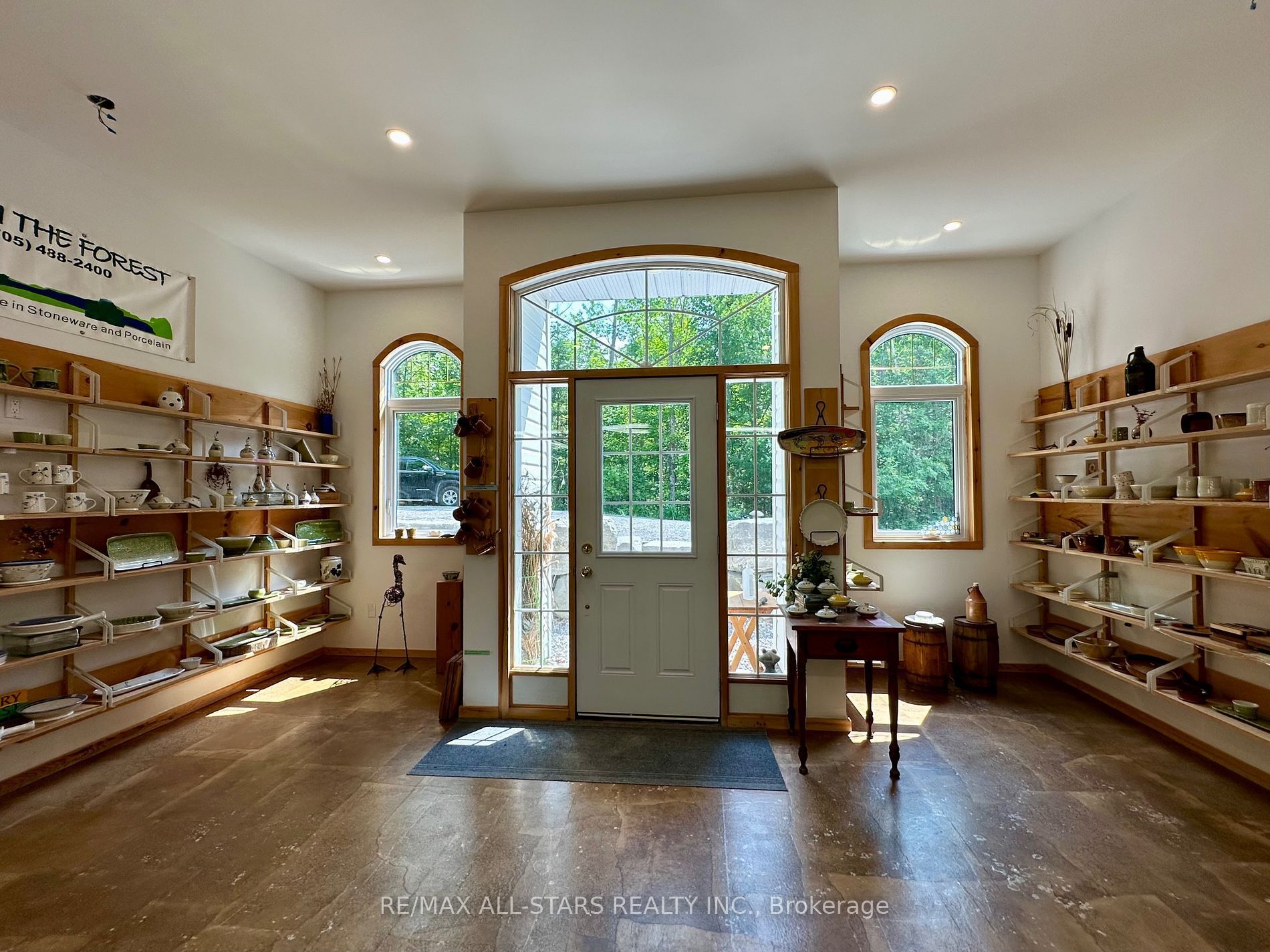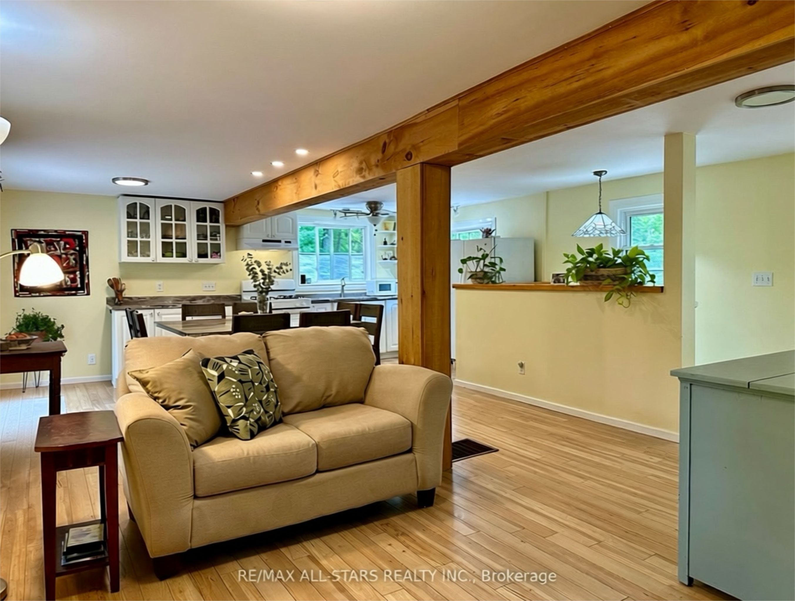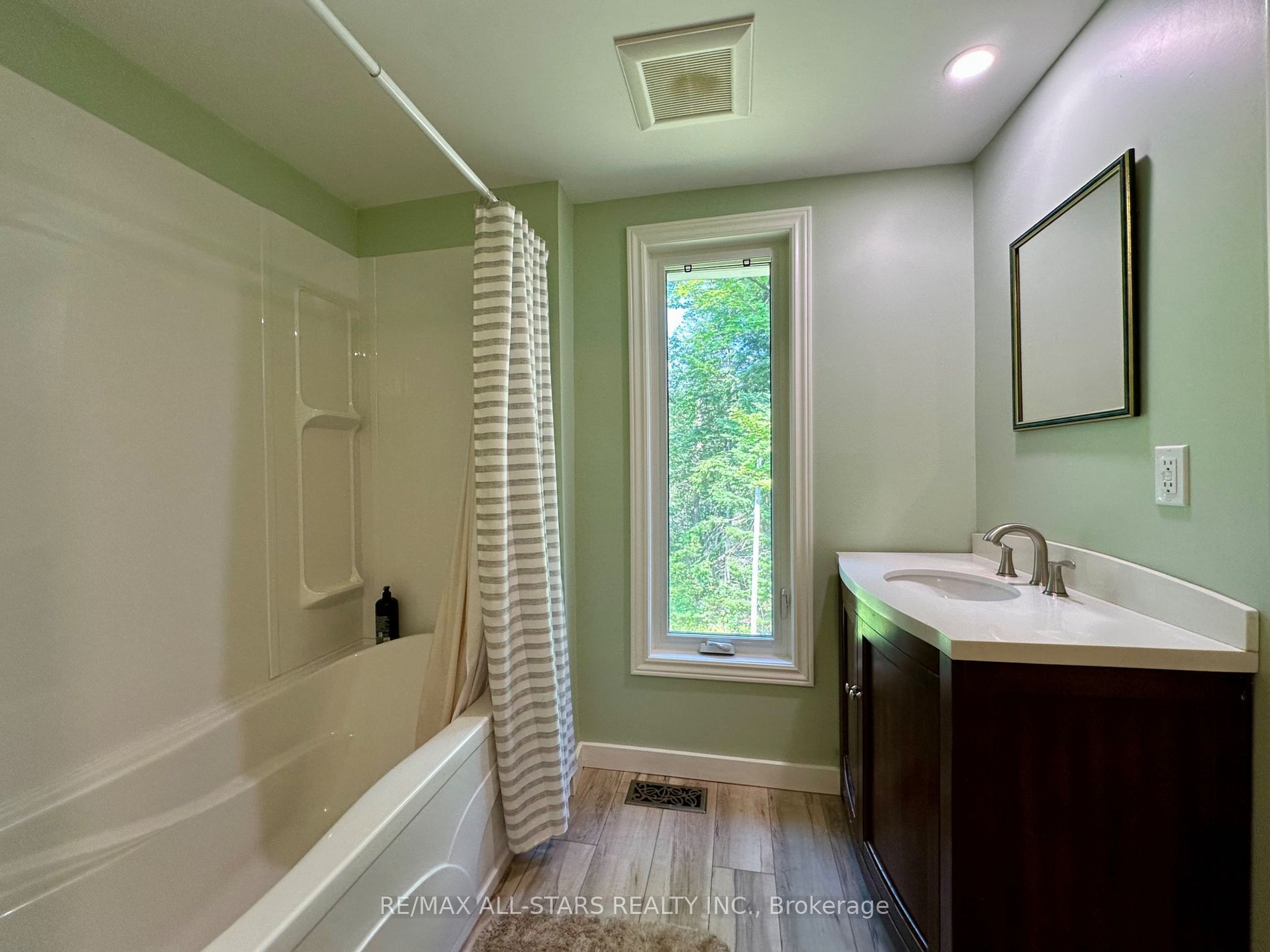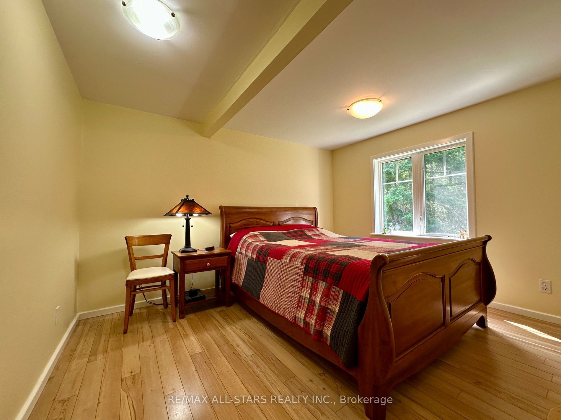 Nestled on a private, forested 1-acre lot, this beautifully renovated 3-bedroom, 1-bath home offers peaceful living with modern comforts. The open-concept main floor features a bright kitchen, dining, and living space that flows into a sunroom surrounded by serene forest views. Walk out directly from the kitchen and sunroom to a spacious wrap-around deck perfect for entertaining or enjoying quiet mornings with nature. The fully finished lower level offers a full walkout, a cozy rec room with a propane fireplace, and plenty of space for relaxation or hosting guests. Recent updates include a newer roof, furnace (2015), windows, siding, kitchen cabinetry, insulation, soffits, eavestroughs, and more all done with care and quality in mind. A major highlight is the detached 44' x 19' heated shop/studio fully finished with water and proper drainage via weeping tile, making it ideal for a home business, creative studio, or workshop. Just minutes from crystal lake, this move-in ready home blends privacy, comfort, and functionality in a sought-after location.