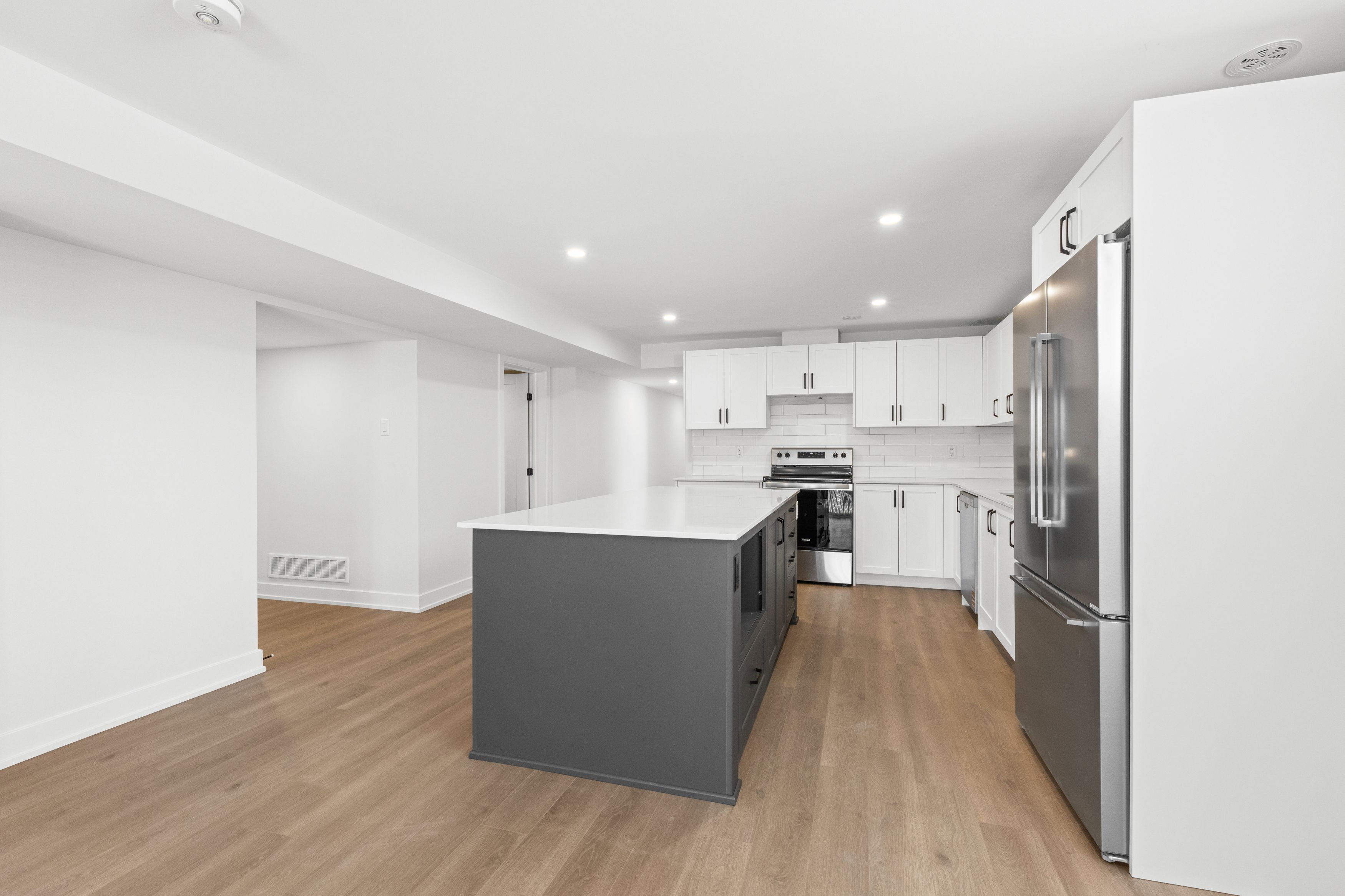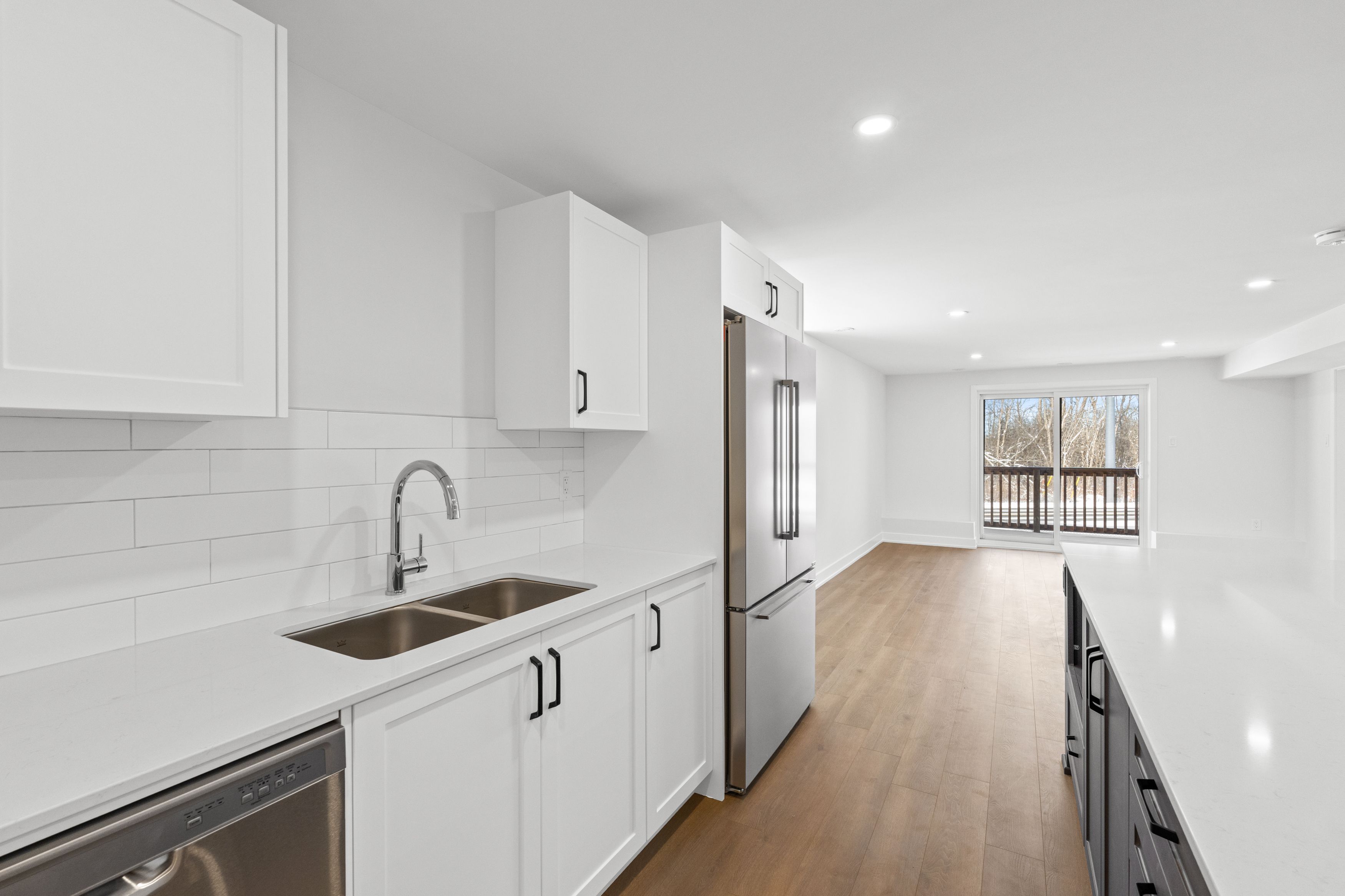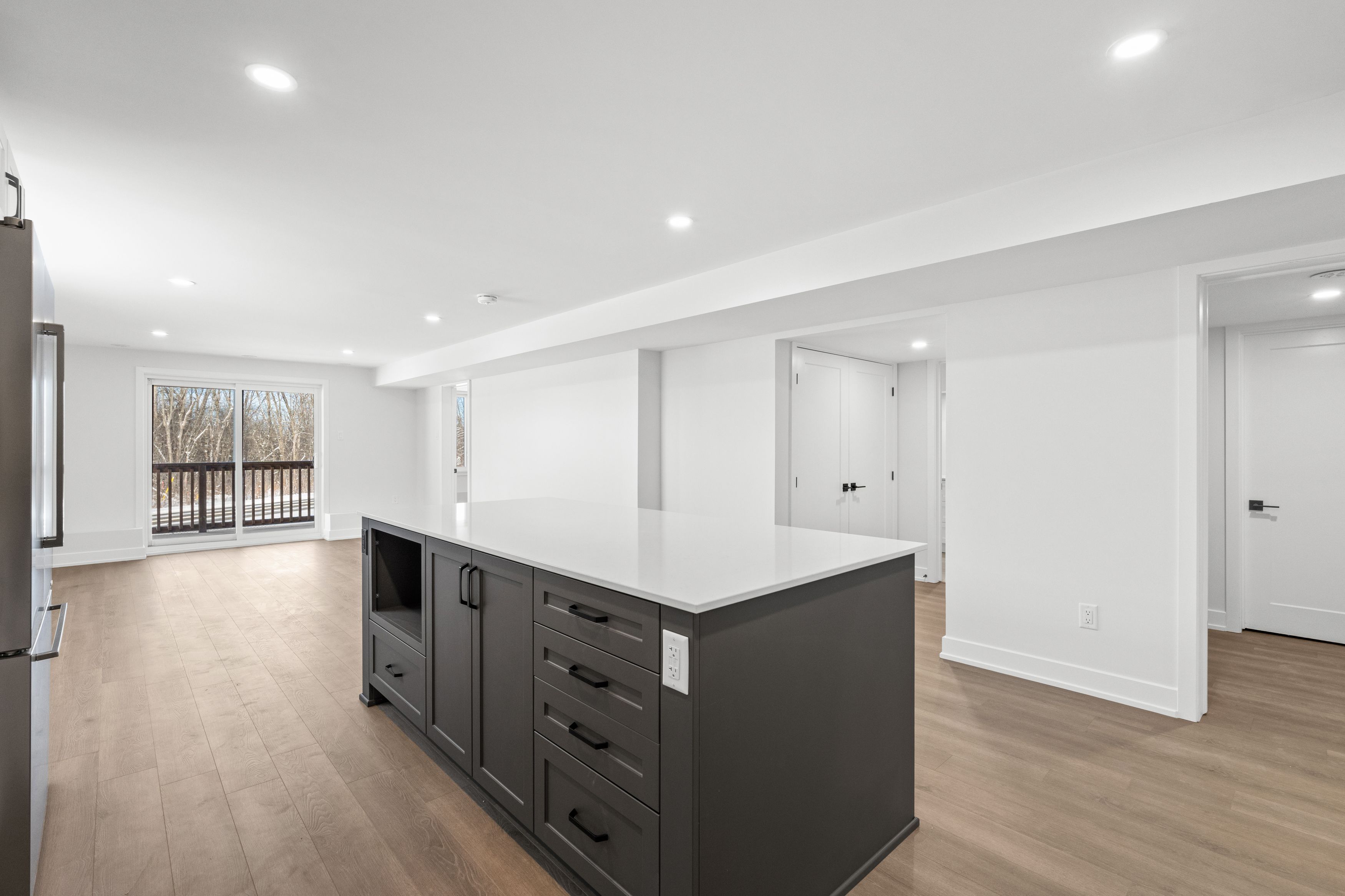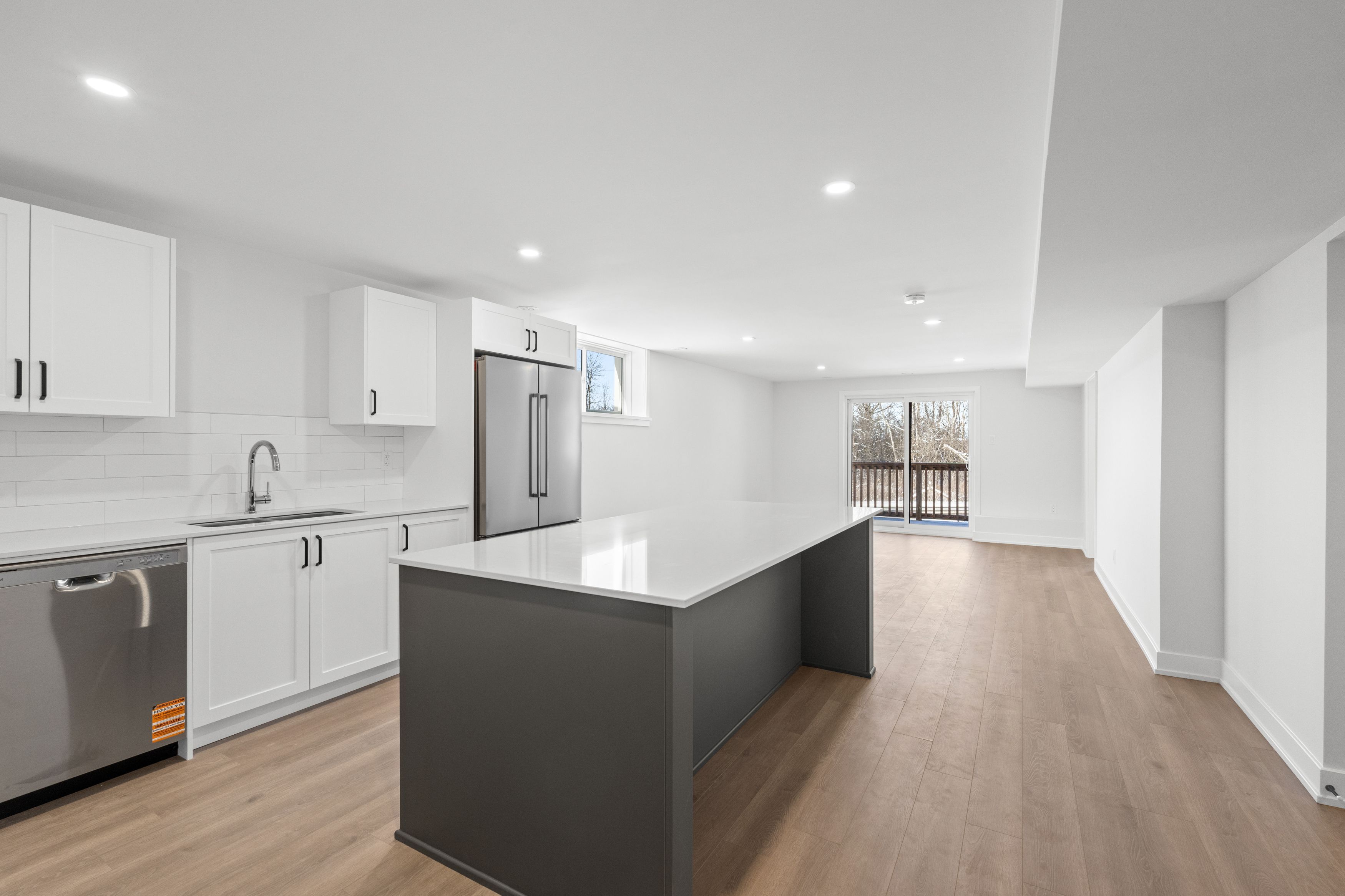 Experience comfortable, modern living in brockville's desirable stirling meadows community! Available february 1, this newly built walkout lower-level apartment offers convenience and style with a private entrance and dedicated parking. Large windows provide an uncommon amount of natural light for lower-level living, enhancing the open-concept layout designed for both everyday comfort and entertaining. The kitchen features sleek quartz countertops, stainless steel appliances, and ample cabinetry, while the living and dining space extends to a private outdoor deck - perfect for quiet mornings or relaxed evenings. The spacious primary bedroom includes a walk-in closet, and the full bathroom boasts modern, clean-lined finishes. In-unit laundry and durable luxury vinyl flooring throughout add to the ease and low-maintenance appeal of the home. Ideally suited for professionals, downsizers, or anyone seeking a fresh, thoughtfully designed space, this unit offers peaceful living just minutes from highway 401, shops, restaurants, and amenities.