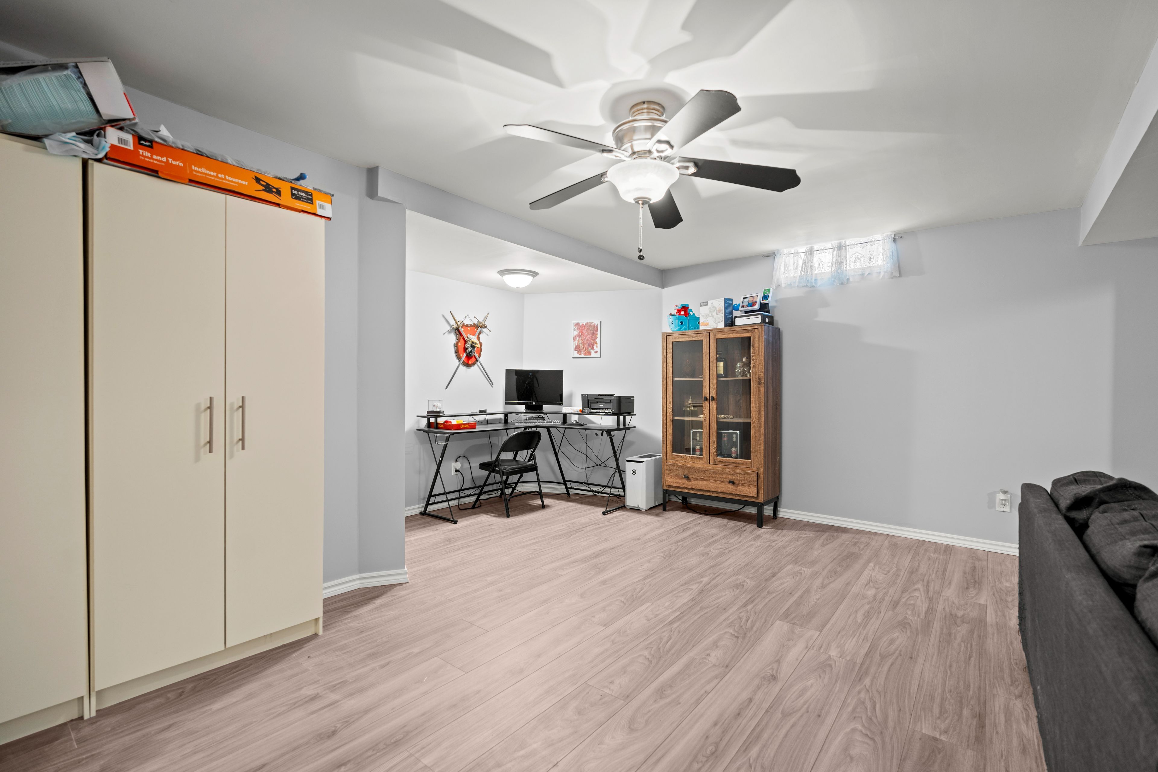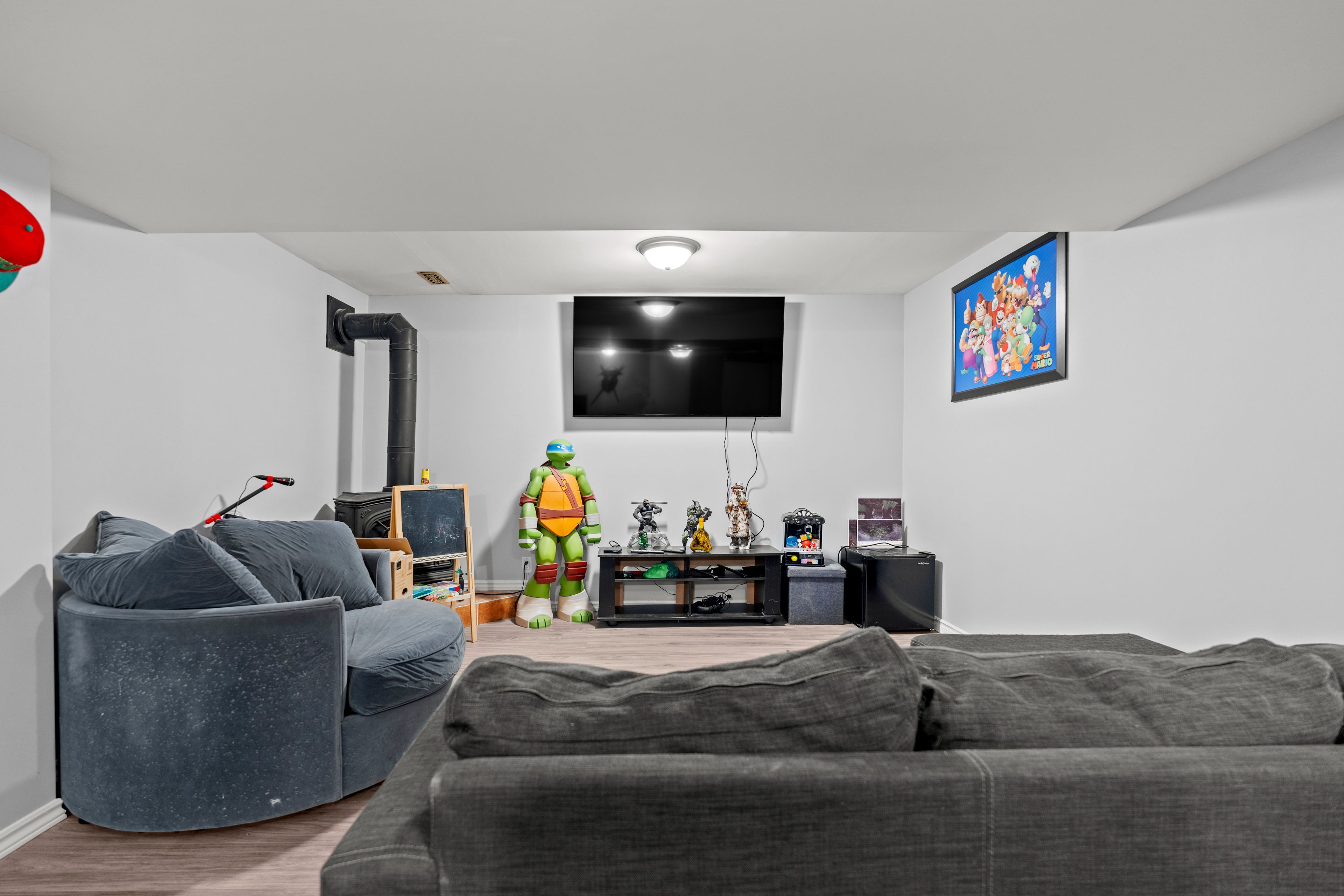 • Finished basement with a recreation room, an extra bedroom, and a bathroom.