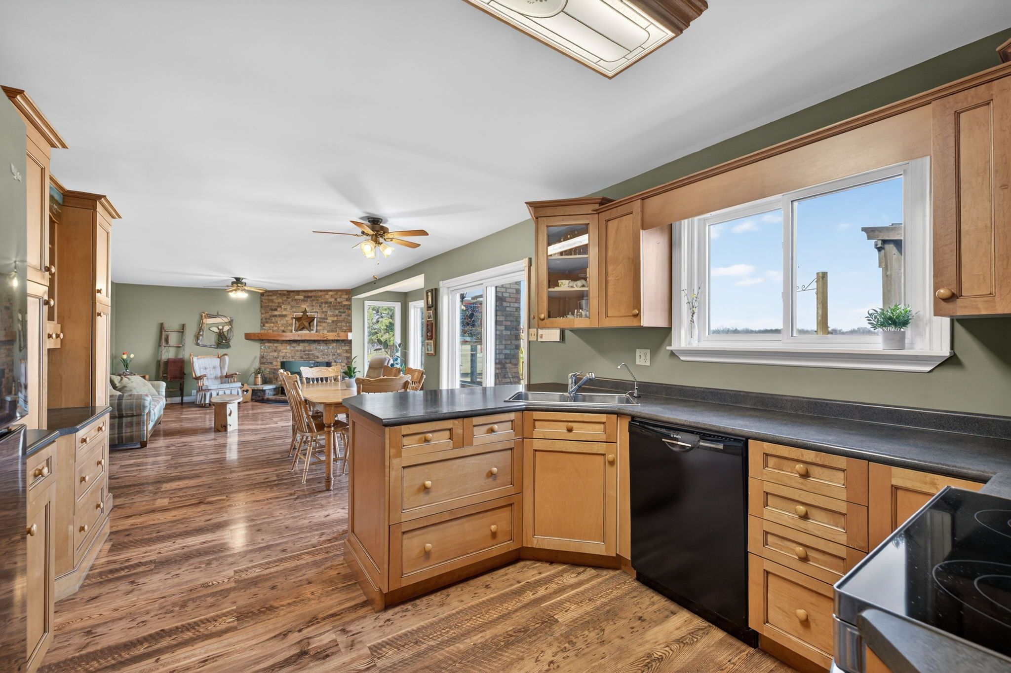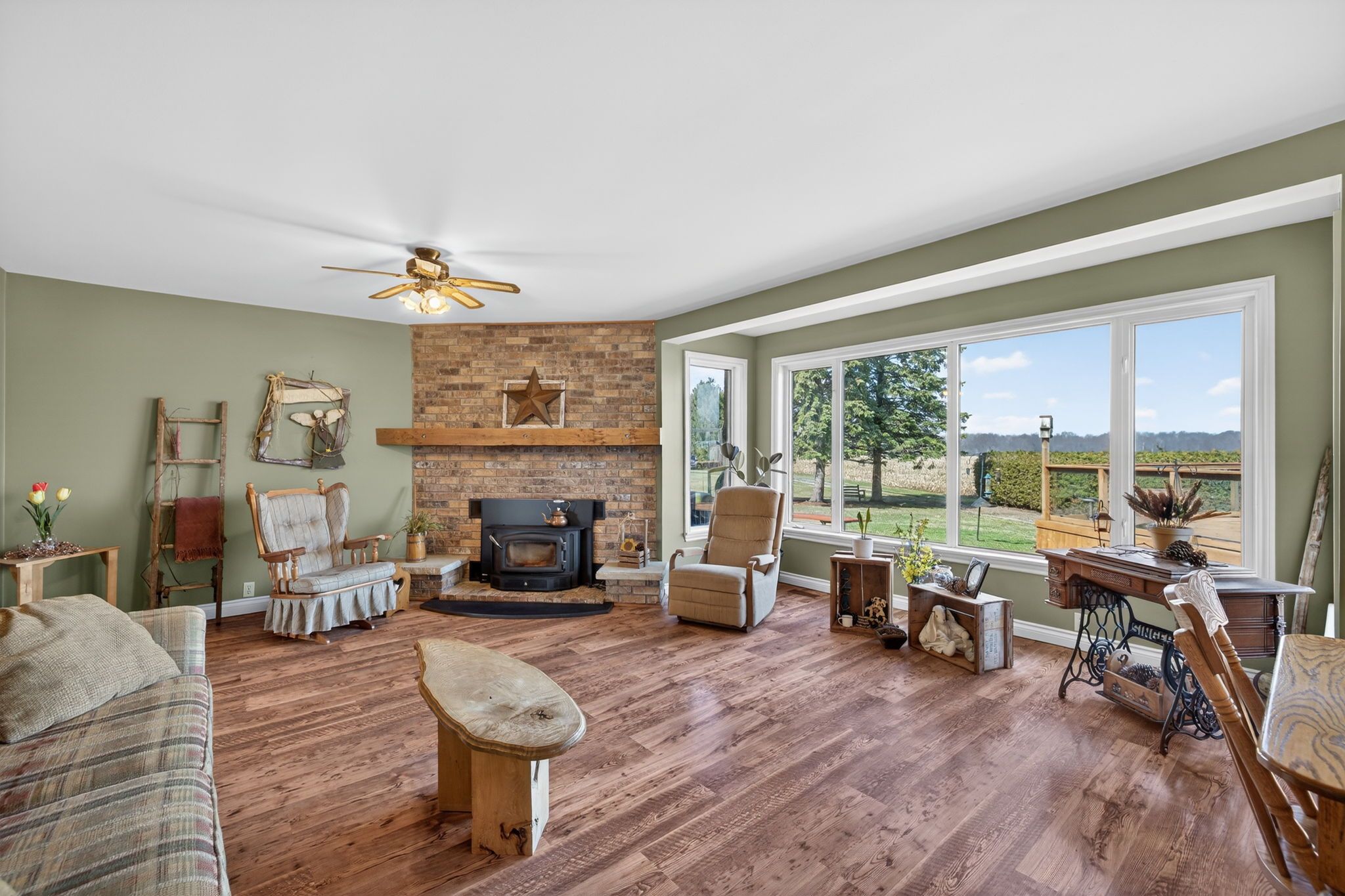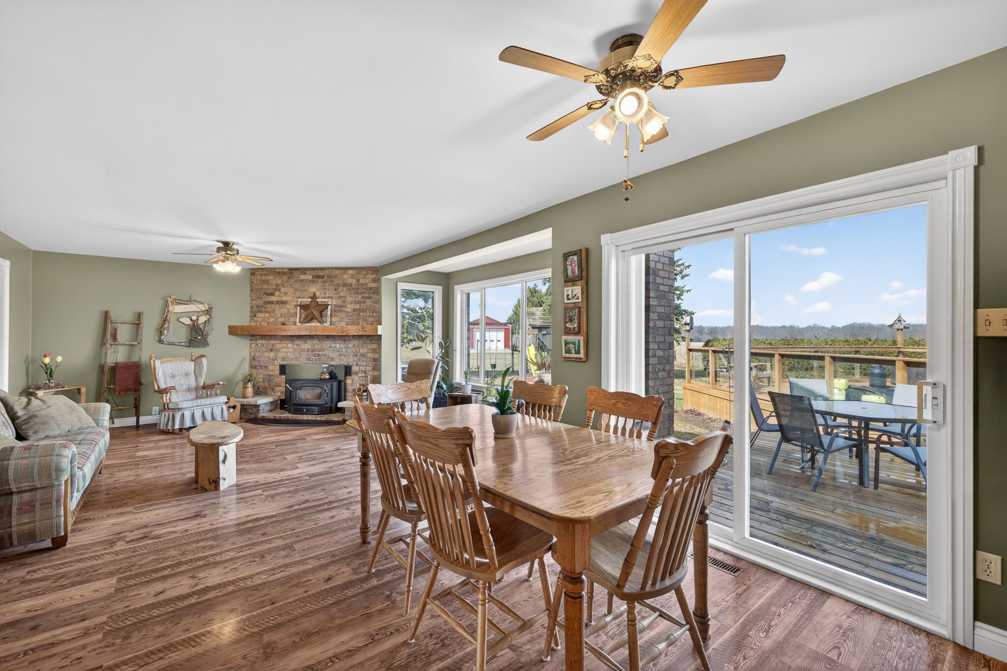 • Inviting family room with Elmira wood stove for cozy gatherings and relaxation.