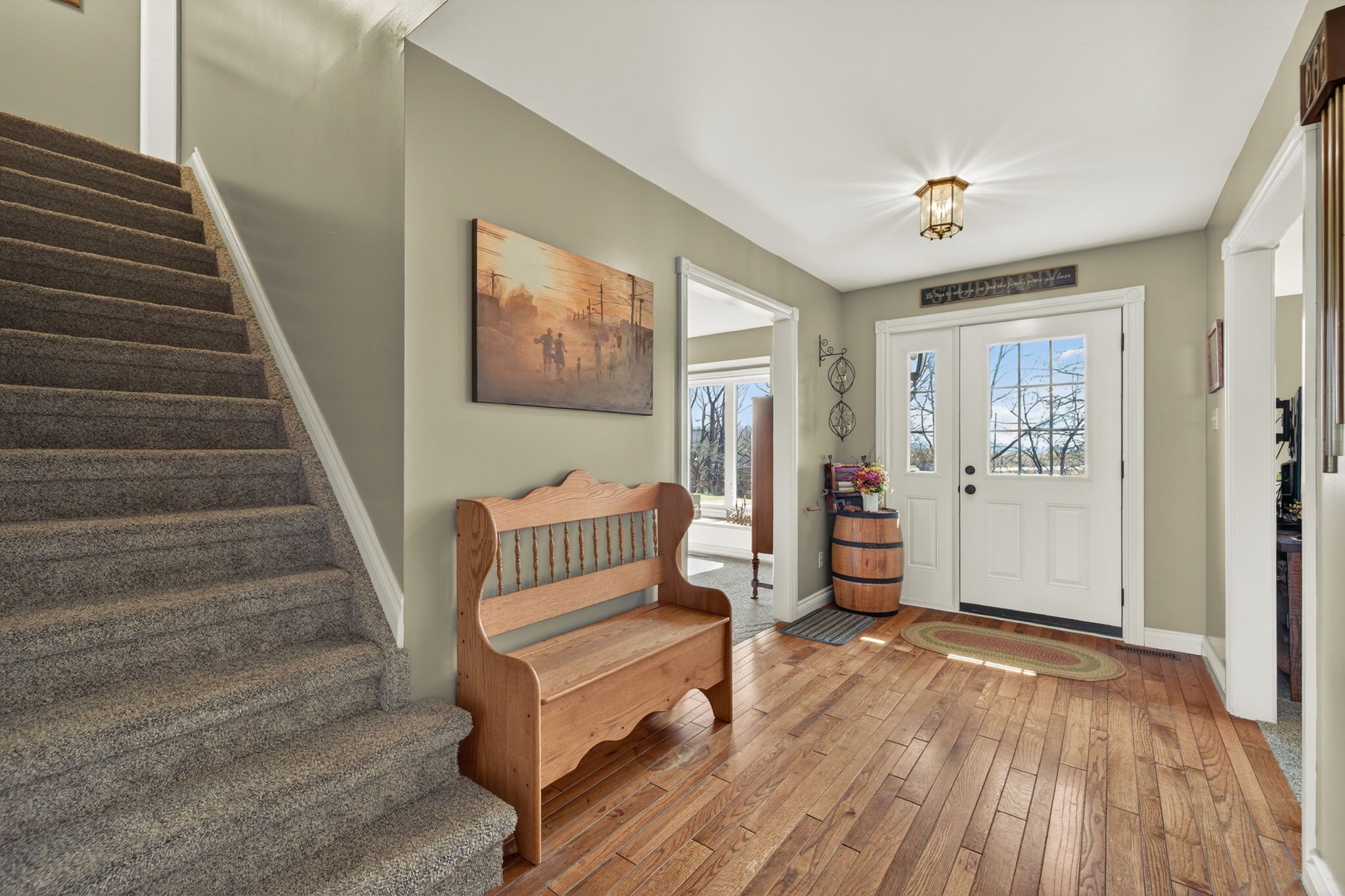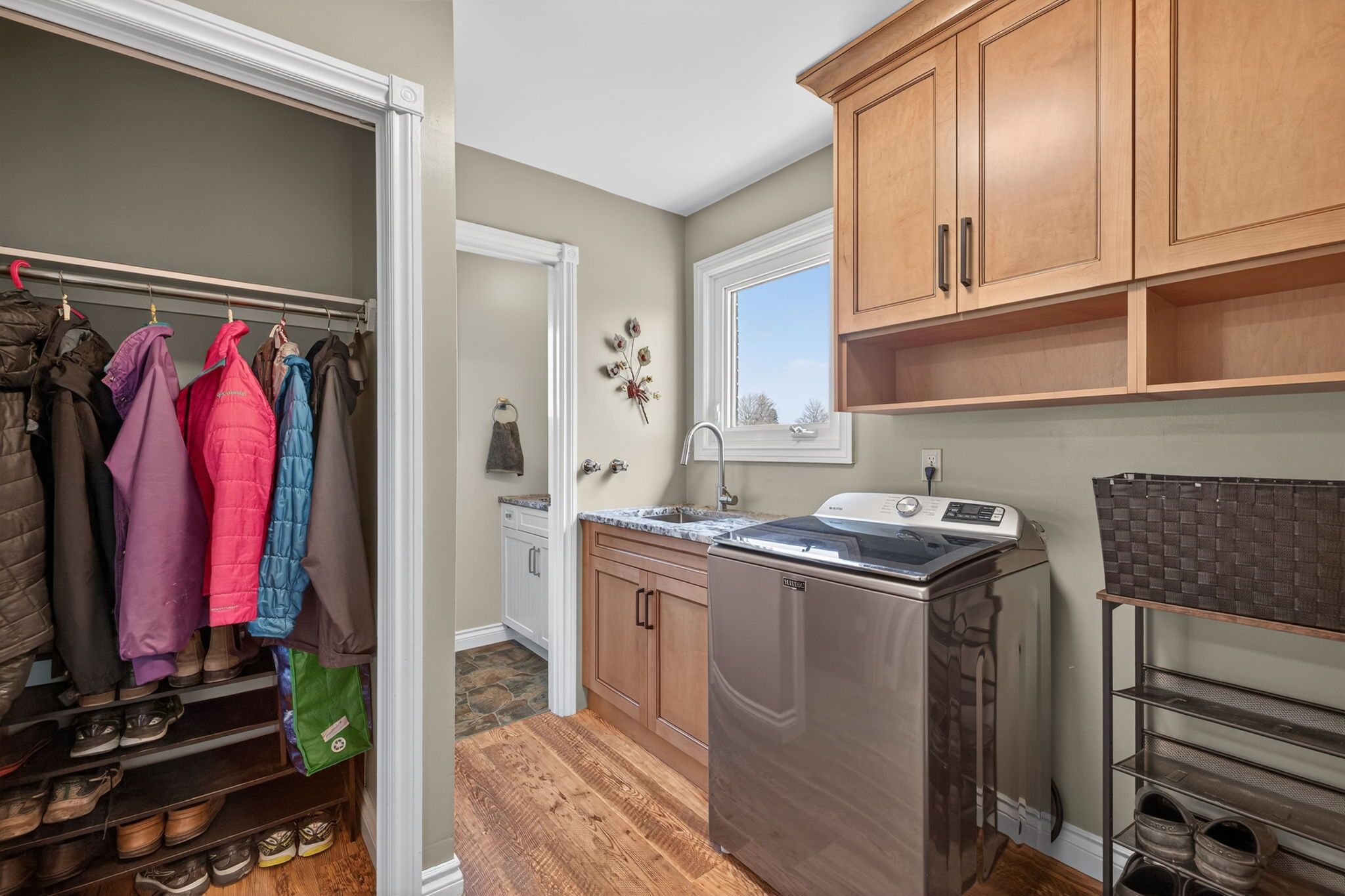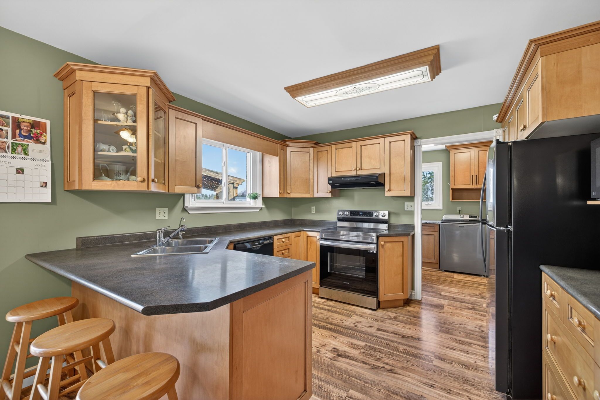 • Inviting family room with Elmira wood stove for cozy gatherings and relaxation.
