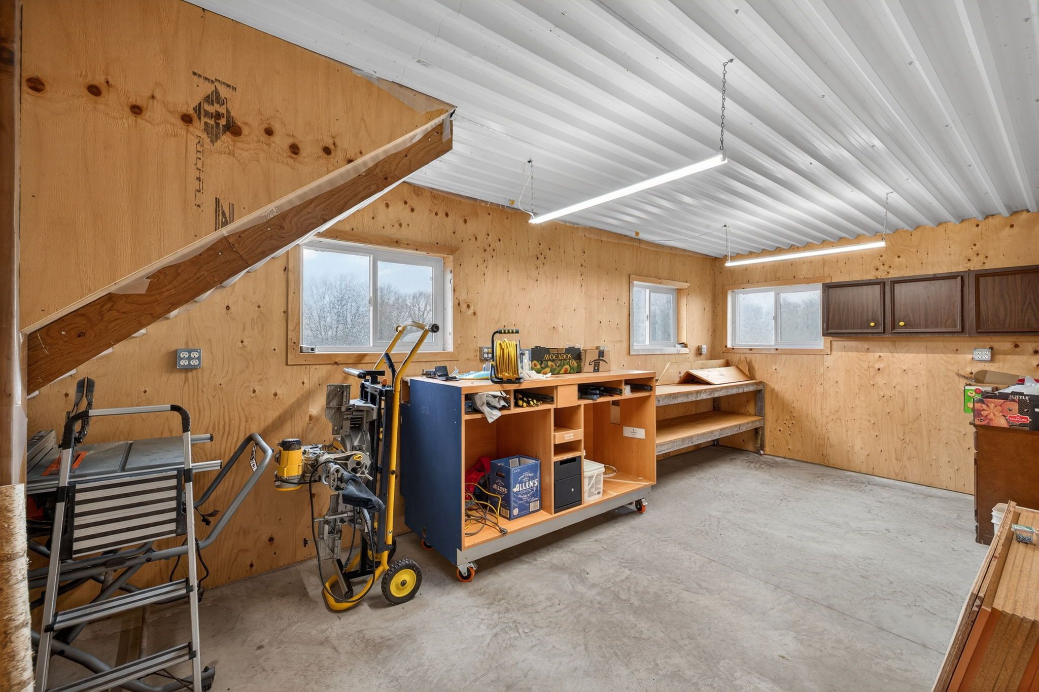 • Large drive shed with 12' doors, hydro, and workshop for hobbyists.