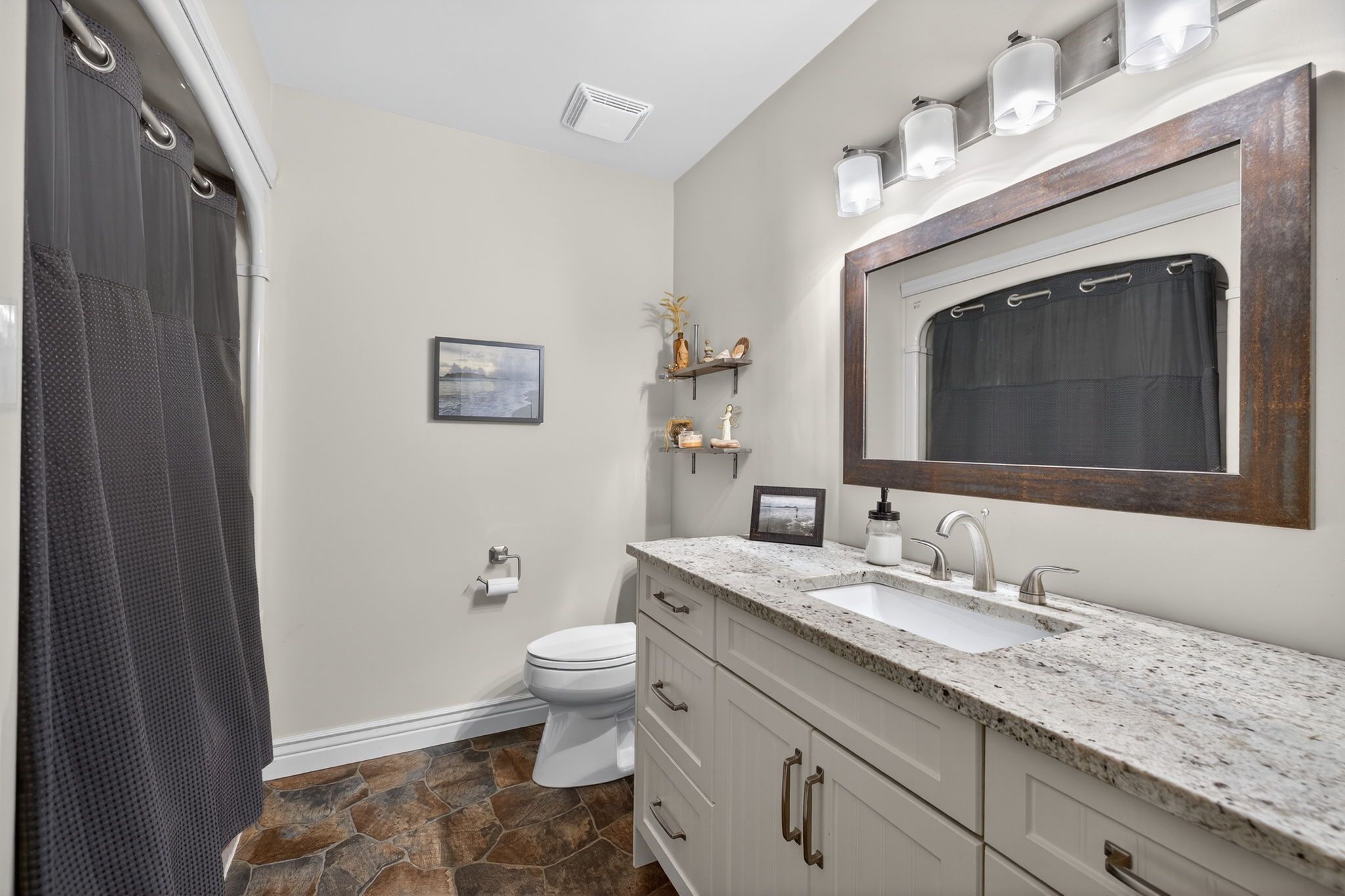 • Updated kitchen flows into dining and living areas, perfect for entertaining.