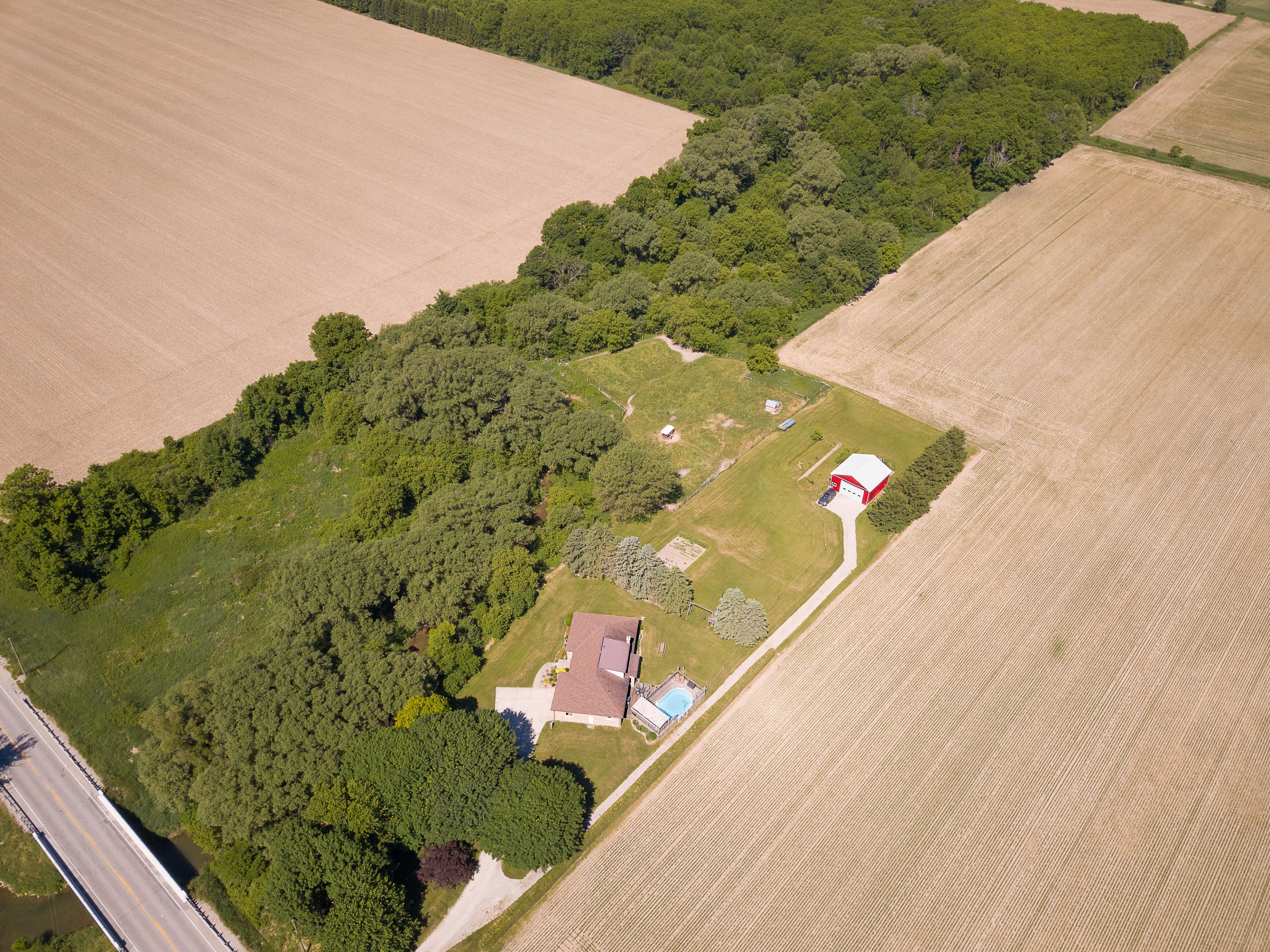 Discover the perfect blend of country charm, space, and modern comfort in this beautifully maintained approx. 2,400 sq. Ft. Brick 1. 5-storey home set on 5. 7 picturesque acres. Built in 1979 and thoughtfully updated throughout, this property offers the privacy, natural beauty & functionality today's buyers are searching for. A large welcoming foyer opens to a spacious main floor designed for comfortable everyday living easy entertaining. The inviting family room is a standout, featuring a elmira wood stove with brick mantle and barn beam accent, creating a warm and cozy gathering space. The kitchen offers excellent workspace and flows seamlessly into the dining & living areas. The main level includes three generous bedrooms, highlighted by a private primary suite with 2 closets and a beautifully updated 3-piece ensuite. A recently renovated laundry room & stylish powder room with granite countertops add convenience & modern appeal. Upstairs you'll find a spacious 4th bedroom retreat complete with a walk-in closet, storage room with attic access, and a rough-in for a future 4-piece bathroom. The lower level includes a finished family room ideal for relaxing or entertaining, plus a large cold room. Outside, the property truly shines. Enjoy 5. 7 scenic acres with a creek, mature bush and fenced pasture previously used for cattle and possibly suitable for horses. A major highlight is the impressive 30' x 30' drive shed (approx. 4 yrs old) with 12' doors, hydro, rv outlet, and 220v welder plug, plus an enclosed workshop with loft. Additional features include an oversized attached 2-car garage, fibre internet, northstar windows, 50-year gaf timberline shingles, lennox heat pump with electric furnace backup, reverse osmosis system, central vac, drilled well plus secondary well, and an above-ground pool with covered deck. A rare opportunity to own a beautifully cared-for country property offering space, privacy, and outstanding amenities just minutes from city conveniences.