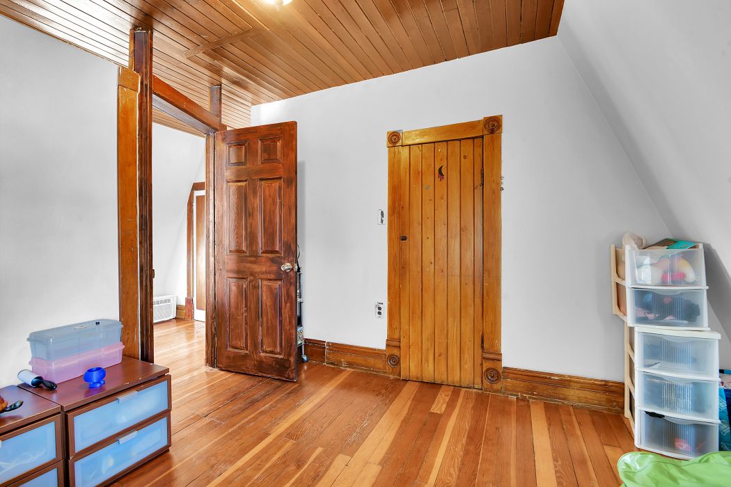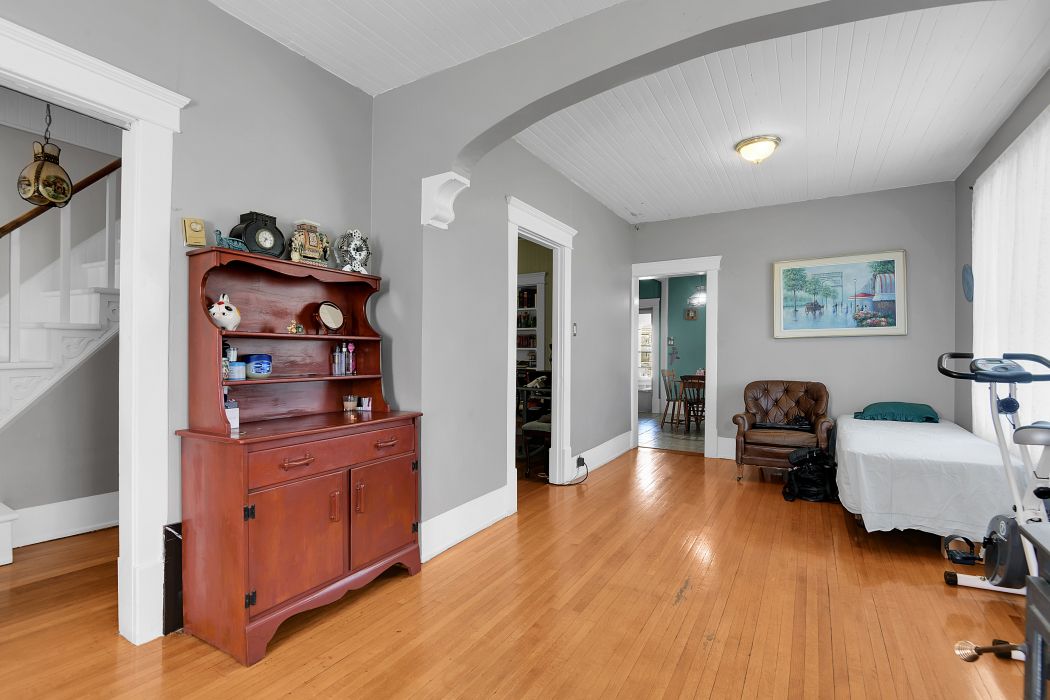 • Four spacious rooms with closets, a rare feature.