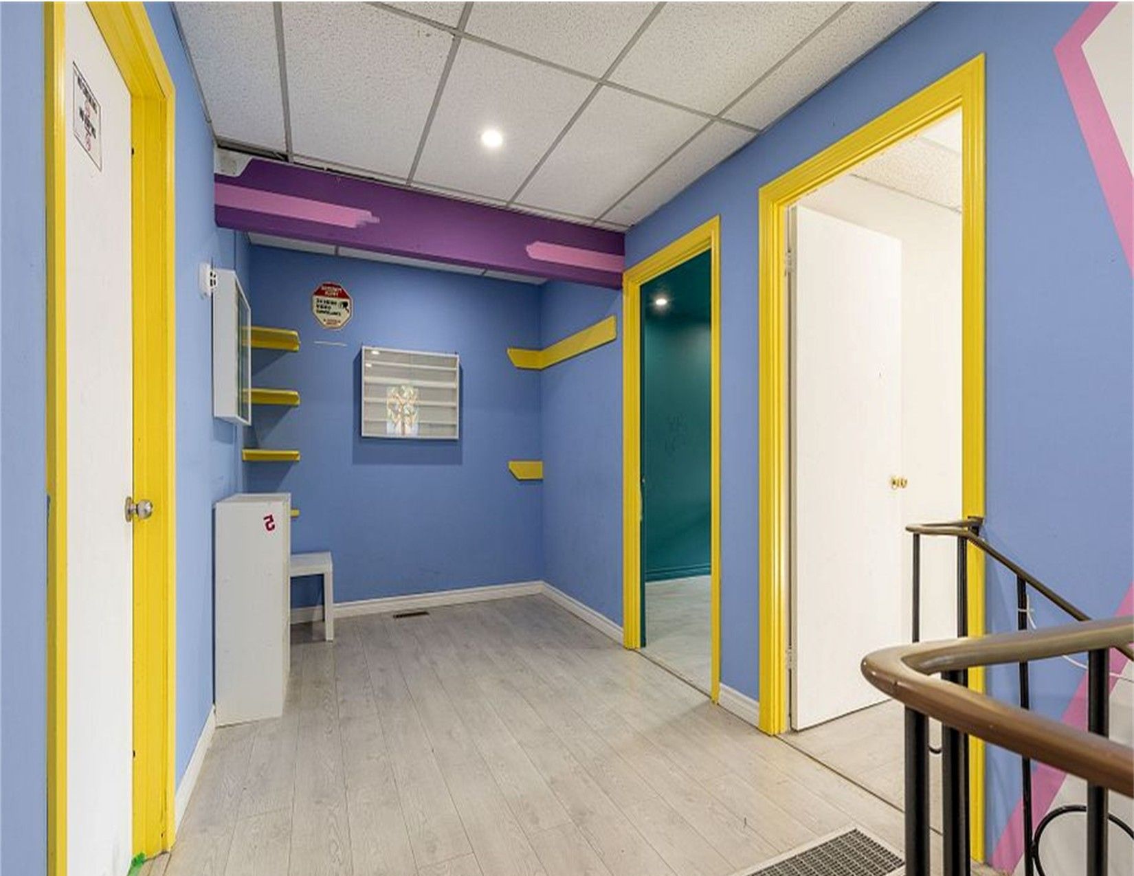 • Second floor offers multiple office rooms, a washroom, and sauna.