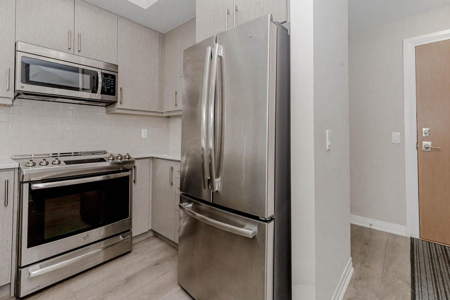 • Modern kitchen featuring quartz countertops and stainless steel appliances.