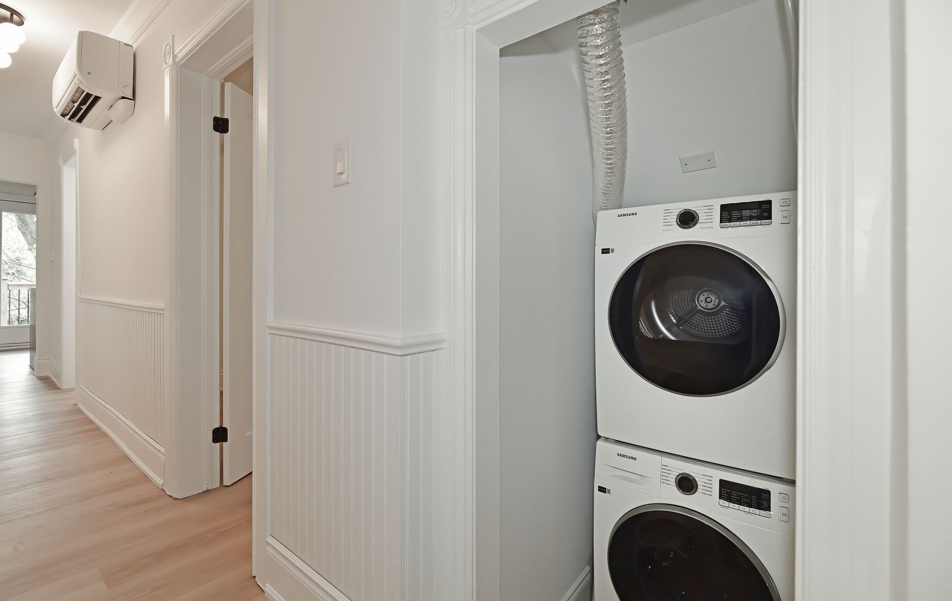 Be the first to call this fully renovated, three-bedroom suite home. Spanning the entire second floor, this bright and spacious unit features three generously sized bedrooms, each with ample closet space and a window and ensuite laundry. The tastefully designed kitchen offers stainless steel appliances and has a walk out to a private, south-facing balcony-perfect for morning coffee or evening relaxation. A stylishly designed 3 pc bathroom completes the interior. Parking for one car is included in the lease and is off the laneway. Located in the heart of leslieville, one of toronto's most sought-after neighbourhoods, with the ttc streetcar just steps from your door. Tenant pays cost of hydro, and cable/internet.