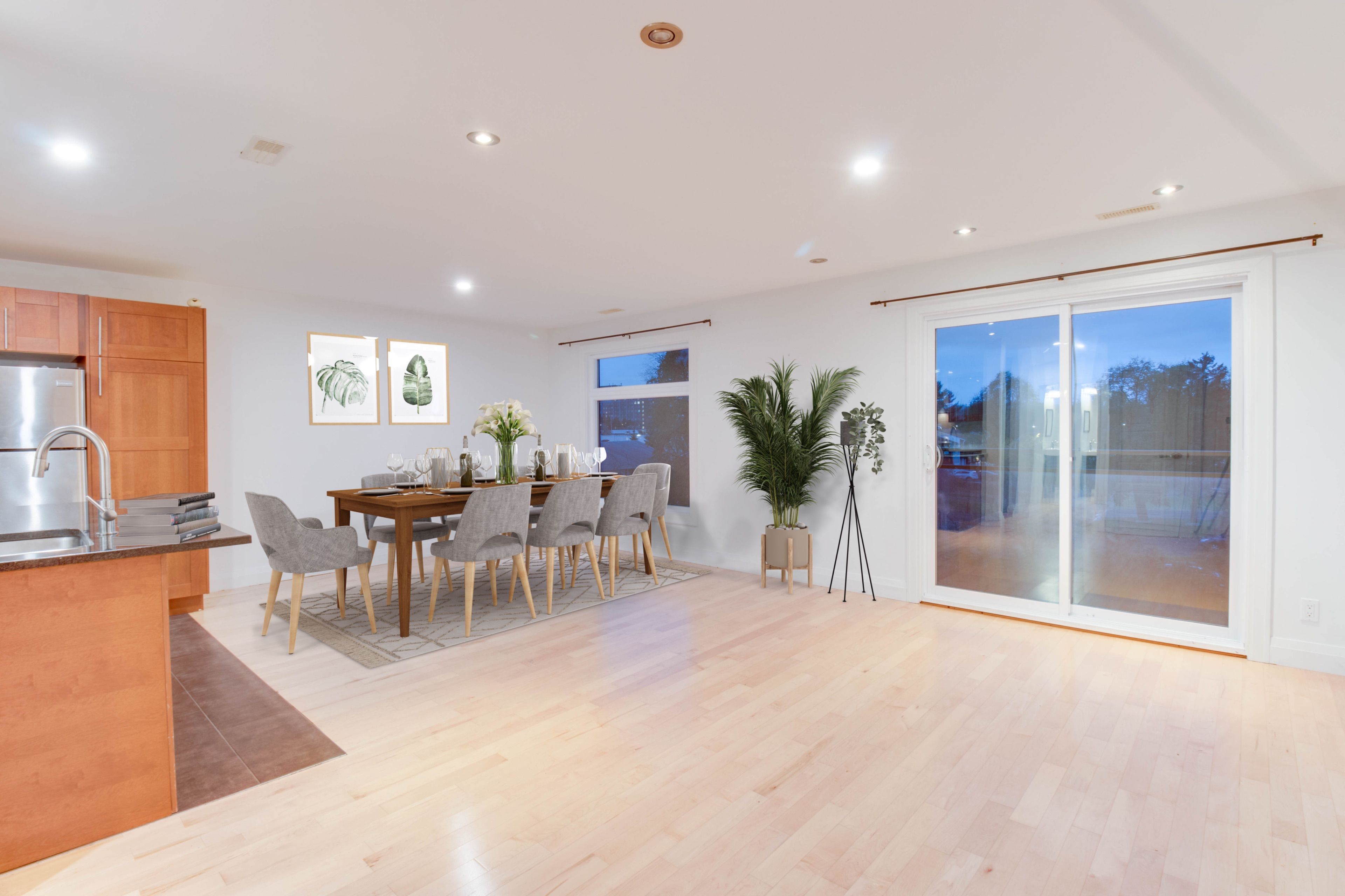 • Bright and airy with floor-to-ceiling windows throughout.