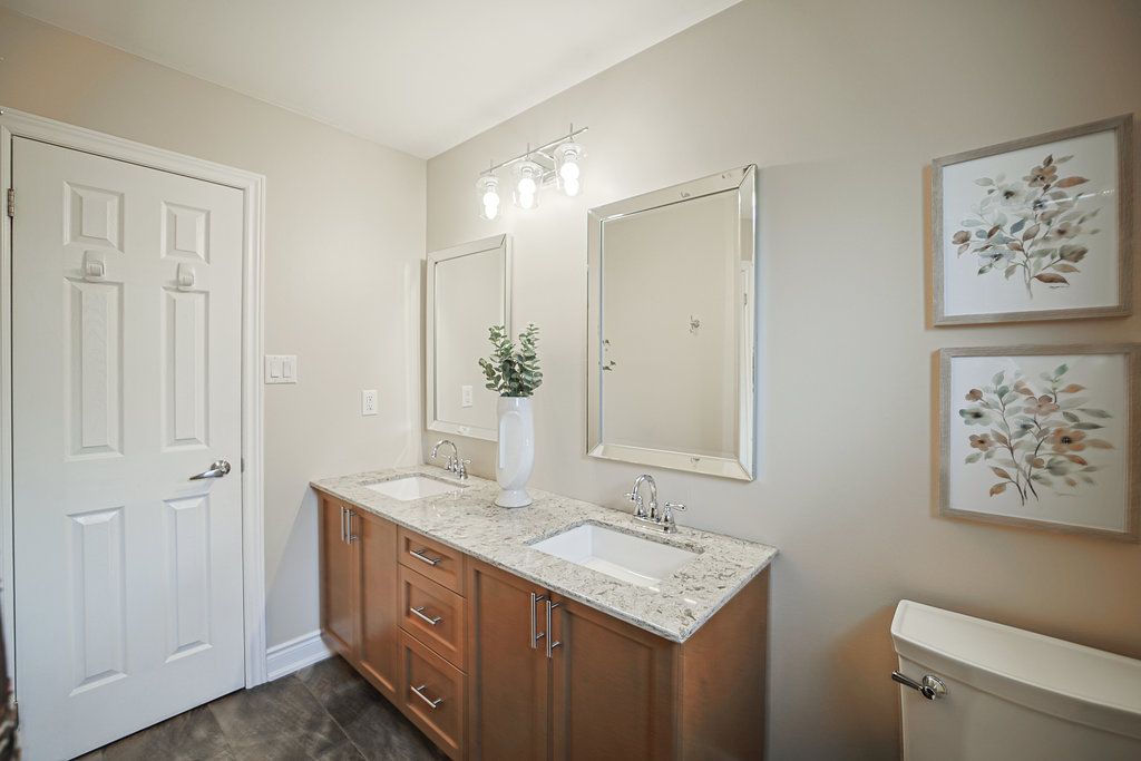Welcome to this fully renovated 3 bedroom, 4 bathroom house. It offers the ideal balance of style, functionality, and everyday comfort, making it perfect for a family seeking a truly comfortable space. You will be immediately impressed by the quality of the renovations. The main and second floor features rich hardwood and tile flooring (installed 2017), creating a clean and modern feel throughout. The beautifully renovated kitchen is both classic and functional, boasting solid oak cabinets, granite countertops, and stainless steel appliances, including a brand-new stove installed in 2023. Upstairs, you will find three spacious bedrooms and two fully renovated bathrooms. The primary bedroom includes a modern ensuite. The main bathroom includes a custom vanity with solid maple cabinets and quartz countertop. The main floor powder room is equally refreshed, making it perfect for guests. Thoughtful upgrades, such as refinished stairs, updated trim, baseboard, and all new interior doors, contribute to a consistent and polished look throughout the home. Elegant new light fixtures add a warm ambiance to each room. In addition to the cosmetic upgrades, major home systems have also been updated. A new roof (installed in 2017), new windows (11 in total), and a full set of appliances replaced in 2017 provide peace of mind. The fully fenced backyard is an ideal space for children to play, pets to roam, or hosting outdoor gatherings. The partially finished basement has a 3 piece bathroom and a finished multi-purpose room. A two-car garage and a four-car driveway further enhance the practicality of this home, making it ideal for families with multiple vehicles or guests. Close to schools, parks, playgrounds and trails. Easy access to transit and shopping. This move-in ready home is filled with thoughtful touches, perfect for those seeking to grow, while relaxing, enjoying and creating lasting memories.
