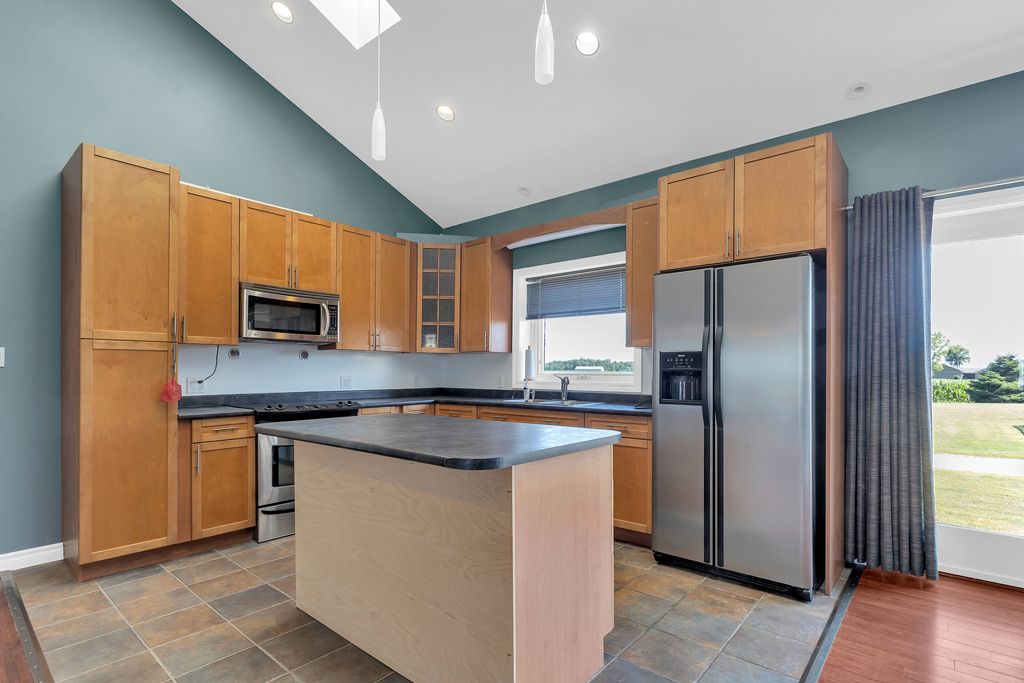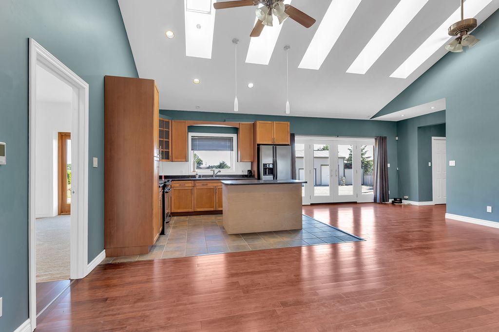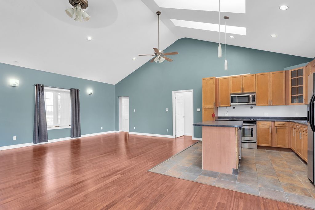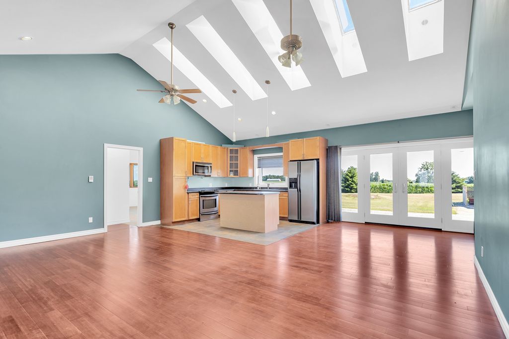 • Bright open-concept layout with cathedral ceilings and skylights.