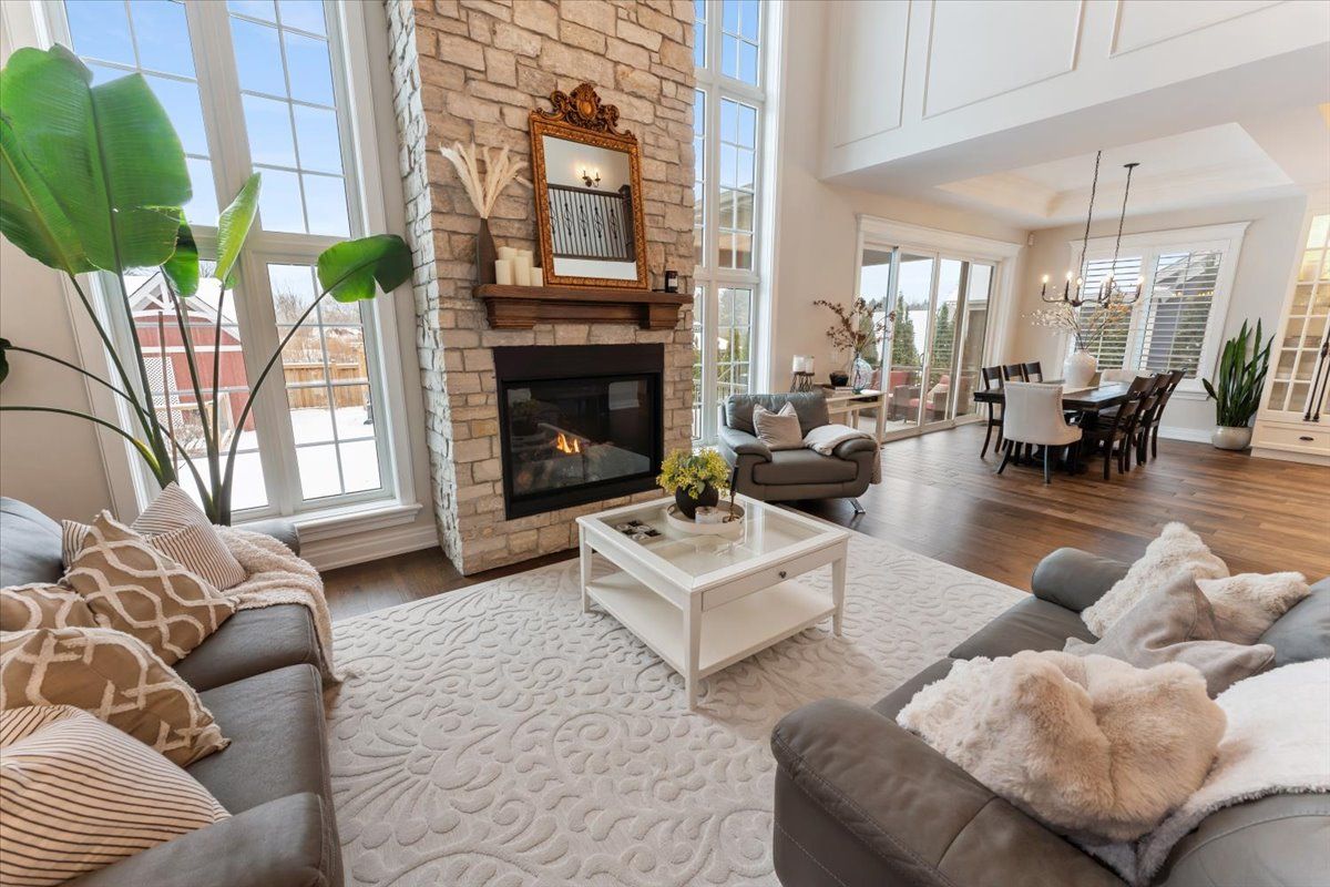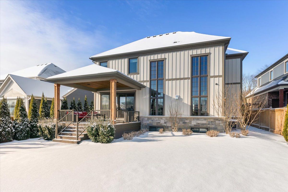 Nestled in the heart of fenwick, this custom-built, 2 storey home is a testament to modern luxury, timeless design & thoughtful craftsmanship. Built in 2019, with over 4400+ sqft of finished living space, this masterpiece offers high-end finishes & upgrades throughout. The striking brick & stone exterior, deep 152 ft lot & meticulously maintained landscaping make it clear this is no ordinary home. A private double interlock stone driveway leads to an attached 2. 5-car garage w/inside entry. Fully fenced backyard is complete with a sprawling composite covered deck, cozy firepit, swing, large garden shed & lush green space. Open-concept main flr featuring soaring 19 foot ceilings, gleaming hardwood floors & a stunning stone gas fireplace. The kitchen is a chefs dream, offering built-in appliances, center island w/breakfast bar, walk-in pantry & a dining area with sliding patio doors to rear covered deck. Additional conveniences include a mudroom, powder rm, main-floor bedrm (currently used as an office) & laundry rm. Solid oak staircase leads to the 2nd floor with a balcony-style walkway overlooking the living rm, 3 generously sized bedrooms including the primary suite, complete with an electric fp, spa-like 4 pce ensuite featuring a soaker tub, glass walk-in shower & walk-in closet with custom shelving. The fully finished basement offers a family room w/fp & equipped with a media system, 2 additional bedrooms, 3 pce bath & ample storage. Highlights include high ceilings, solid wood interior doors, crown moulding, ceramic tile, high-end light fixtures, a built-in media system, a 200-amp breaker panel, an owned tankless hot water heater, an hrv system, central vacuum, cold storage, a security system, gas bbq hookup & an irrigation system. Situated in a prime location, this executive home is close to fenwick's town center, schools, shops, restaurants, the beloved farmers market. Dont miss this opportunity to own an exceptional home that's ready for you to unpack & enjoy!