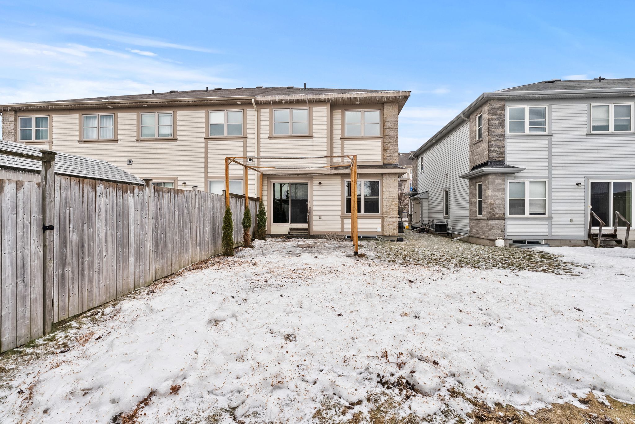 End unit in the heart of orleans offering exceptional value! Once a cardel model home, this 2 bedroom, 3 bathroom (2 ensuites!) home is sure to please! The main level boasts 9' ceilings, pot lights throughout, hardwood flooring, and an open concept floor plan. As you step inside, the foyer with custom bench & hooks welcomes you. The spacious kitchen with walk-in pantry and huge island (easily seats 4) is perfect for meal prep and for entertaining! A sleek feature wall is the backdrop to the dining and living areas, overlooking the backyard. Upstairs, the two impressive bedrooms can both be called "primary" suites, each featuring their own private ensuite bathroom and walk-in closet. Head downstairs to catch a movie or send the kids to play in the partially finished rec room (concrete floor has been painted to create a "finished look" - leave it the way it is or add your own flooring!). Enjoy warm summer days bbqing in the backyard or gathering with friends on the spacious patio under the custom pergola. Bonus: driveway fits 2 cars (in addition to the garage)! This home is conveniently located close to public transit, parks, schools, shops, dining and more! Book a showing today! Note: some photos are virtually staged. Visit link for more photos!