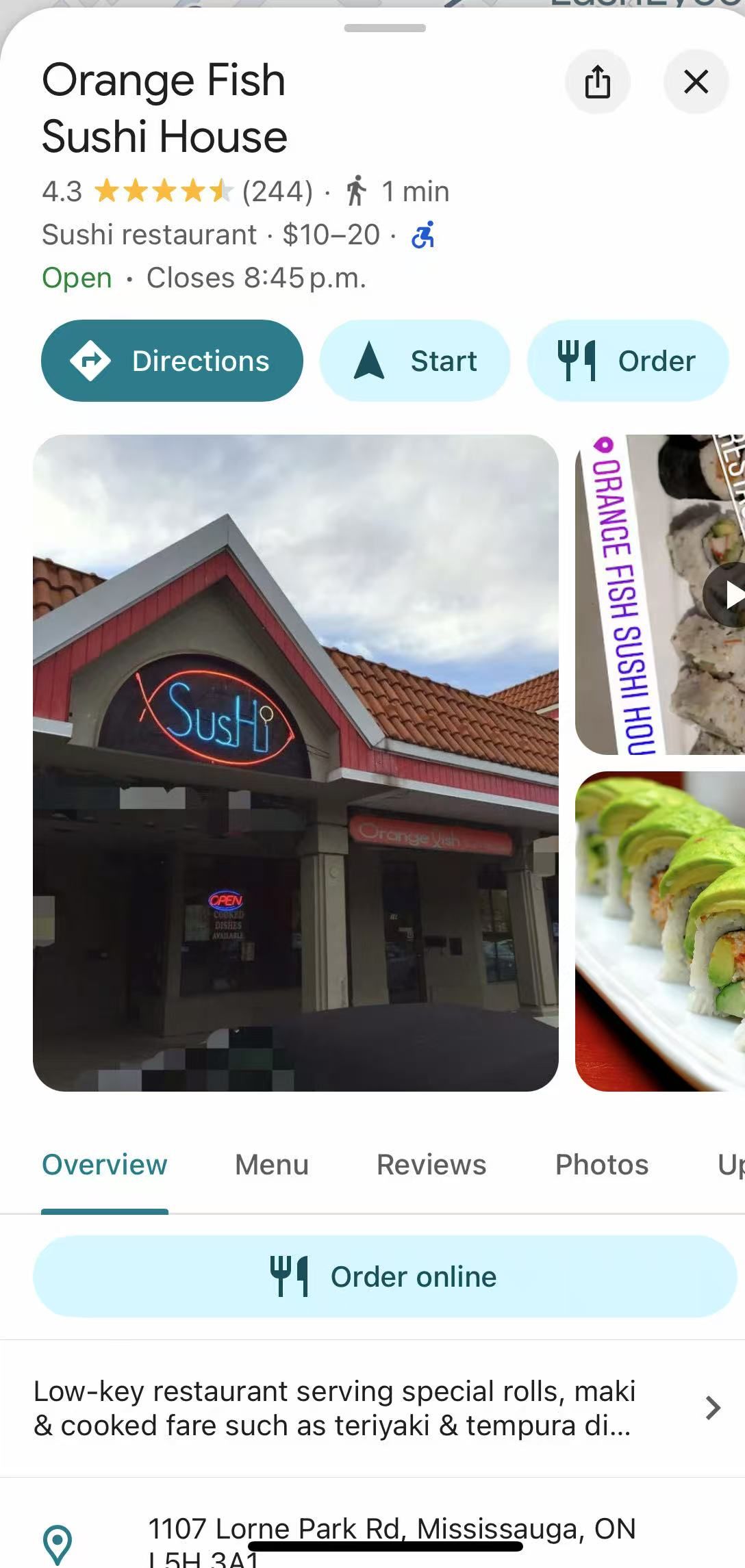 • Well-established sushi restaurant in a busy plaza with ample parking.