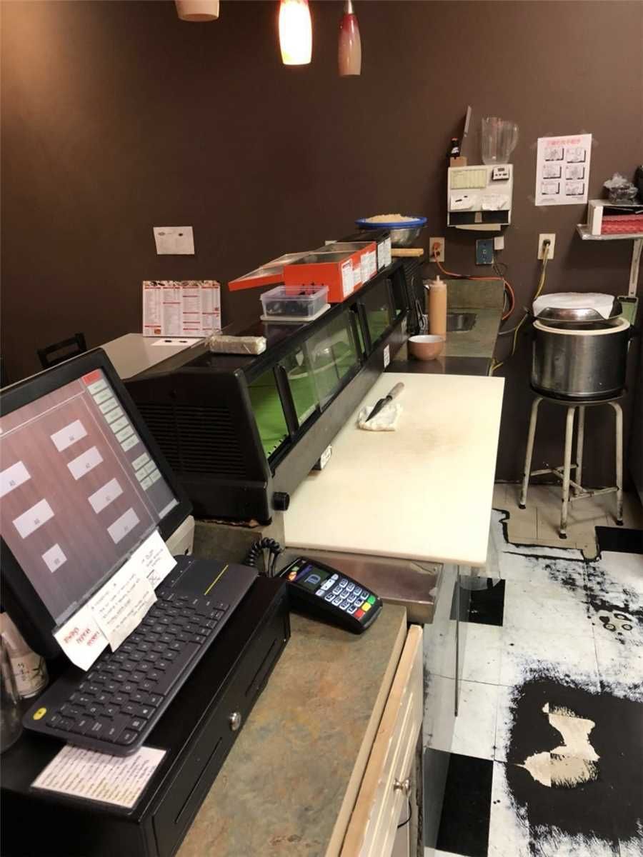 Excellent opportunity!! This well established sushi restaurant is located inside a busy plaza, with ample parking, fully equipped japanese style food menu take-out or eat-in fast food, lots of pick-up & delivery, also deliver to nearby grocery stores. Full kitchen with ventilation system. Short hours, can extend business hours to generate more business, lots of repeated clientele. Motivated to sell!