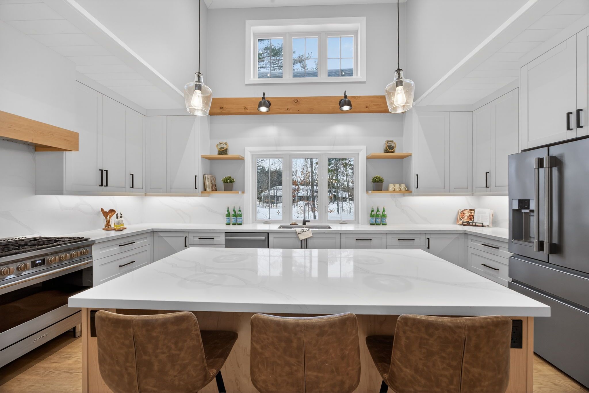 • Impressive kitchen featuring quartz surfaces and premium appliances.