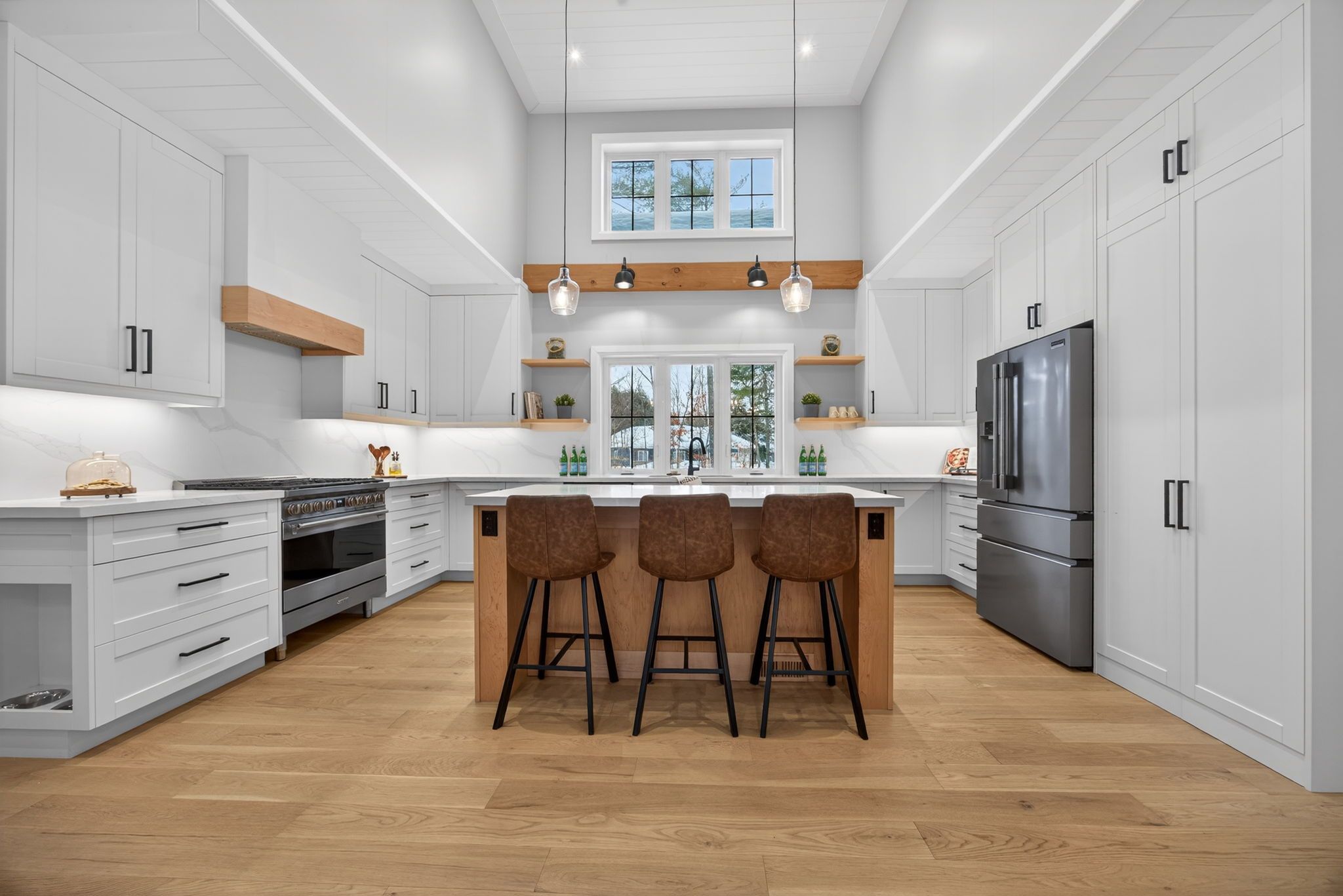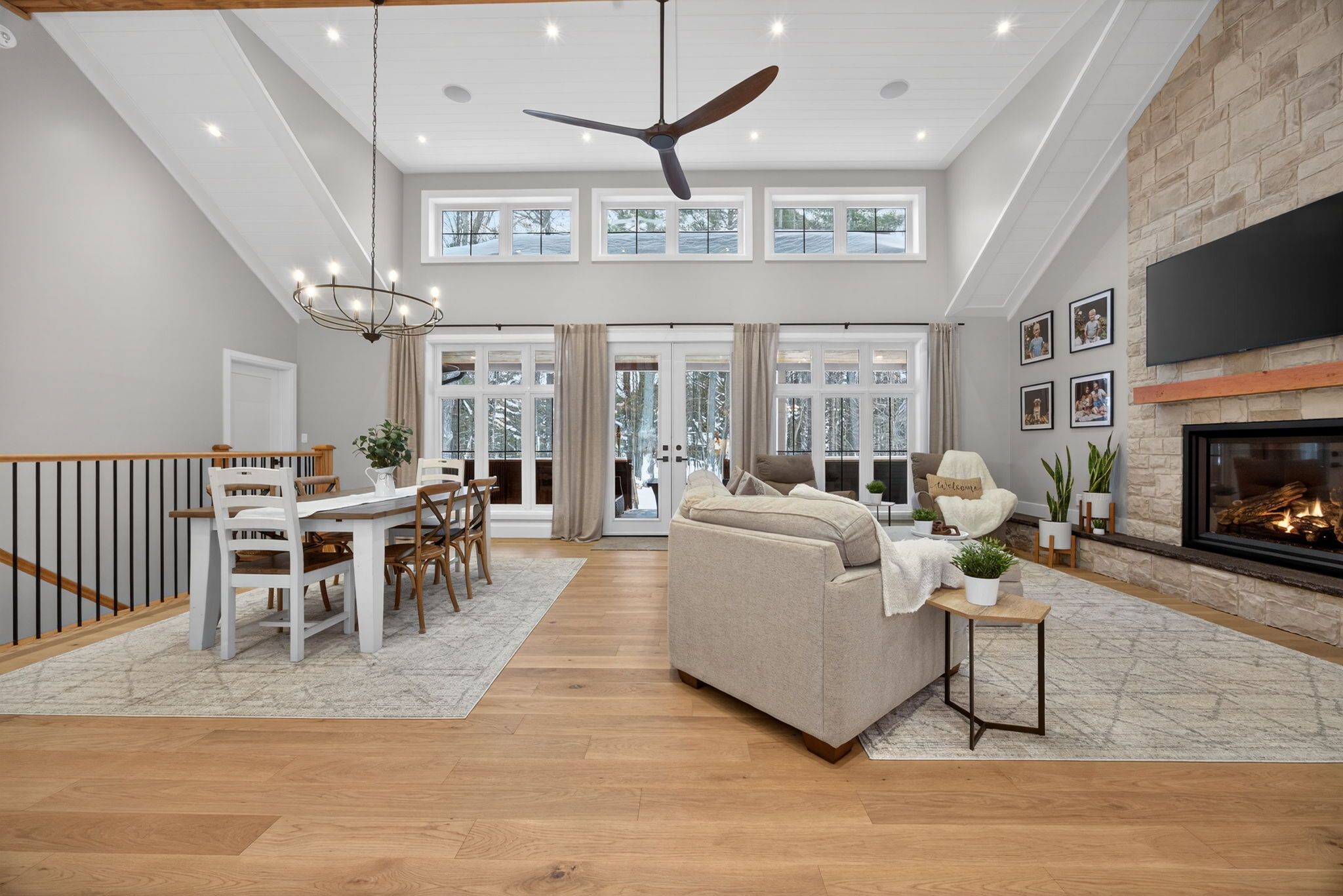 Join us for morning coffee and a tour! Sunday may 3, 10-12. Executive country living - just 7 minutes south of gravenhurst. Moments to hwy 11 for seamless gta access, yet privately set on a wooded 1-acre lot, this recently completed custom 5-bedroom residence delivers refined muskoka design with exceptional build quality and modern efficiency. The open-concept main level features wide-plank white oak floors, vaulted v-groove ceilings with exposed beams, and expansive dormers that flood the space with natural light. A striking floor to ceiling 42" gas fireplace anchors the living area, with walkout to a covered rear porch and hot tub for effortless year-round enjoyment. The custom kitchen was designed to impress - quartz surfaces, premium appliances including a 36" gas range, generous island seating, wine storage, and a hidden walk-in pantry with secondary refrigerator offer both beauty and function. The primary suite is a private retreat with vaulted ceilings, walk-in closet, and spa-inspired ensuite featuring heated floors and an oversized glass shower. Two additional main-floor bedrooms provide flexibility for family or guests. The fully finished lower level with 9. 5' ceilings adds two large bedrooms, full bath, recreation space, and dedicated gym/ office - ideal for growing families or professionals working from home. Built for longevity and performance with icf foundation, insulated slab, zip system sheathing, r-60 insulation, high-efficiency mechanicals, hrv system, whole-home water filtration, and an 18 kw generator. An oversized heated 2-car garage and spacious, thoughtful mud room offer daily convenience. A detached shop with 100-amp service, washroom, in-floor heat, and car-lift potential is perfect for collectors, entrepreneurs, or hobbyists. Private. Polished. Purposefully built. Homes of this calibre - so close to town yet offering complete luxury - rarely become available. Book your private showing before spring momentum carries it away.