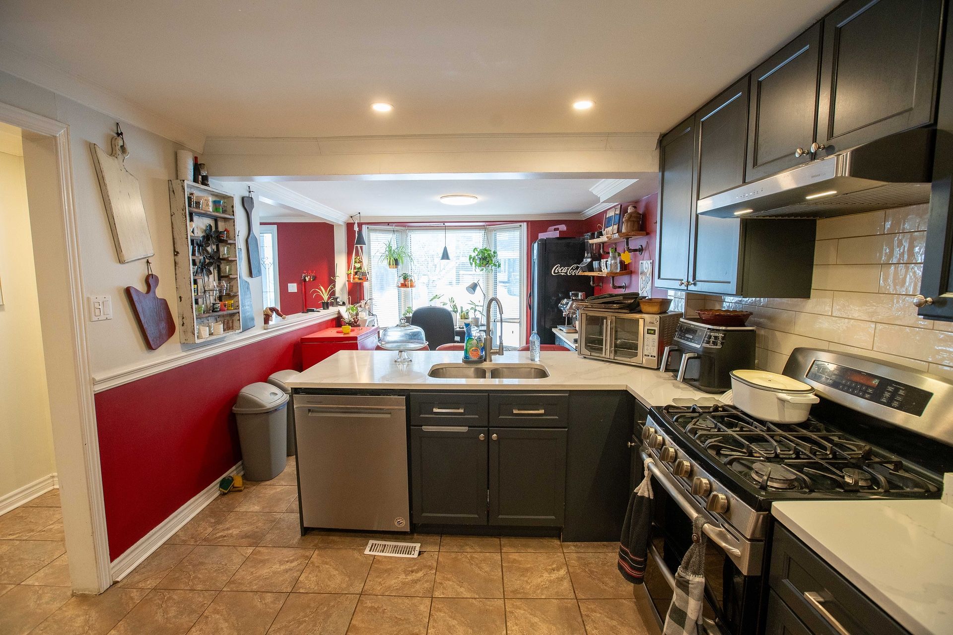 Welcome to 1108 grenoble crescent, a beautifully updated home offering 3 bedrooms, 2. 5 bathrooms, a finished basement, and an attached tandem garage. The main level features a bright, spacious layout with a large renovated kitchen (2020) showcasing granite countertops, stylish cabinetry, and stainless-steel appliances. The adjoining eat-in area includes a built-in electric fireplace, while the combined living and dining rooms provide an inviting space for entertaining. A sunken family room highlights a gas fireplace (2019) along with new pot lights and modern light fixtures. The lower level is finished and currently used as a storage space, offering flexible living space. Exterior highlights include an interlock front walkway and a tandem garage accommodating up to two small vehicles. Recent updates include: kitchen (2020), roof (2020), light fixtures (2020), gas fireplace (2019), bay window and select windows (2020), entrance and storm doors (2020), and fresh paint throughout (2020-2021). Ideally located minutes to place d'orléans, the queensway, and the lrt station, this home offers comfort, convenience, and value. Book your showing today!