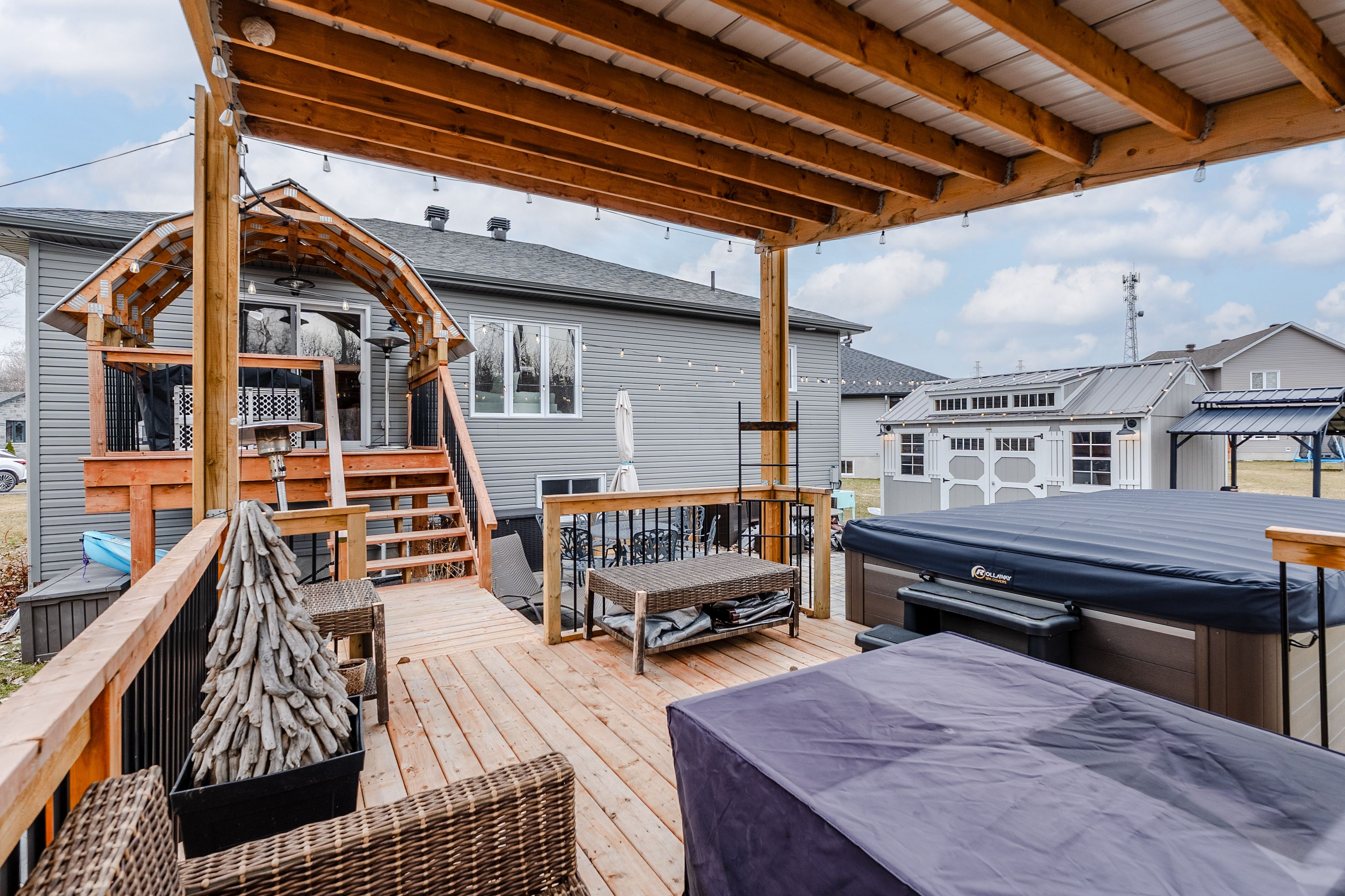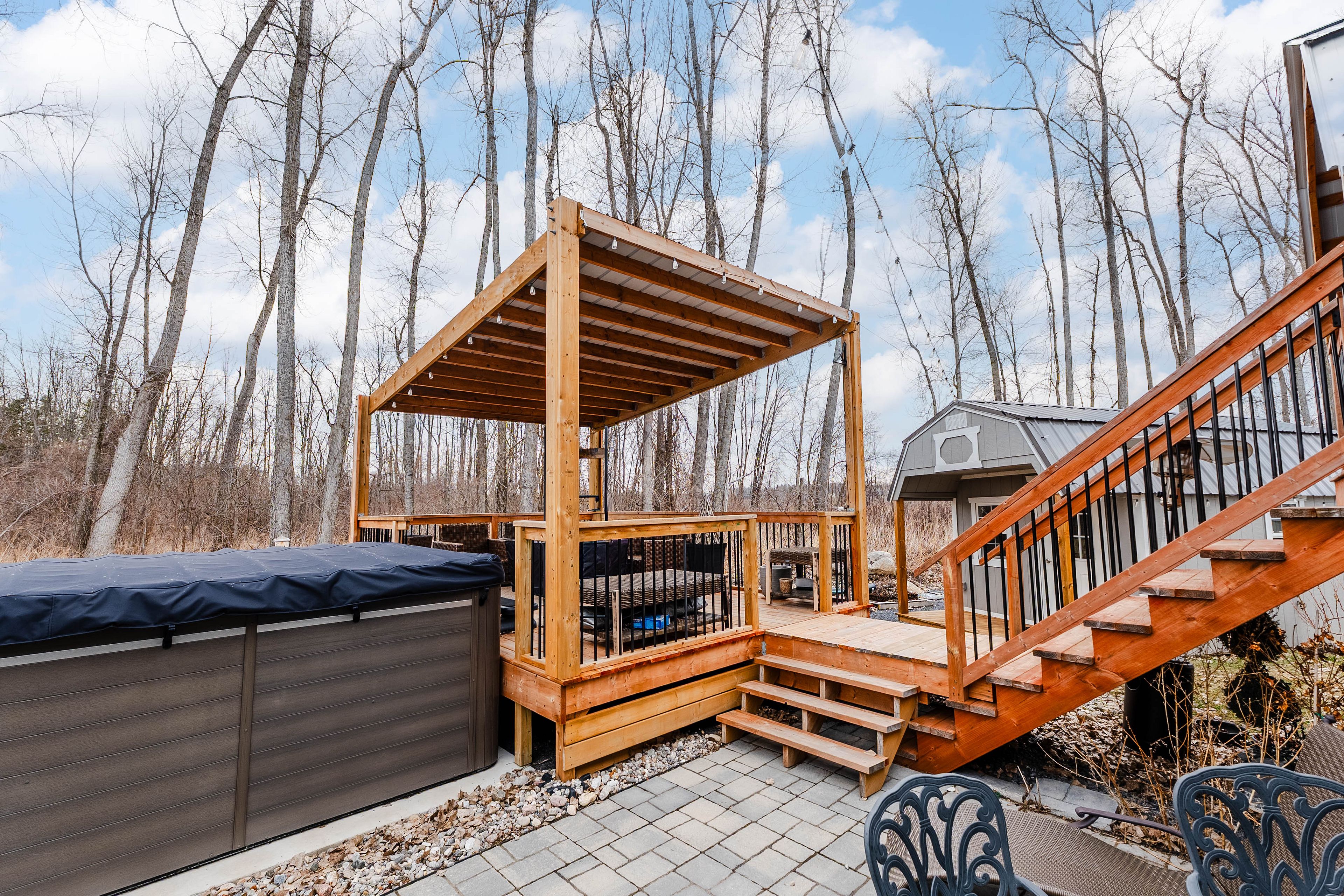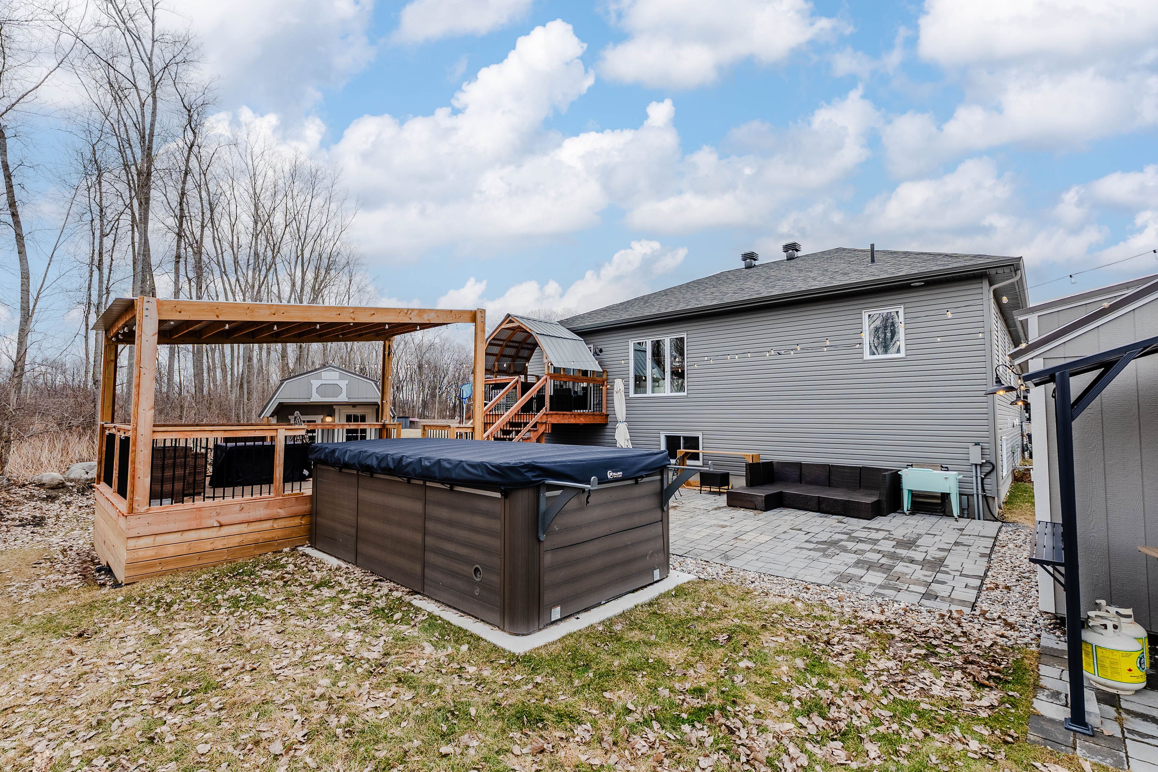 • Raised rear deck and stone patio provide great outdoor spaces.