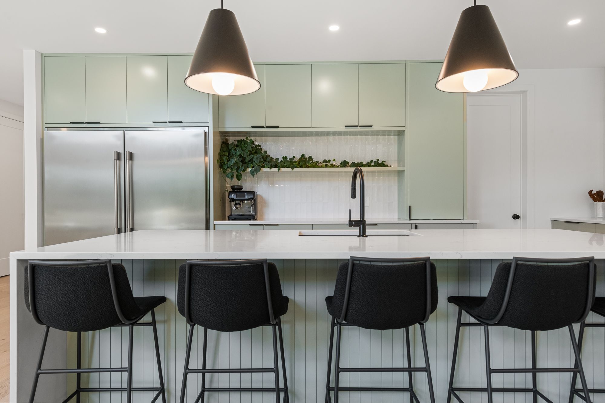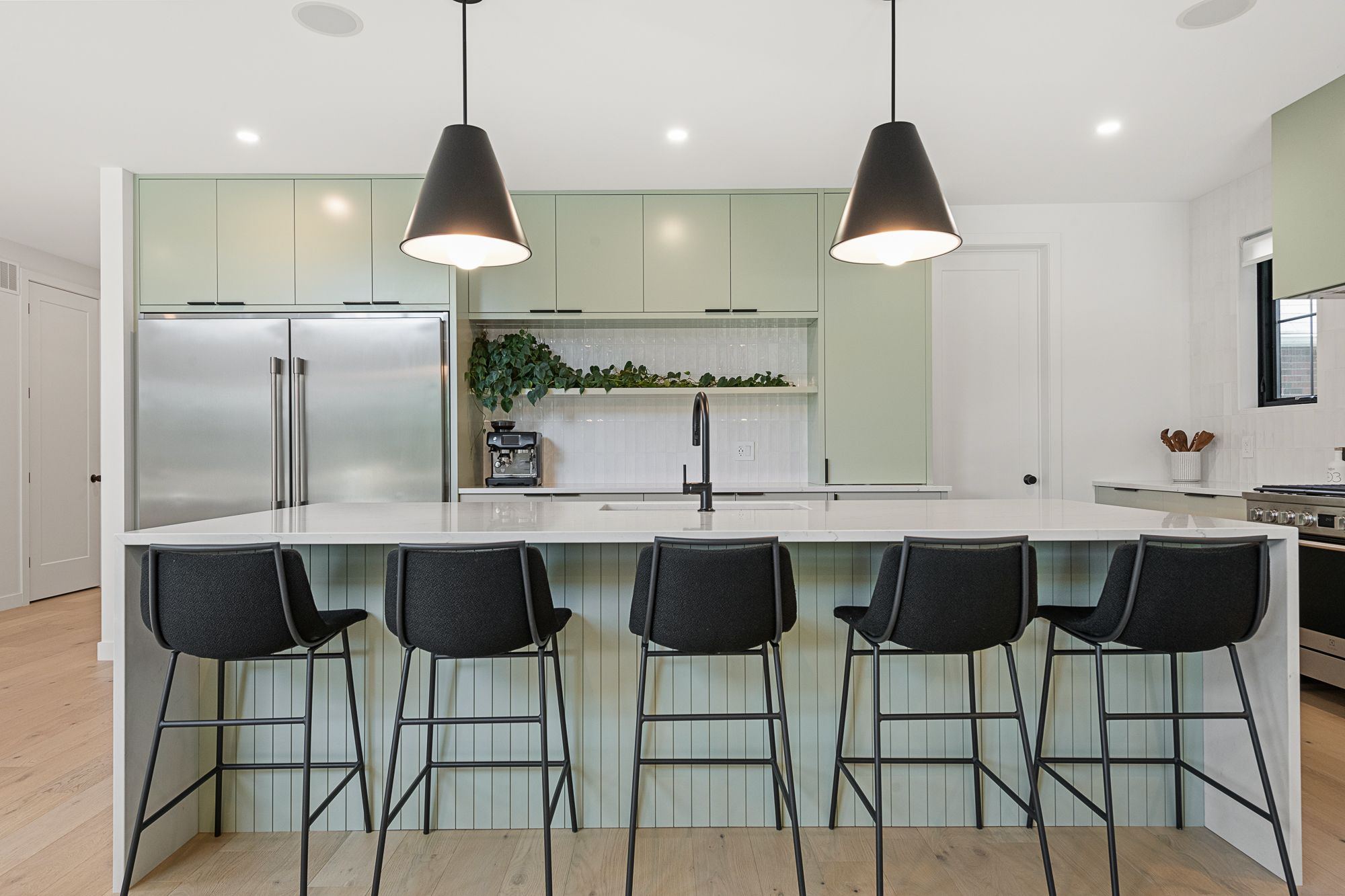 • Chef's kitchen boasting a large island, pantry, and premium finishes.
