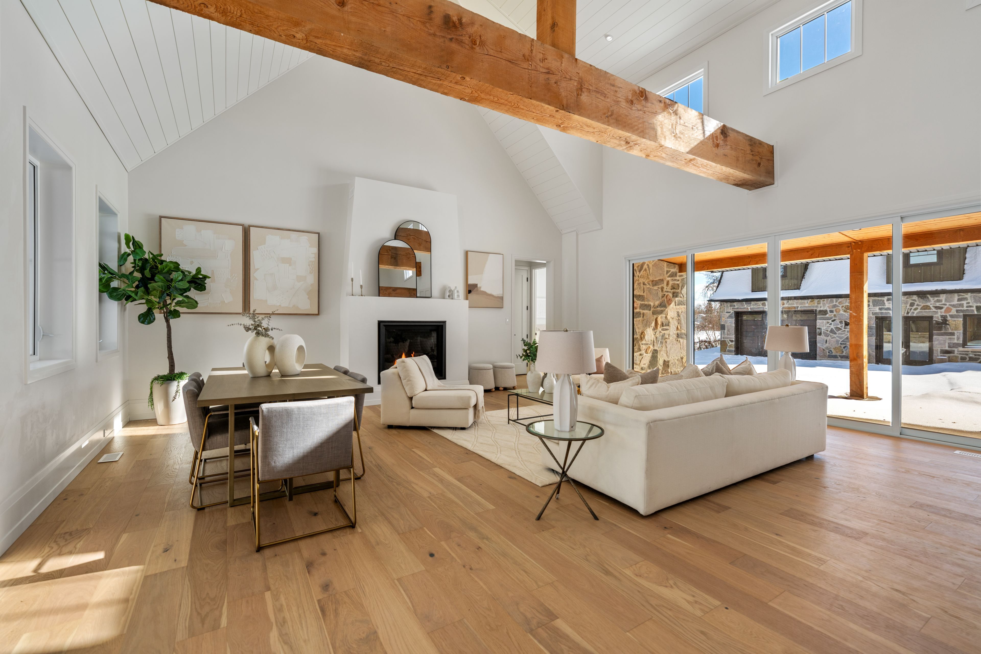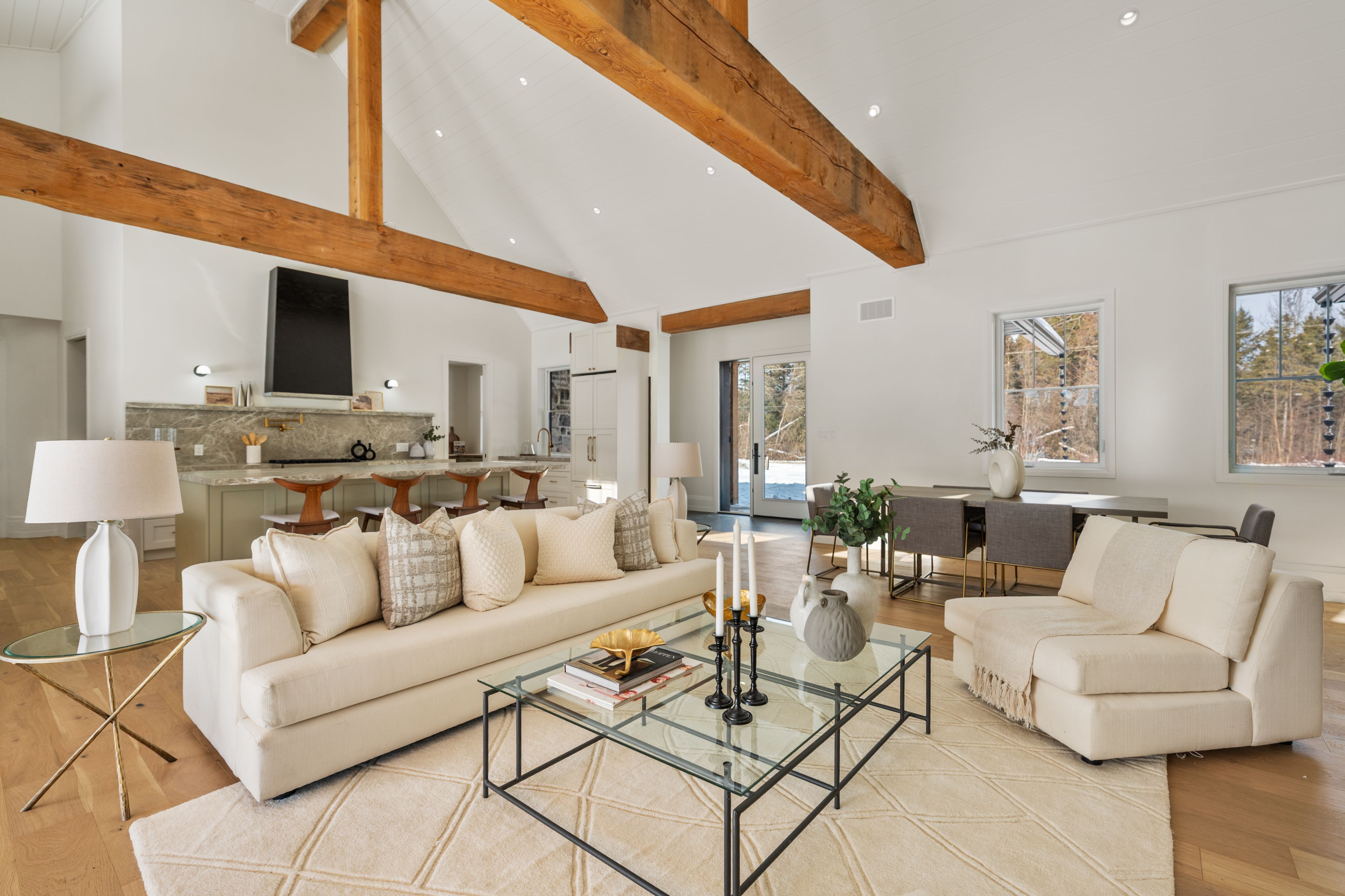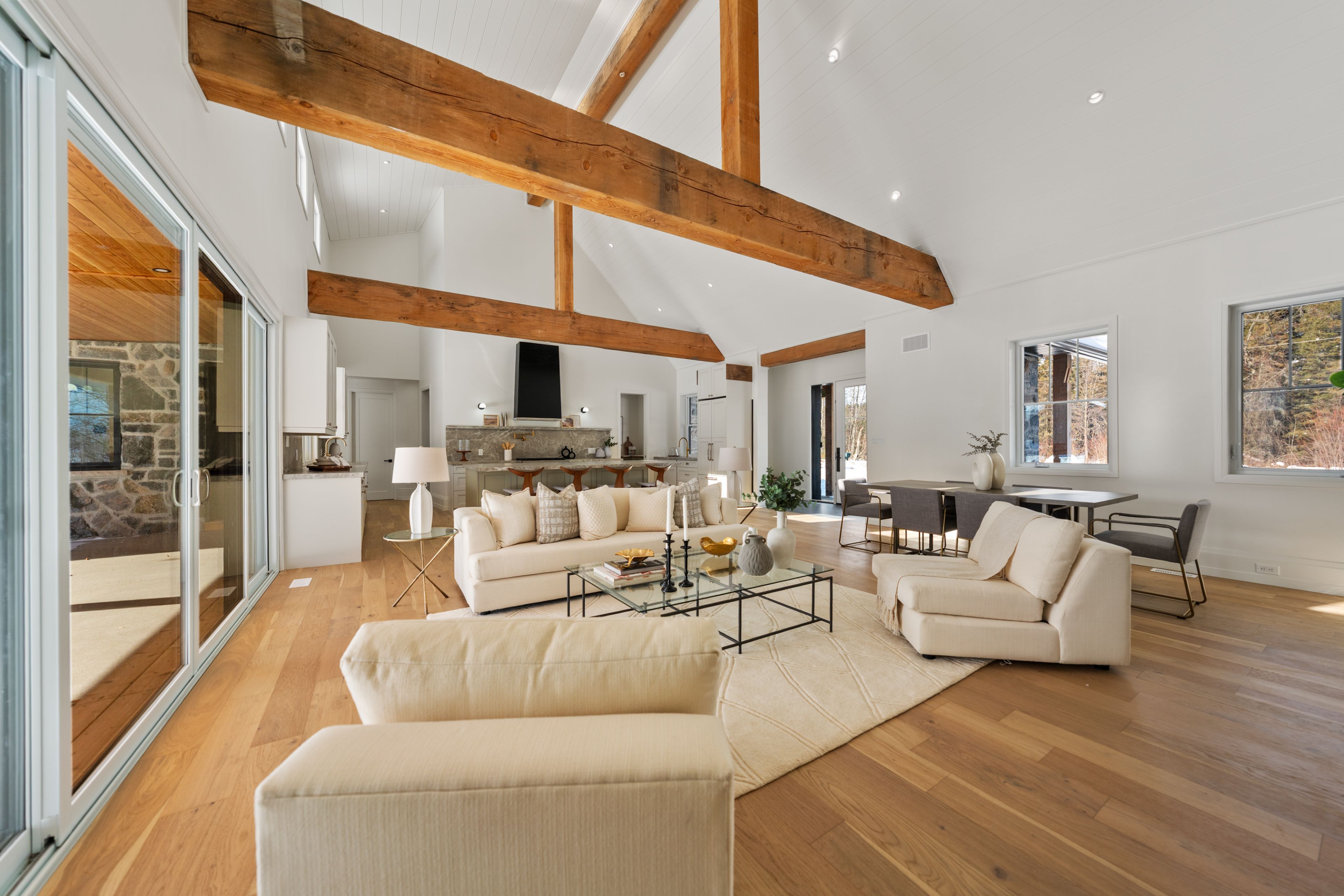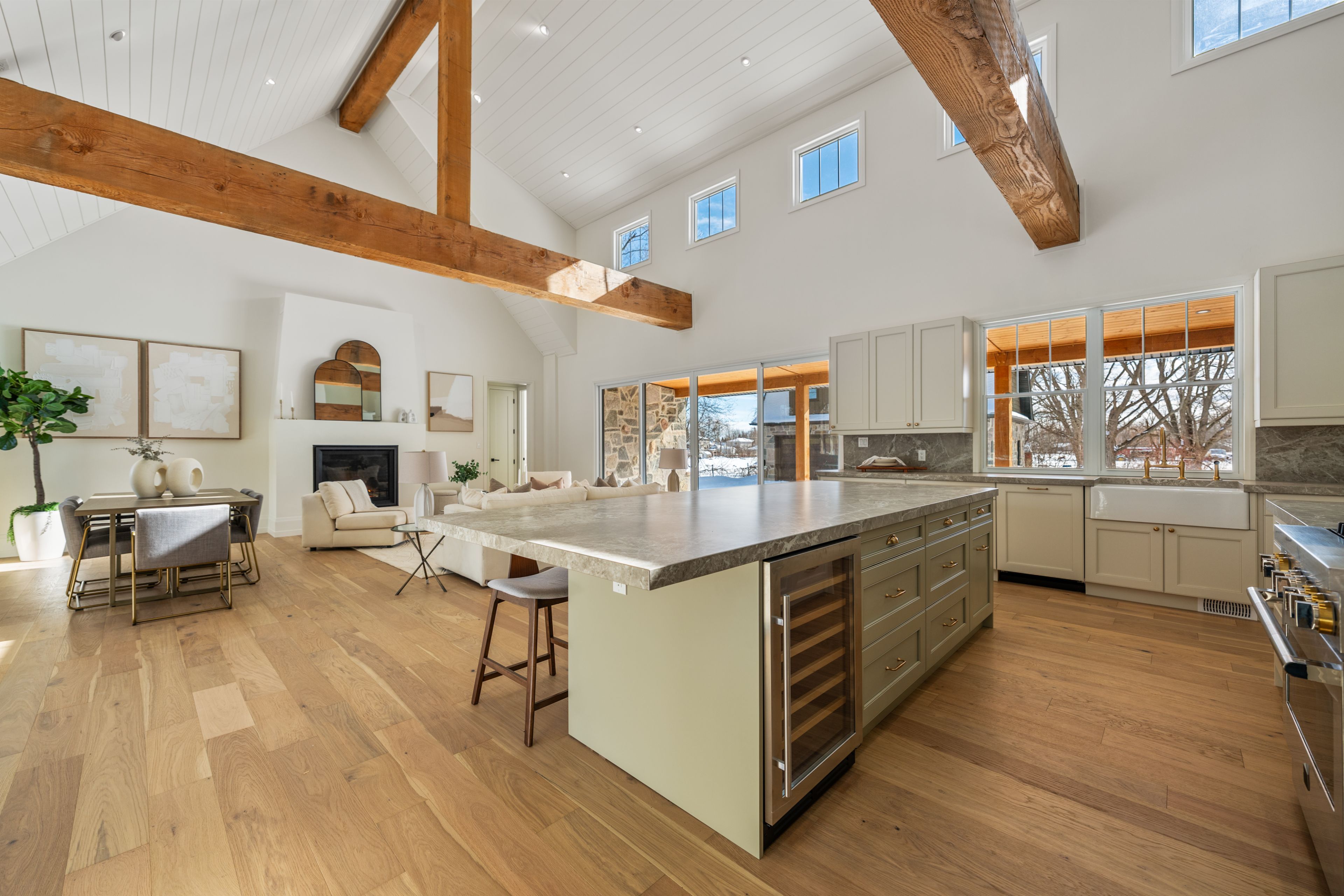 • Bright and open atmosphere with 18-foot vaulted ceilings and large windows.