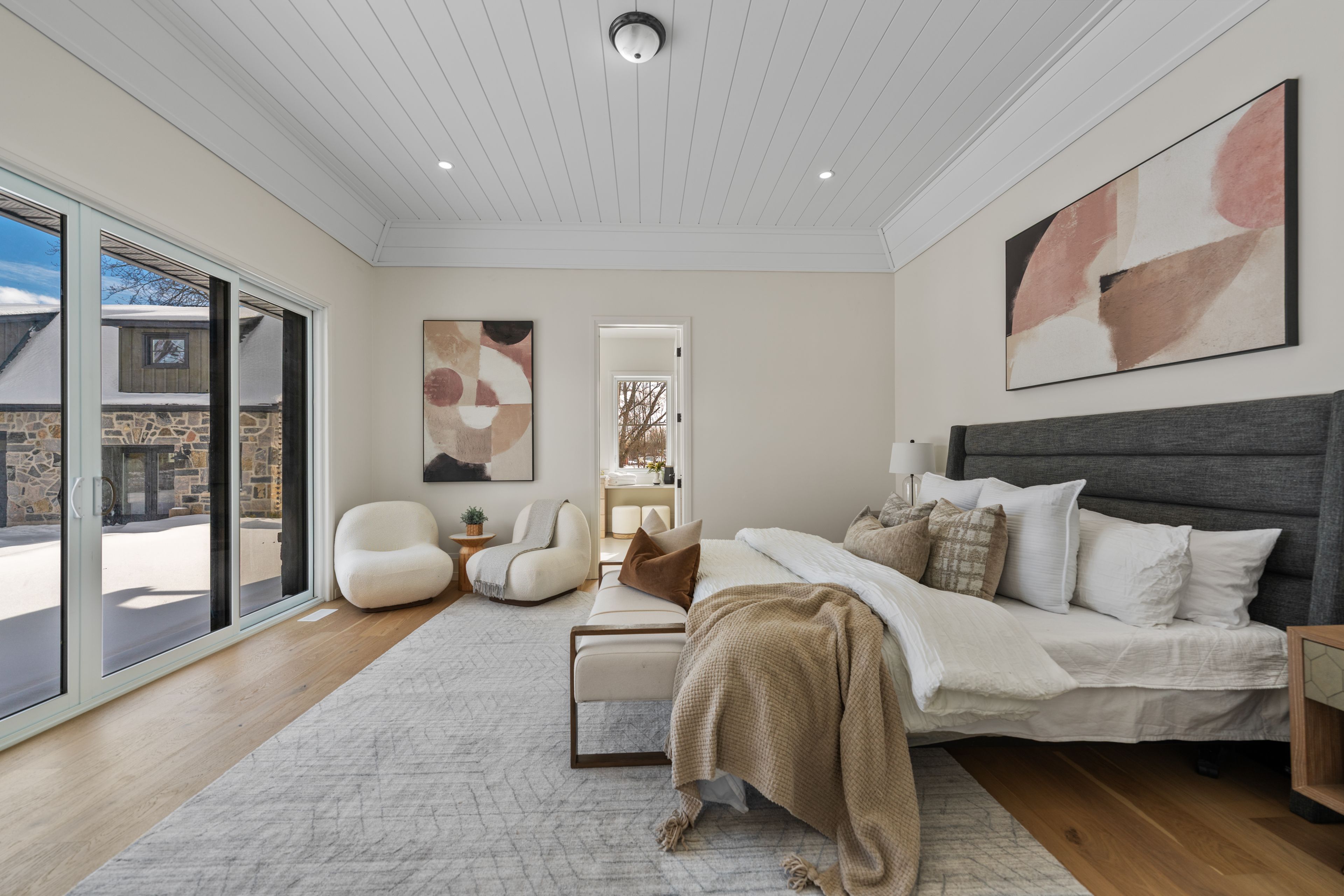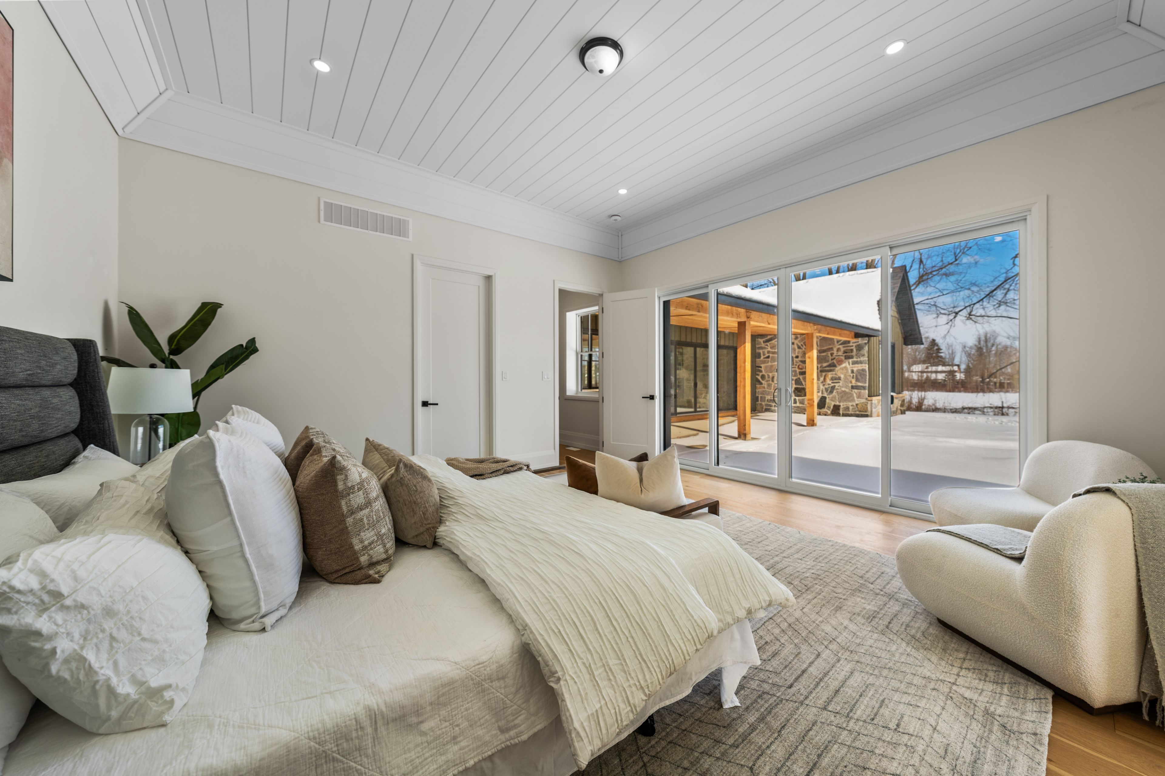A rare offering for those who appreciate quality and thoughtful design. This custom-built estate combines solid icf construction and spray foam insulation with carefully selected finishes throughout. Inside, 18-foot vaulted ceilings and expansive windows create a bright, open atmosphere. Engineered oak woolf flooring, architectural fir beams, and custom millwork add warmth and character. The kitchen is both beautiful and functional, featuring premium appliances, a walk-in pantry, and a serving window to the backyard, while a 16-foot sliding door extends the living space outdoors to a snow melt patio. The primary suite is a true retreat leading to a spa-inspired ensuite with radiant in-floor heating. A fully self-contained legal second dwelling includes its own kitchen, laundry, separate utilities, and a dedicated 100-amp panel, offering excellent flexibility for extended family or additional income. Currently operating as a successful airbnb, it generates approximately $250 per night. Guests are drawn to the unbeatable lifestyle- lake swimming in the summer and ice fishing in the winter. The property also includes a coach house with the potential of creating even more possibilities for additional living space, a studio, or guest accommodations. This home is equipped with a waterloo biofilter septic system, thoughtfully engineered to support the potential addition of a pool while offering both efficiency and flexibility for your long term plans. With lake views from the juliet balcony, and just a short walk to the water, this energy efficient home offers comfort, versatility, and an exceptional lifestyle.