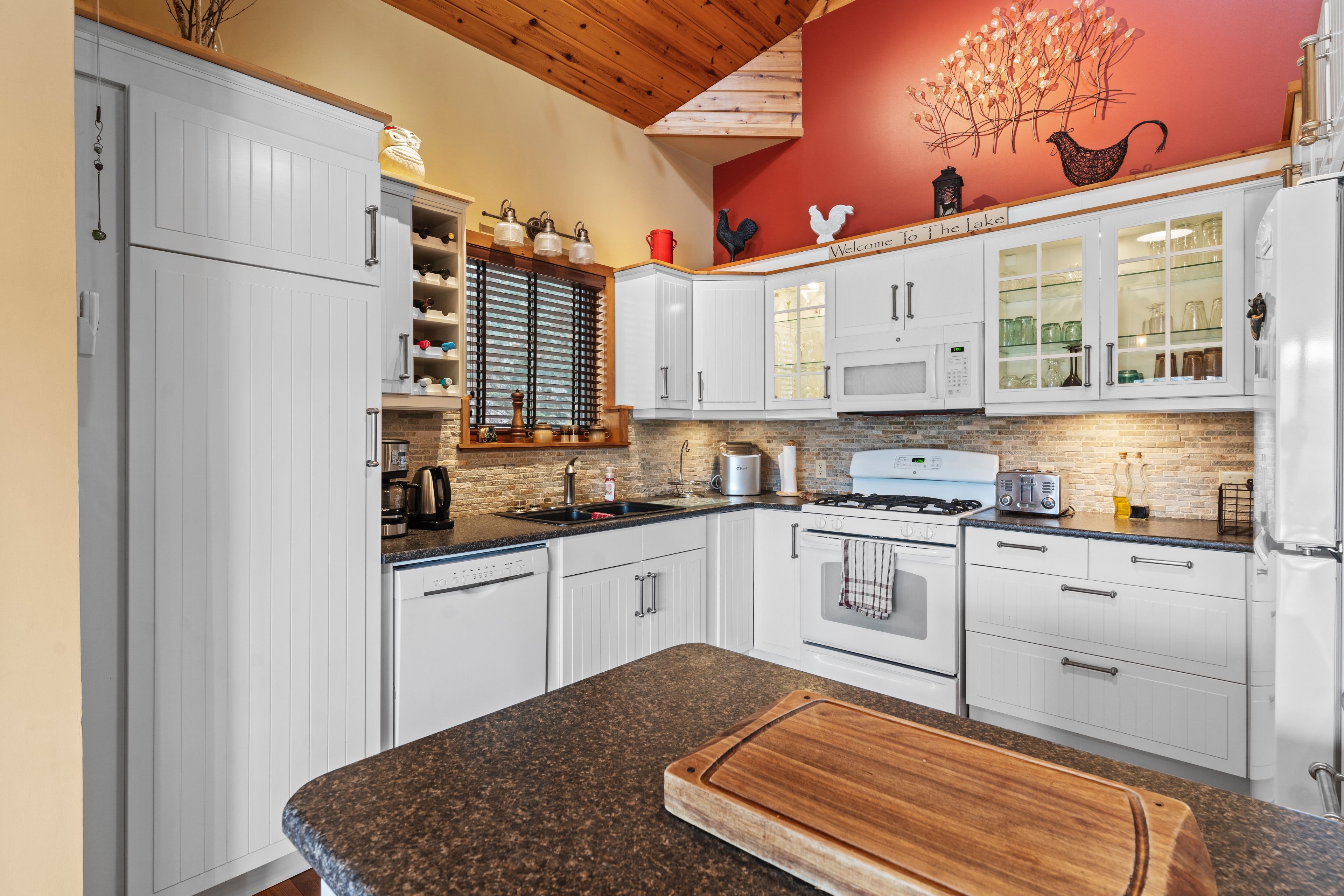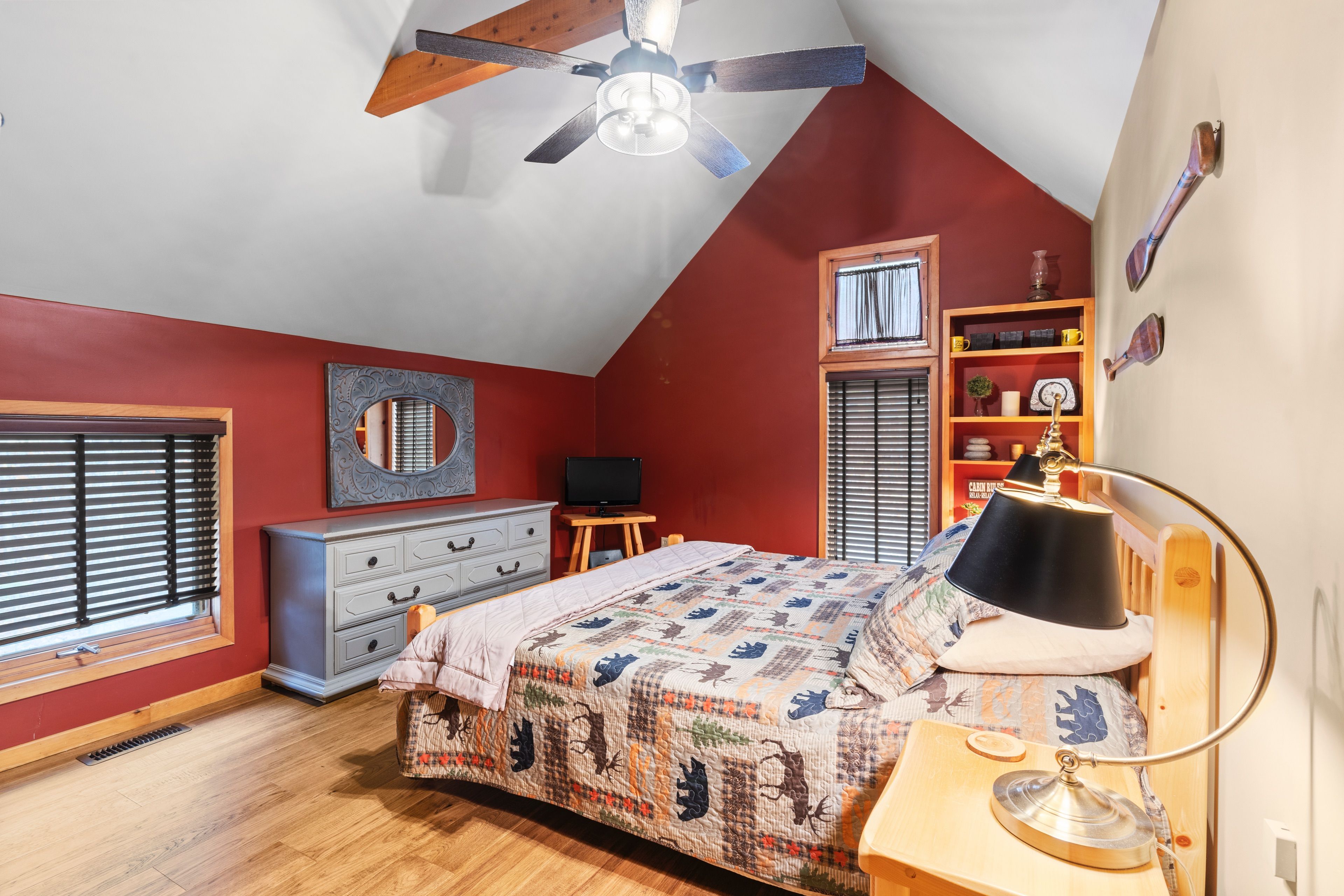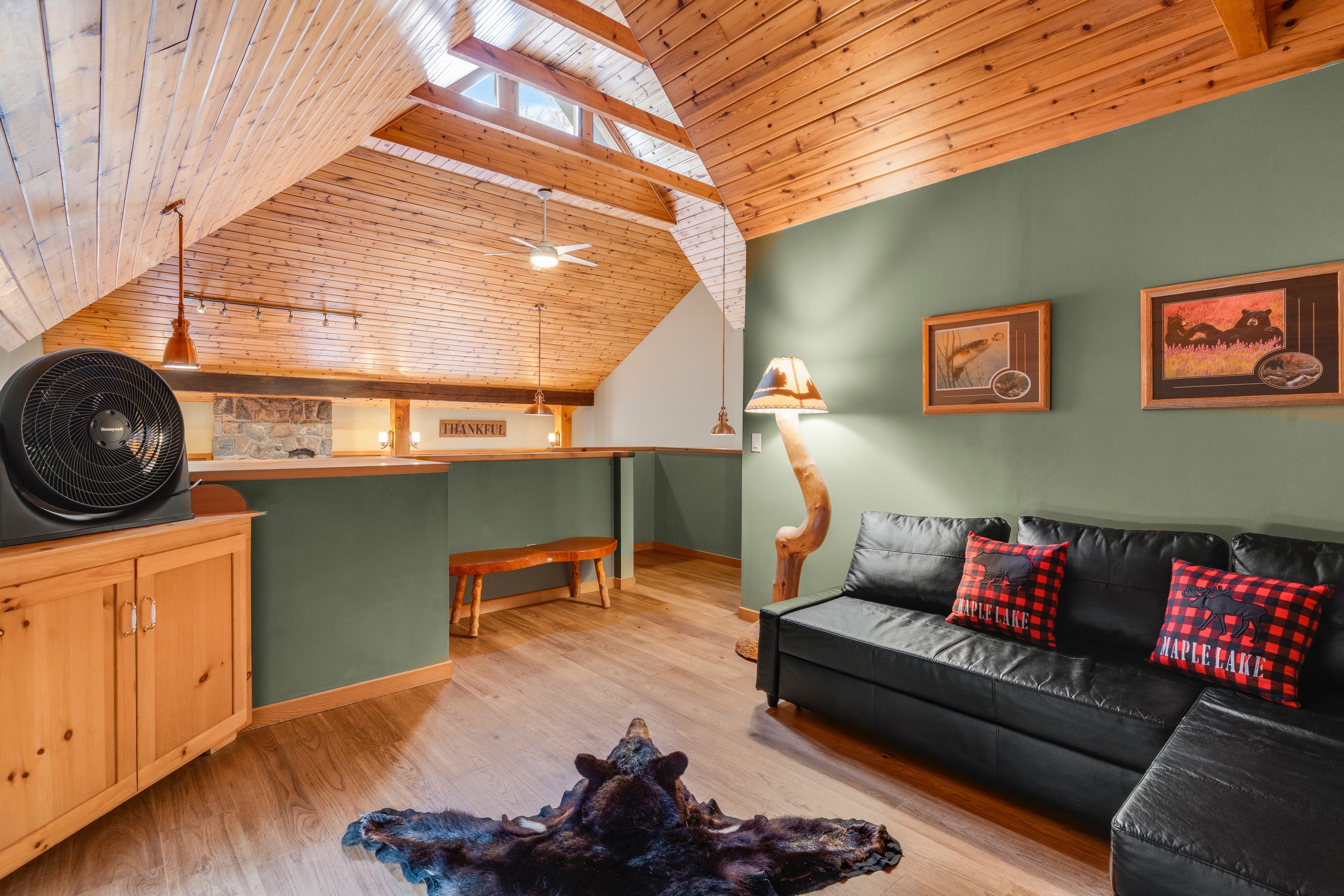Welcome to this immaculate 3-bedroom, 2-bathroom home or cottage on beautiful maple lake. This fully winterized, 2,100+ sq. Ft. Property perfectly blends modern comfort with classic cottage charm. Step inside to an open-concept main floor featuring warm wood accents throughout the living, dining, and kitchen areas, with large windows framing stunning lake views. A 3-season screened porch and wrap-around deck provide plenty of space for relaxing or entertaining by the water, while the floor-to-ceiling stone woodstove creates the perfect spot to cozy up during the winter months. Upstairs, you'll find two spacious bedrooms, a full bathroom, and a cozy tv/sitting area, an ideal retreat for family or guests. The finished lower level offers even more living space, including a comfortable family room, third bedroom, and a newly finished bathroom complete with a wet/dry sauna for ultimate relaxation. Boasting 150 feet of frontage on maple lake, this property is ideally positioned for endless boating, swimming, and fishing adventures across the three-lake chain. Outside, enjoy a level lot with plenty of space for yard games or family gatherings, southwest exposure, and incredible privacy. The maintenance-free docking system with 6-7 feet of water depth off the end ensures easy lake access all season long. Meticulously maintained and truly move-in ready, simply arrive and start enjoying the lakefront lifestyle you've been dreaming of.