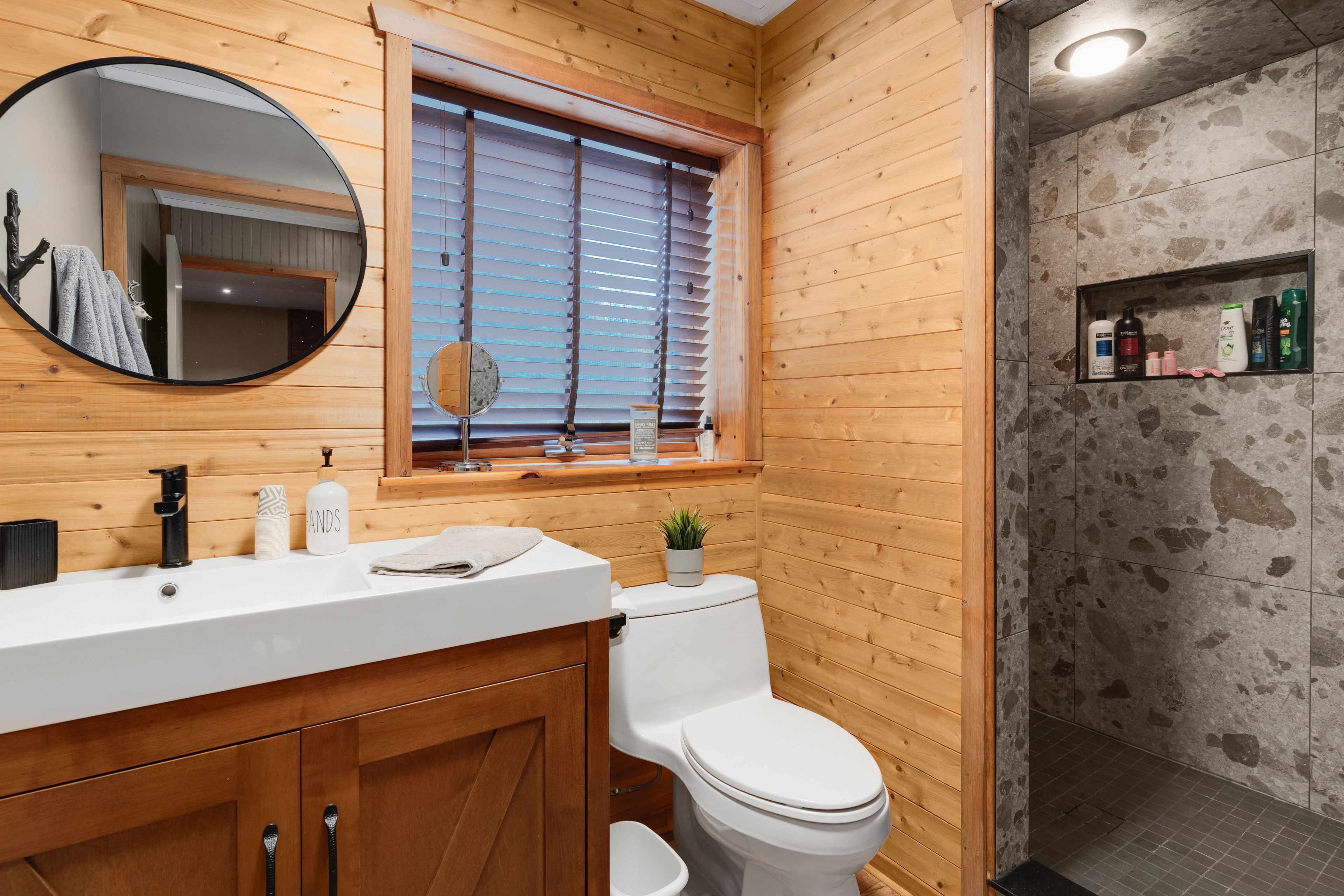 • Open-concept layout with wood accents creates a warm, inviting atmosphere.
