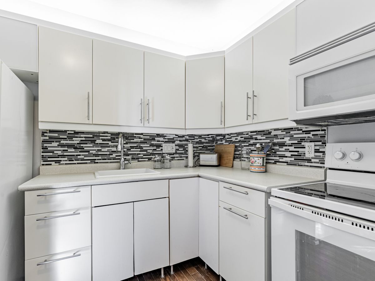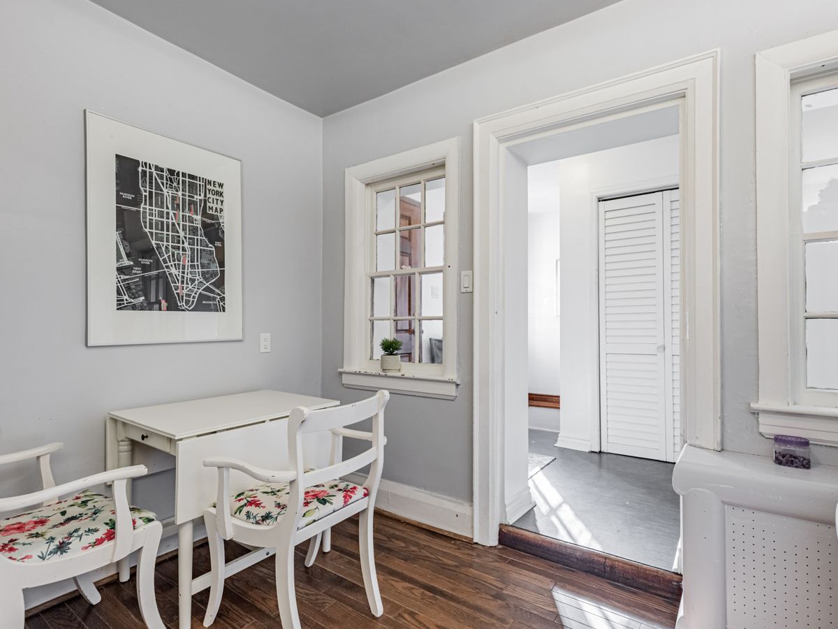 • Spacious living room features a floor-to-ceiling window and a double closet.
