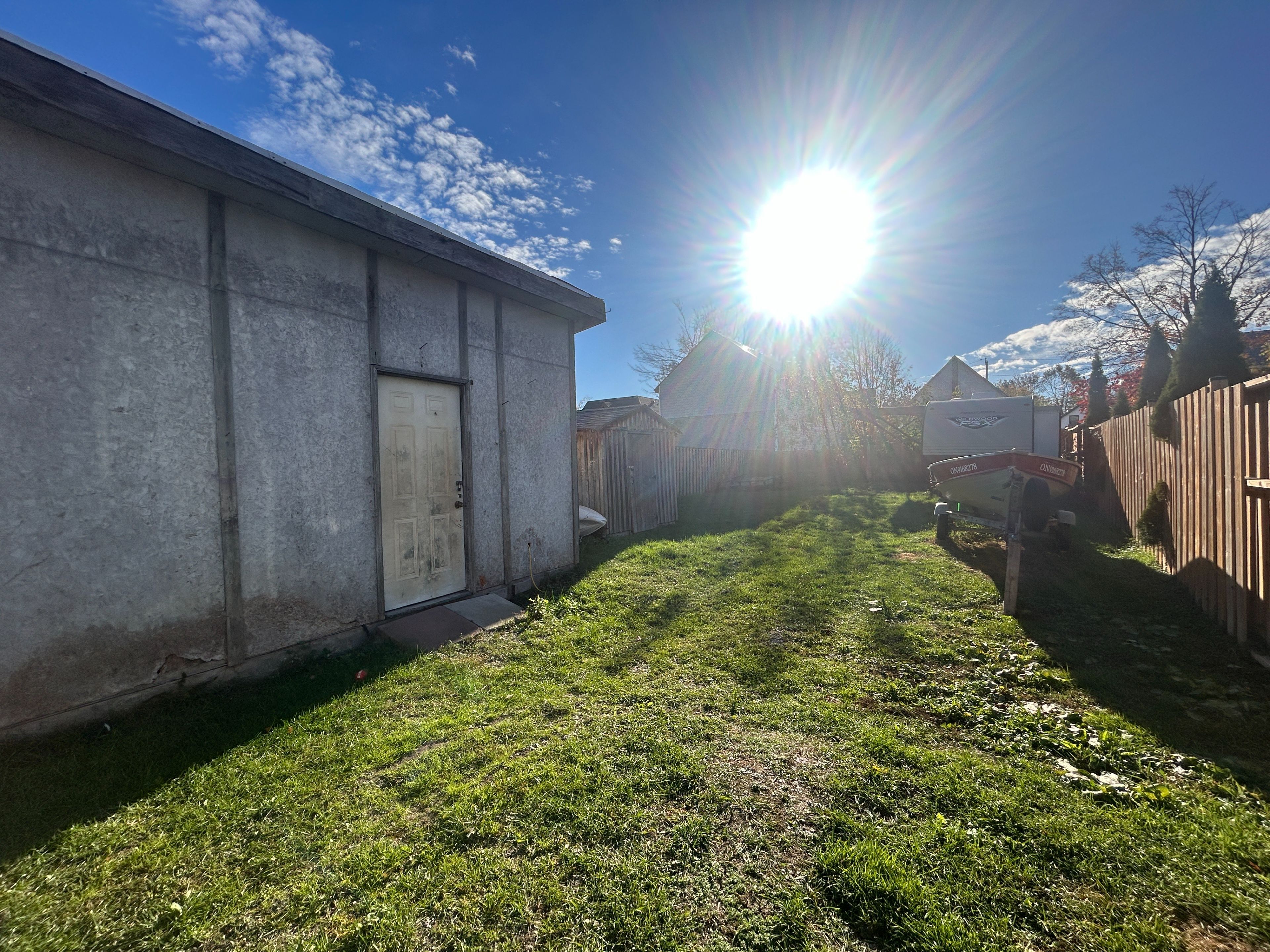 • Partially fenced yard with two storage sheds for extra space.