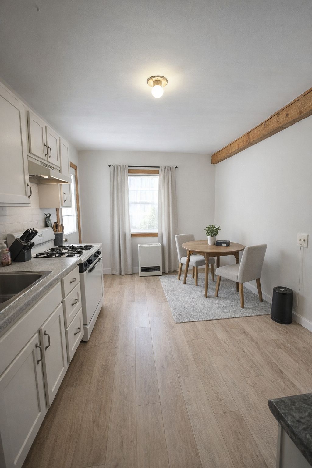 • Two bedrooms with an eat-in kitchen featuring a gas stove.