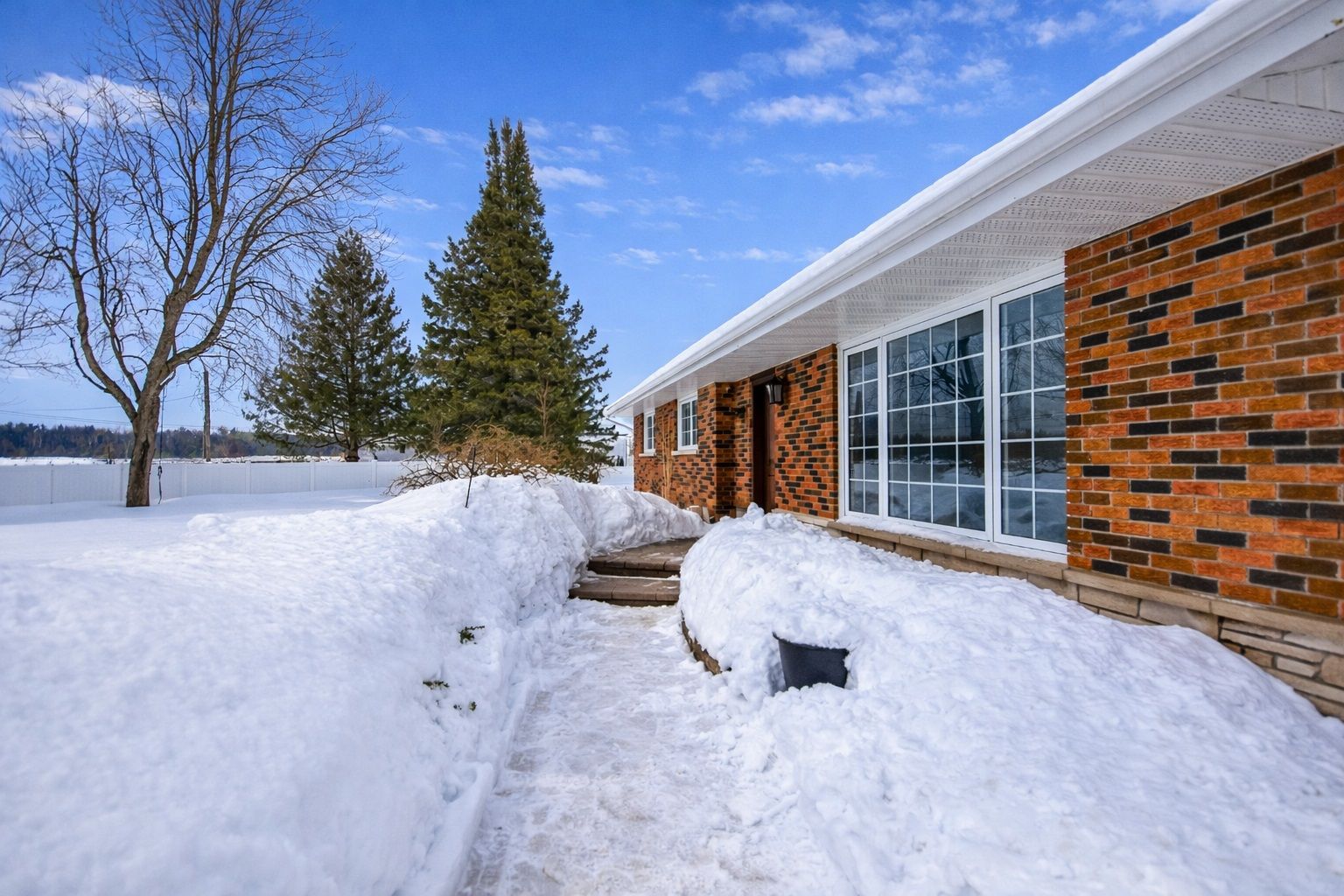 Welcome to this impeccably maintained a must see... Ranch style bungalow in the peaceful community of perkinsfield, offering pride of ownership and exceptional versatility just minutes from the shores of georgian bay. Situated on an oversized 0. 935-acre lot and only steps to the trans canada trail, this spacious home features 4 bedrooms on the main floor, 3 bathrooms, and generous living rooms filled with natural light, including a stunning second living room with 10-foot ceilings, gas fireplace, hardwood floors, and pot lights. A thoughtfully designed addition includes a second primary bedroom with private access to the backyard and interior entry to the fully insulated double car garage, complete with a gas line for a future heater. The flexible layout offers excellent in-law suite potential with a separate entrance, kitchenette, barn door feature and laundry hookup. The home is equipped with a 200-amp electrical panel, owned gas water heater, and central air conditioning (3 years old), providing comfort and peace of mind. Enjoy a brand-new (2026) stainless-steel gas stove and built-in microwave, an oversized interlock driveway accommodating 10+ vehicles, and ample space to build a shop for your recreational toys. Surrounded by nature and within walking distance to a large perkinsfield park, including the pavilion for winter skating, tennis courts, ball diamonds and playground and just a short drive to balm beach, midland, and penetanguishene for shopping, dining, hospital, and everyday amenities. This home offers the perfect blend of rural tranquility, convenience and is ideally located to raise your family in or retire in rural tranquility.