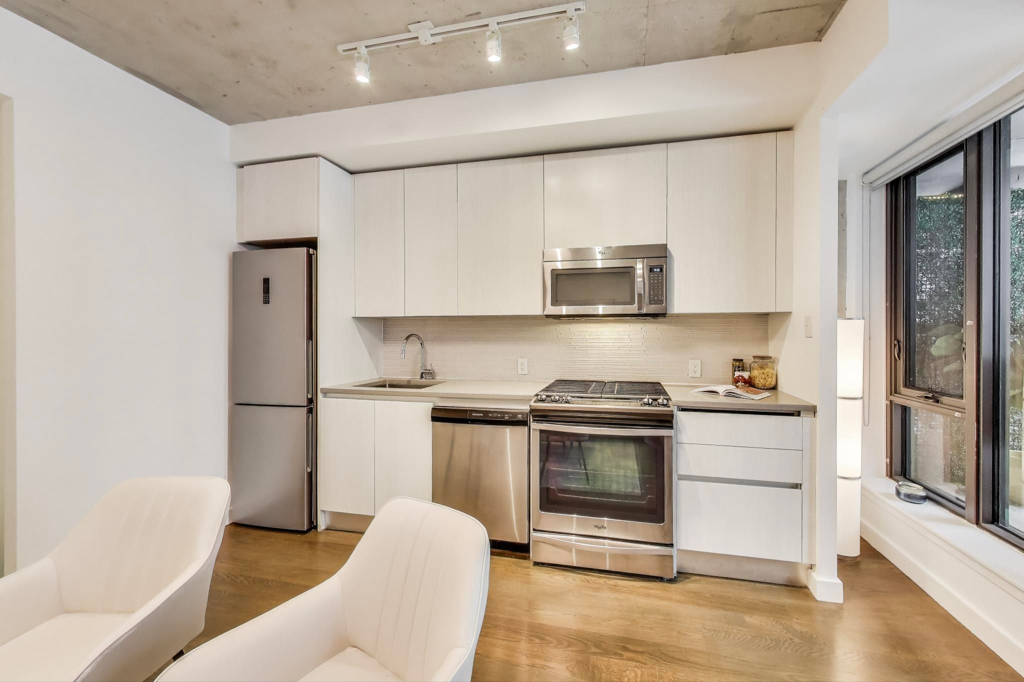 • Thoughtfully designed 1-bedroom loft available fully furnished.