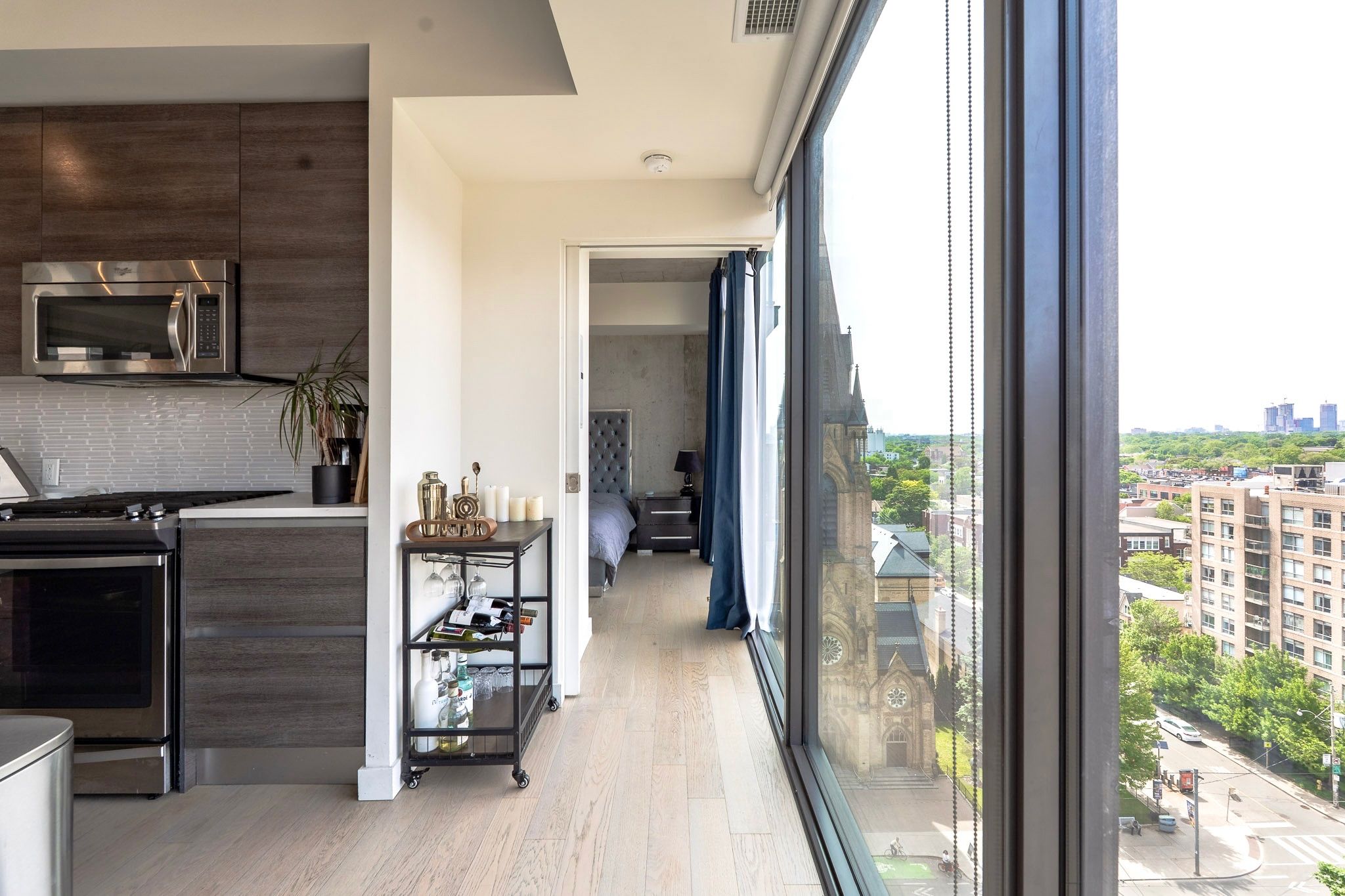 Welcome to this stunning 10th-floor corner loft in the vibrant heart of king west; just steps to the financial district and surrounded by toronto's premier dining, nightlife, and boutique shopping. Flooded with natural light, this bright and spacious residence showcases dramatic floor-to-ceiling windows with sweeping city views, exposed concrete ceilings, and sleek hardwood floors throughout. The contemporary scavolini kitchen is designed for both everyday living and effortless entertaining, seamlessly flowing into the expansive open-concept living and dining areas. Step outside to your oversized private balcony, complete with a built-in bbq and dedicated propane line - perfect for summer hosting or unwinding above the city skyline. Featuring two generous bedrooms, two full bathrooms, designer finishes, and custom hunter douglas roller blinds, this exceptional loft offers refined urban living in one of toronto's most sought-after neighbourhoods.