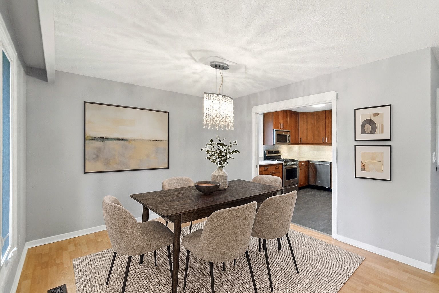 • Modern updates throughout, including kitchens with stainless steel appliances.
