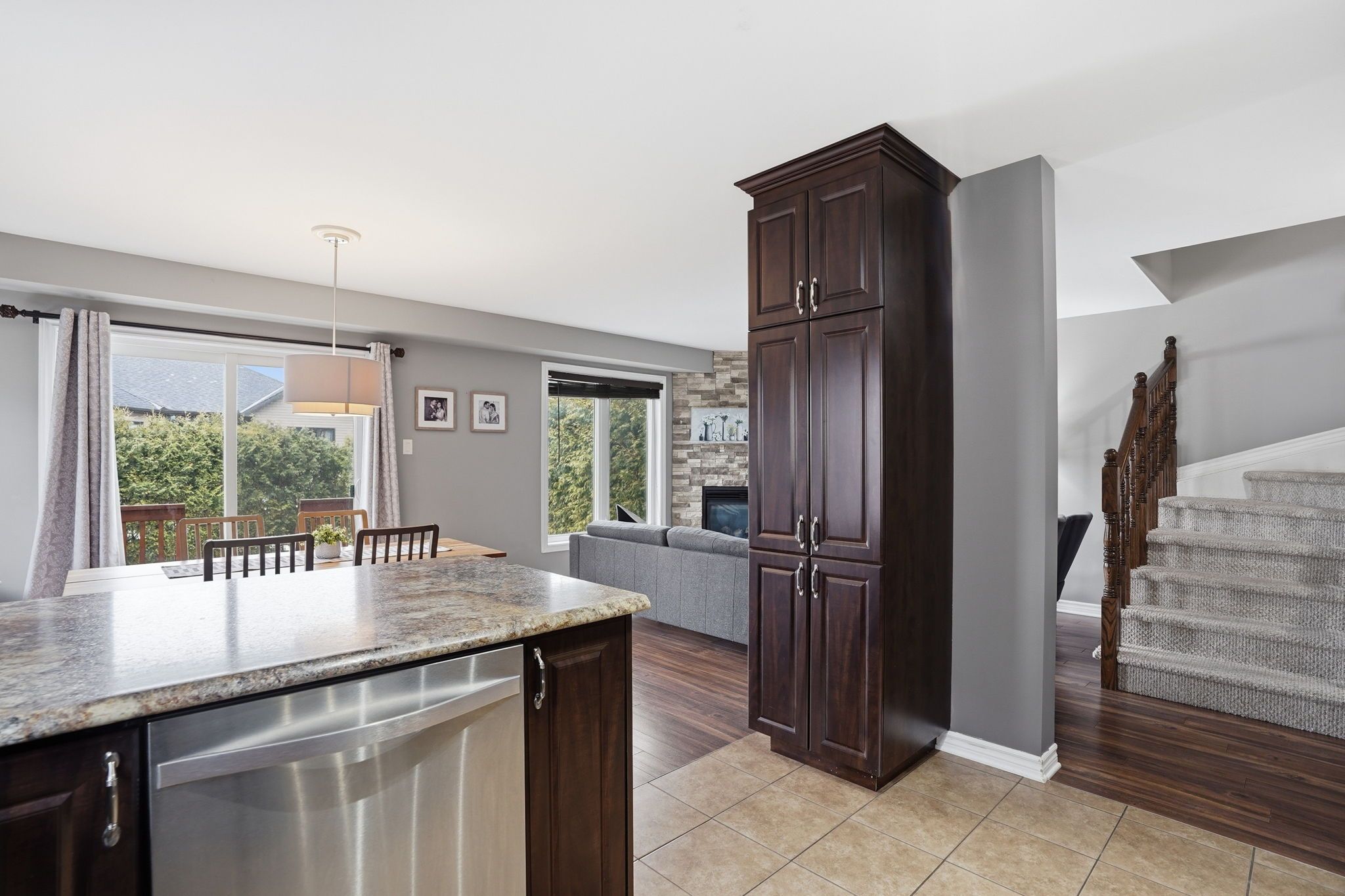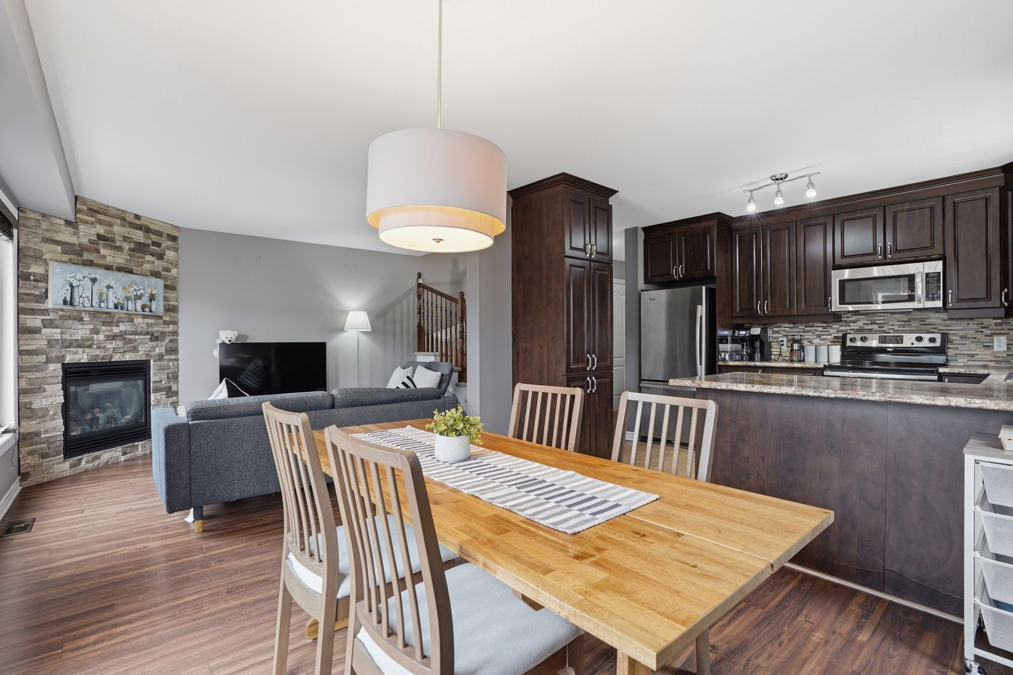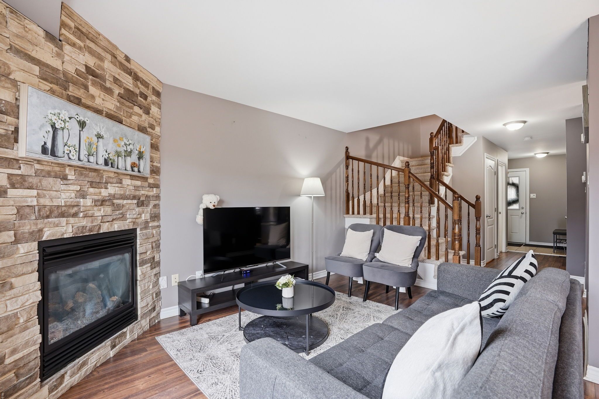 Welcome to this bright and beautifully maintained semi-detached 2-storey home, perfectly located just steps from parks, schools, recreation, and everyday amenities-an ideal fit for families and buyers looking for both comfort and convenience. Filled with natural light, the main floor offers a warm and inviting layout. A welcoming foyer leads into a well-appointed kitchen with ample cabinetry and counter space, complete with appliances. The eating area flows seamlessly to the backyard through patio doors, creating the perfect indoor-outdoor setup for entertaining or relaxing. The cozy living room, featuring a gas fireplace, is the perfect place to unwind, while a convenient 2-piece bathroom completes the main level. Upstairs, the spacious primary bedroom is a true retreat with two walk-in closets. Two additional well-sized bedrooms, a stylish 5-piece bathroom, and a second-floor laundry area add comfort and practicality for everyday living. Step outside and enjoy the beautifully landscaped, hedged backyard-private, peaceful, and perfect for summer evenings. The extra-wide paved driveway offers parking for up to four vehicles, a rare and valuable feature. The unfinished lower level with bathroom rough-in provides incredible potential to customize and add even more living space to suit your needs. A move-in ready home in a sought-after location-offering space, comfort, and future potential. Don't miss this opportunity!