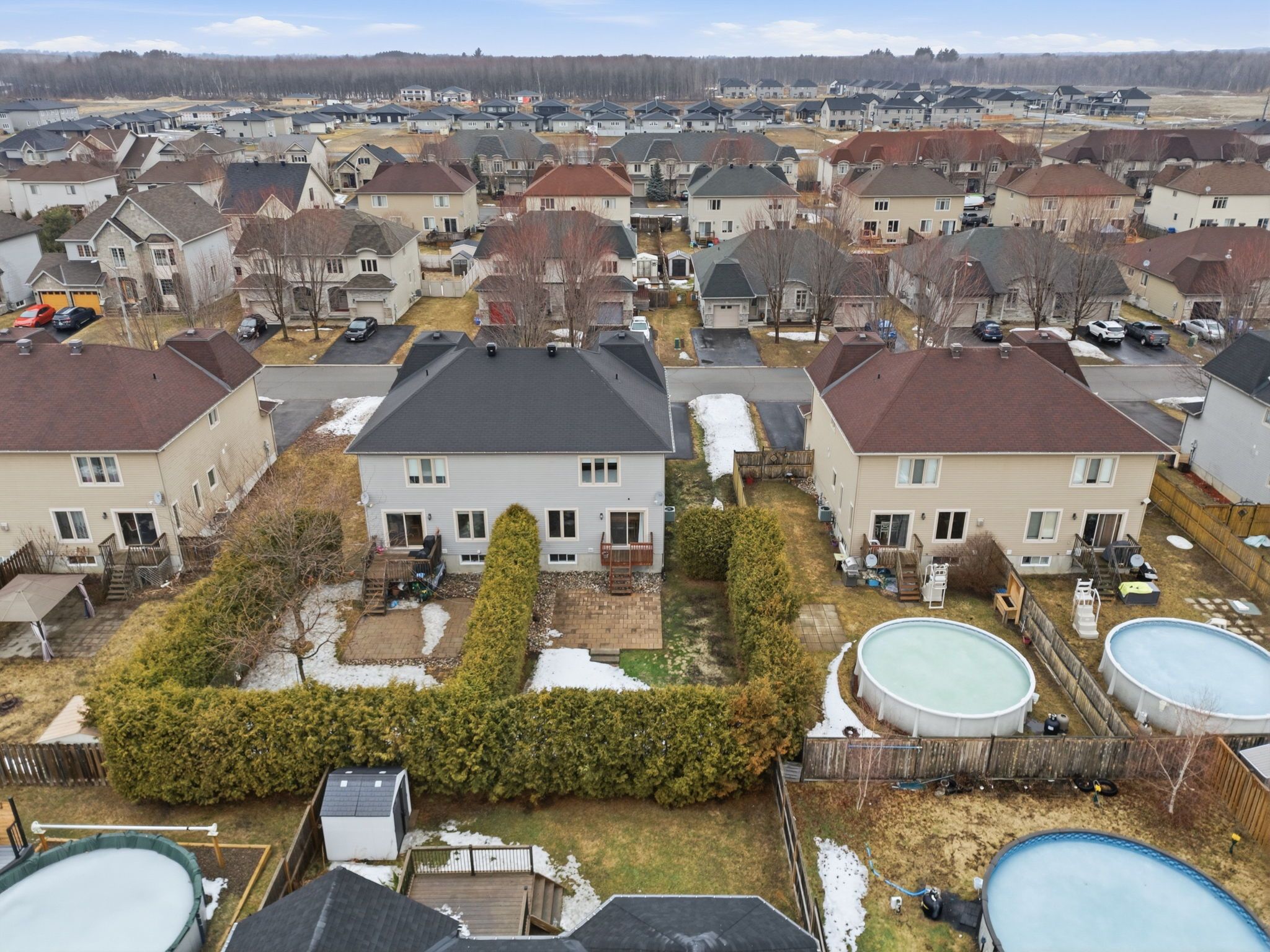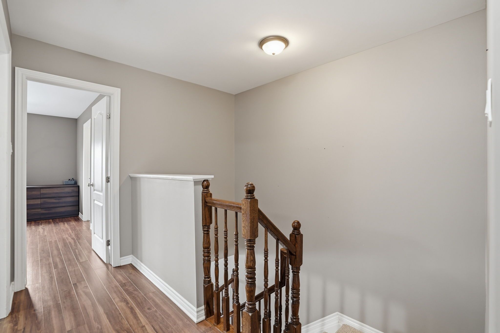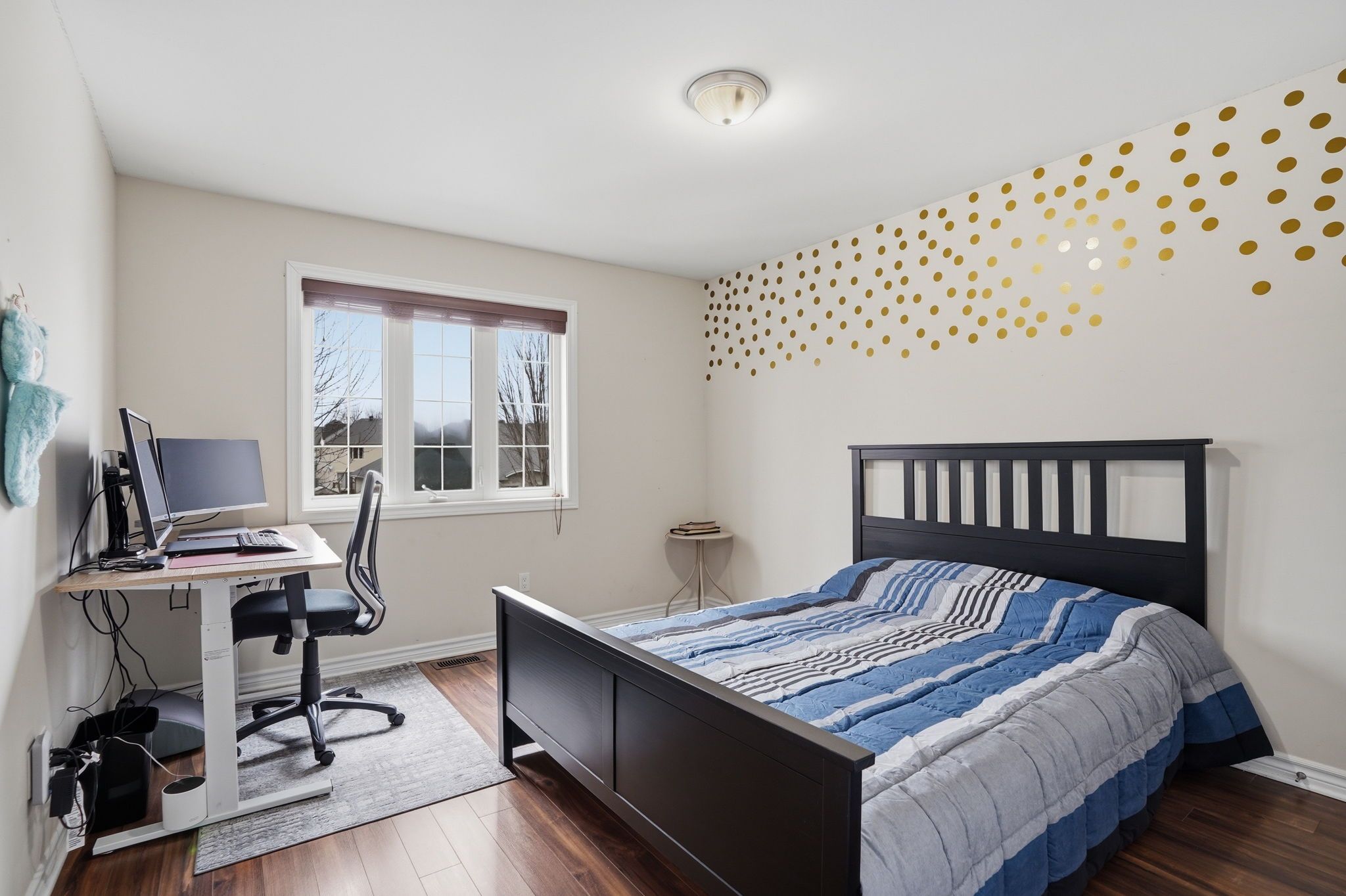 Welcome to this bright and beautifully maintained semi-detached 2-storey home, perfectly located just steps from parks, schools, recreation, and everyday amenities-an ideal fit for families and buyers looking for both comfort and convenience. Filled with natural light, the main floor offers a warm and inviting layout. A welcoming foyer leads into a well-appointed kitchen with ample cabinetry and counter space, complete with appliances. The eating area flows seamlessly to the backyard through patio doors, creating the perfect indoor-outdoor setup for entertaining or relaxing. The cozy living room, featuring a gas fireplace, is the perfect place to unwind, while a convenient 2-piece bathroom completes the main level. Upstairs, the spacious primary bedroom is a true retreat with two walk-in closets. Two additional well-sized bedrooms, a stylish 5-piece bathroom, and a second-floor laundry area add comfort and practicality for everyday living. Step outside and enjoy the beautifully landscaped, hedged backyard-private, peaceful, and perfect for summer evenings. The extra-wide paved driveway offers parking for up to four vehicles, a rare and valuable feature. The unfinished lower level with bathroom rough-in provides incredible potential to customize and add even more living space to suit your needs. A move-in ready home in a sought-after location-offering space, comfort, and future potential. Don't miss this opportunity!