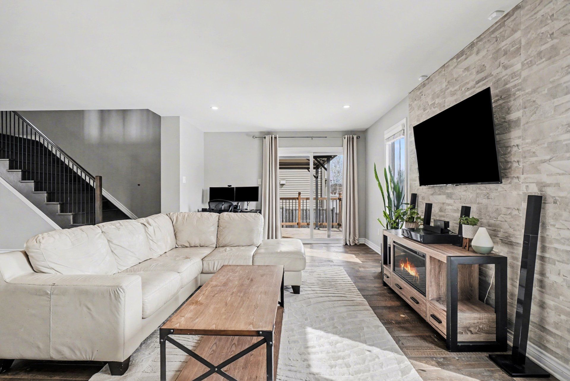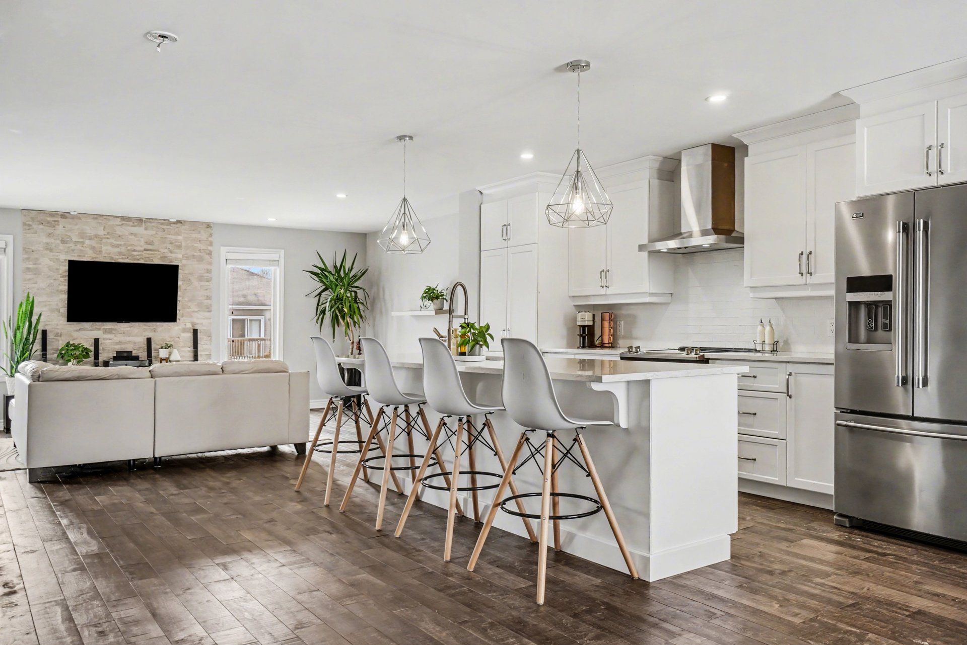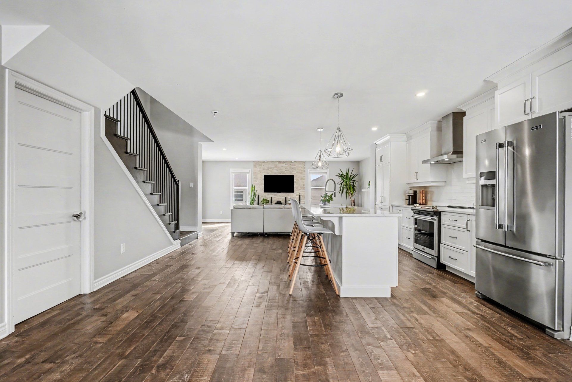 • Open-concept main level with spacious living room and modern kitchen.