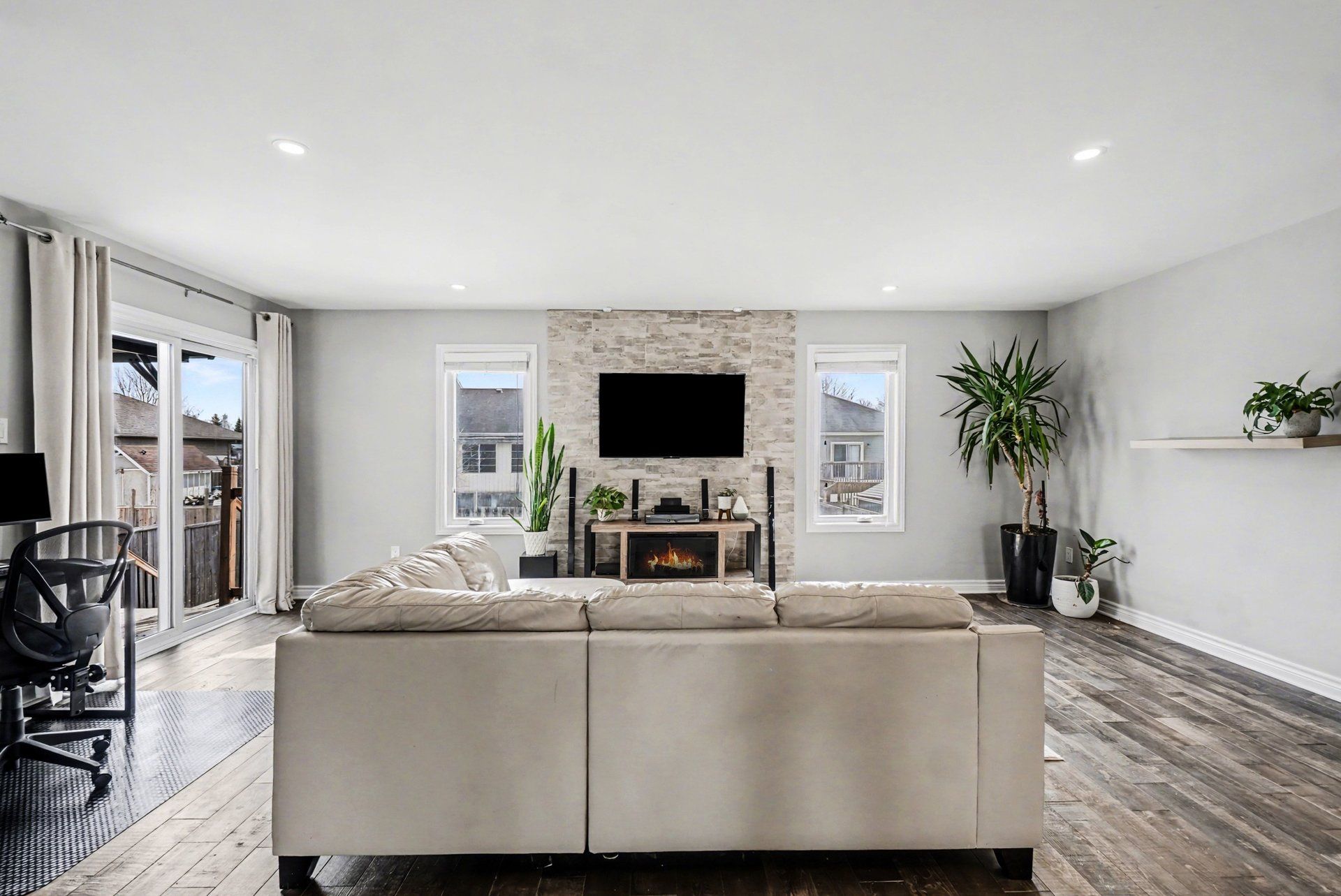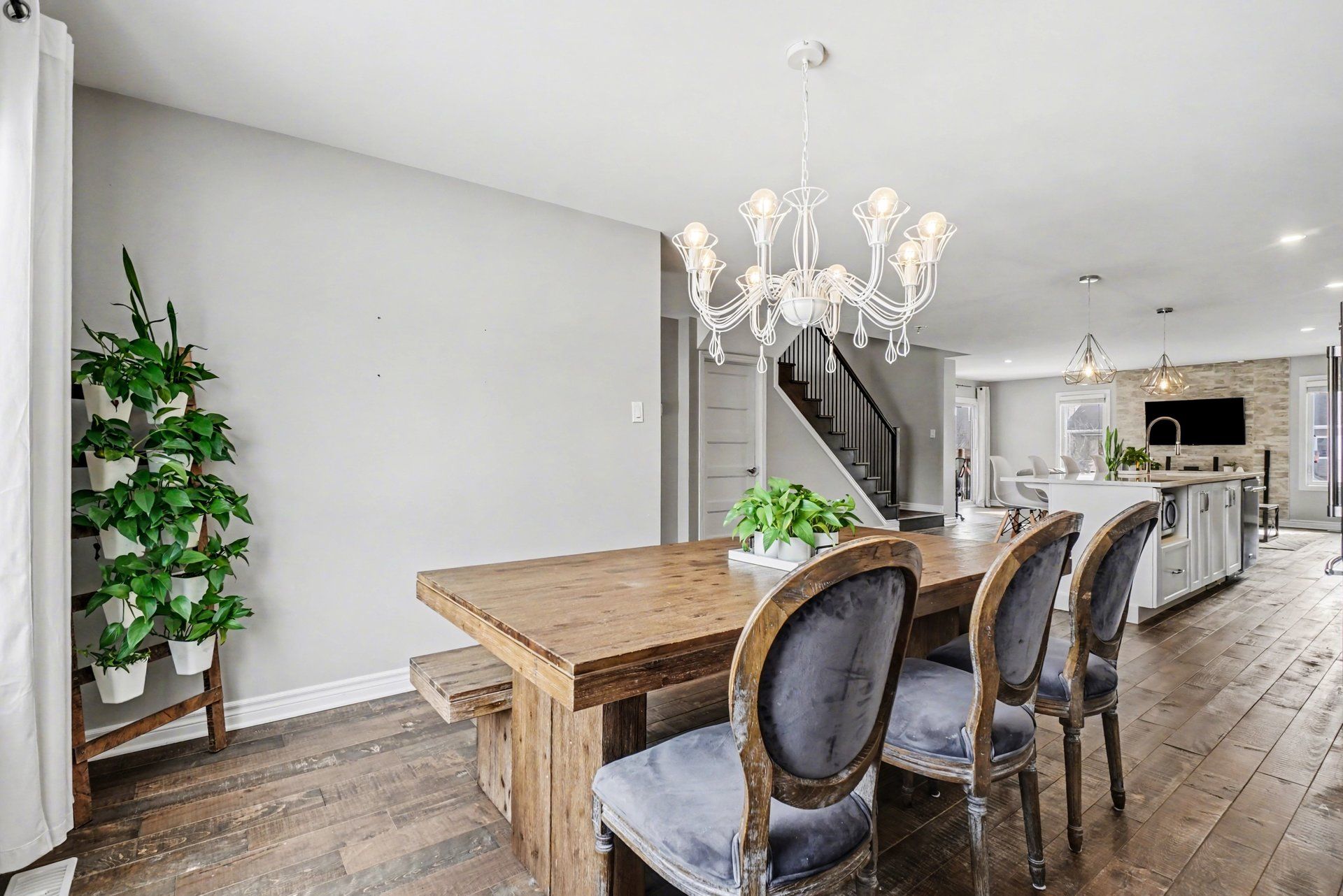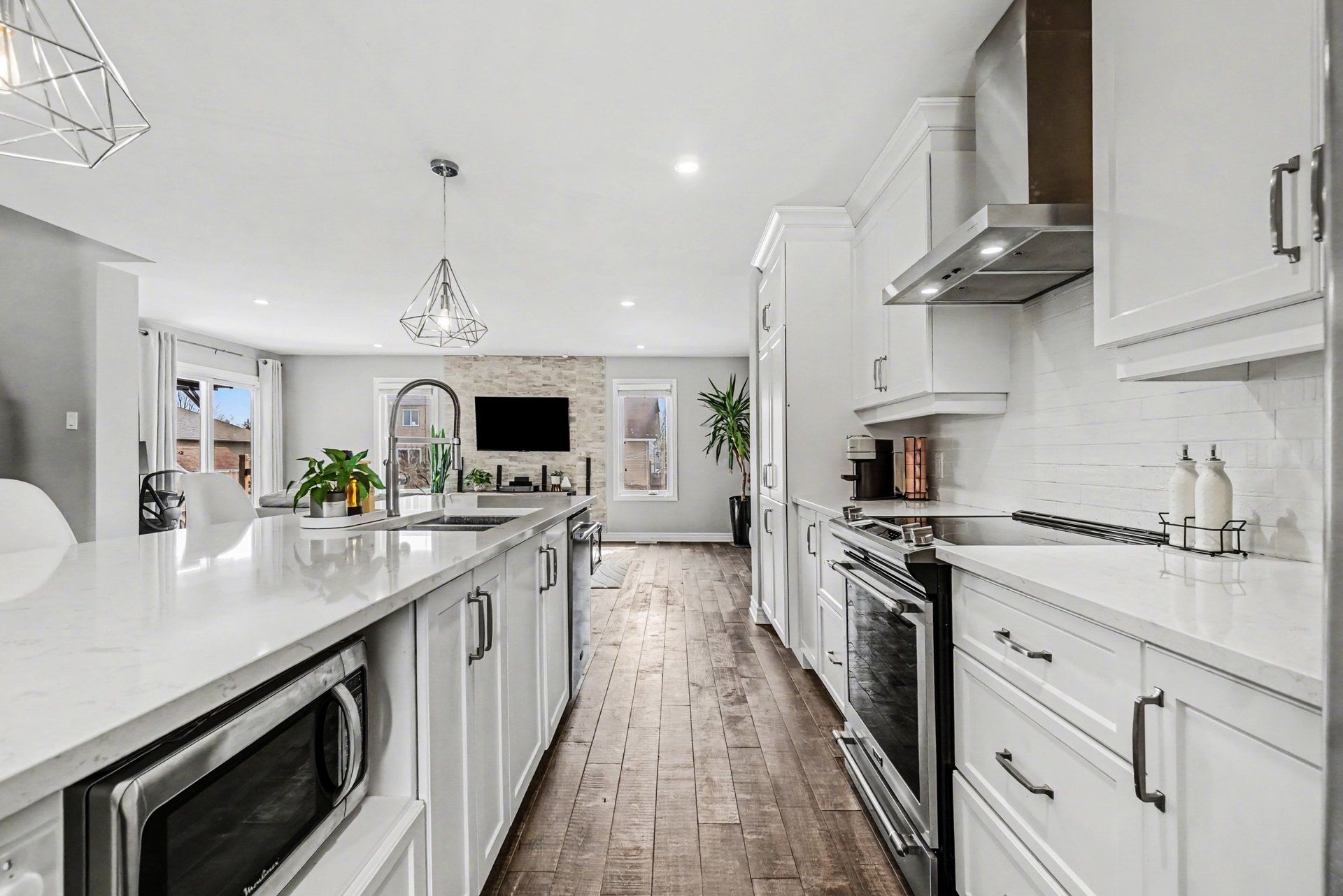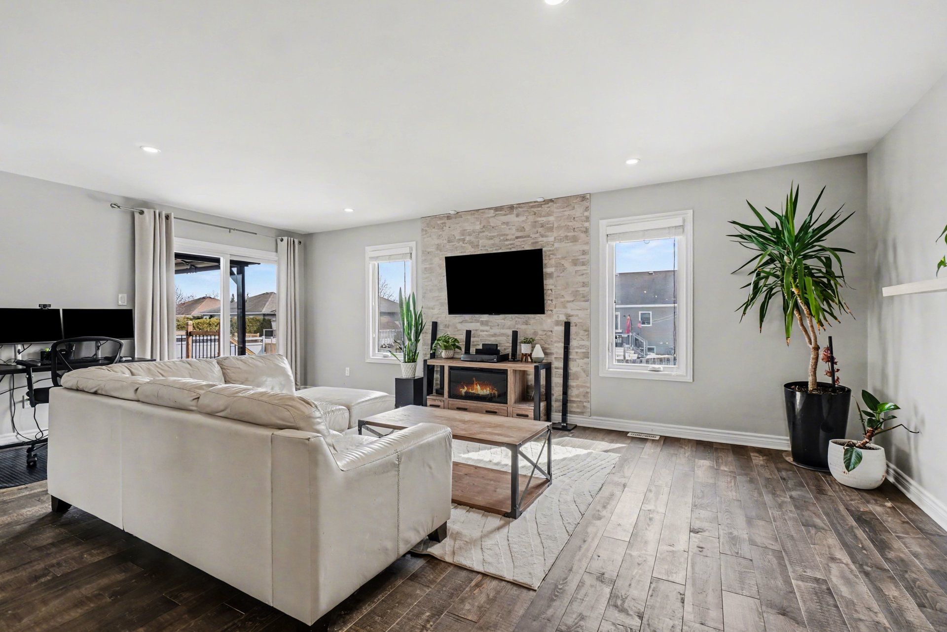 • Open-concept main level with spacious living room and modern kitchen.