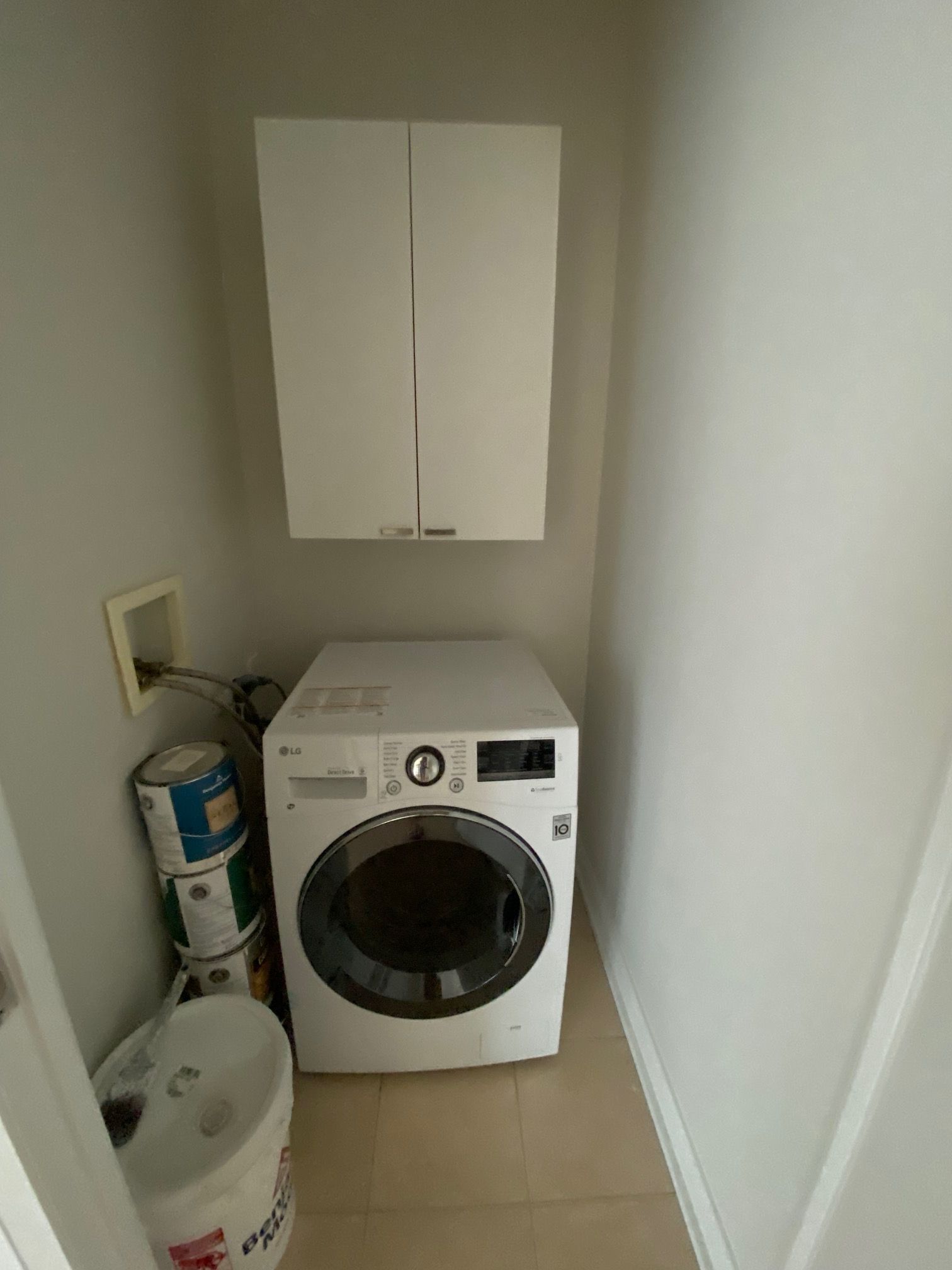 • Kitchen equipped with stainless steel appliances and pantry cupboards.