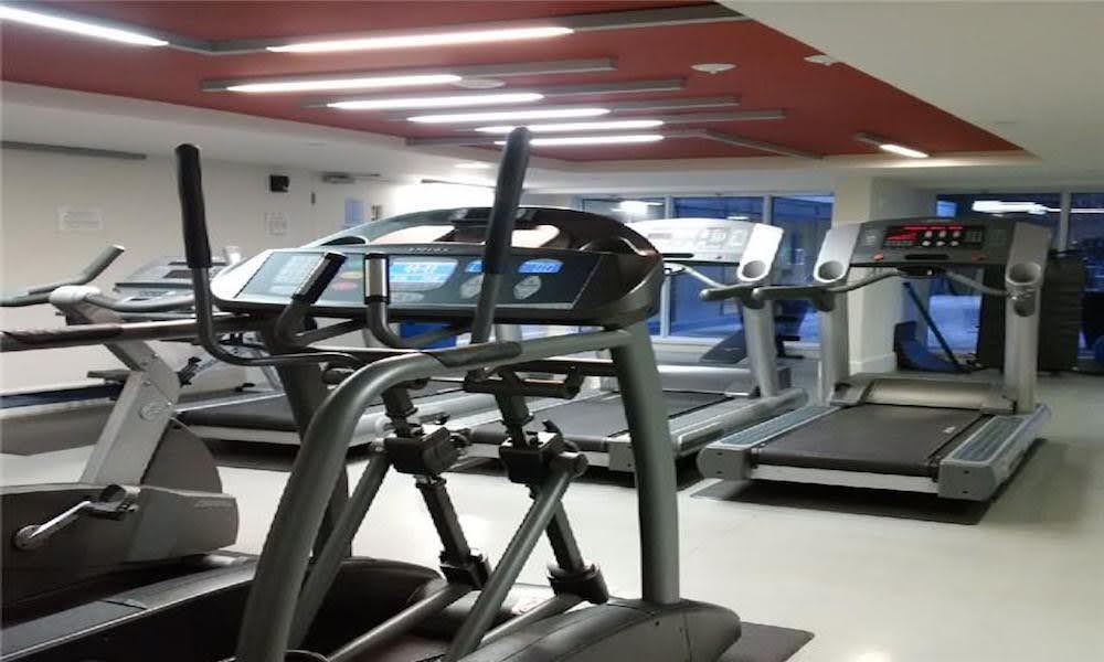 • Building offers amenities like a gym, pool, and rooftop patio.