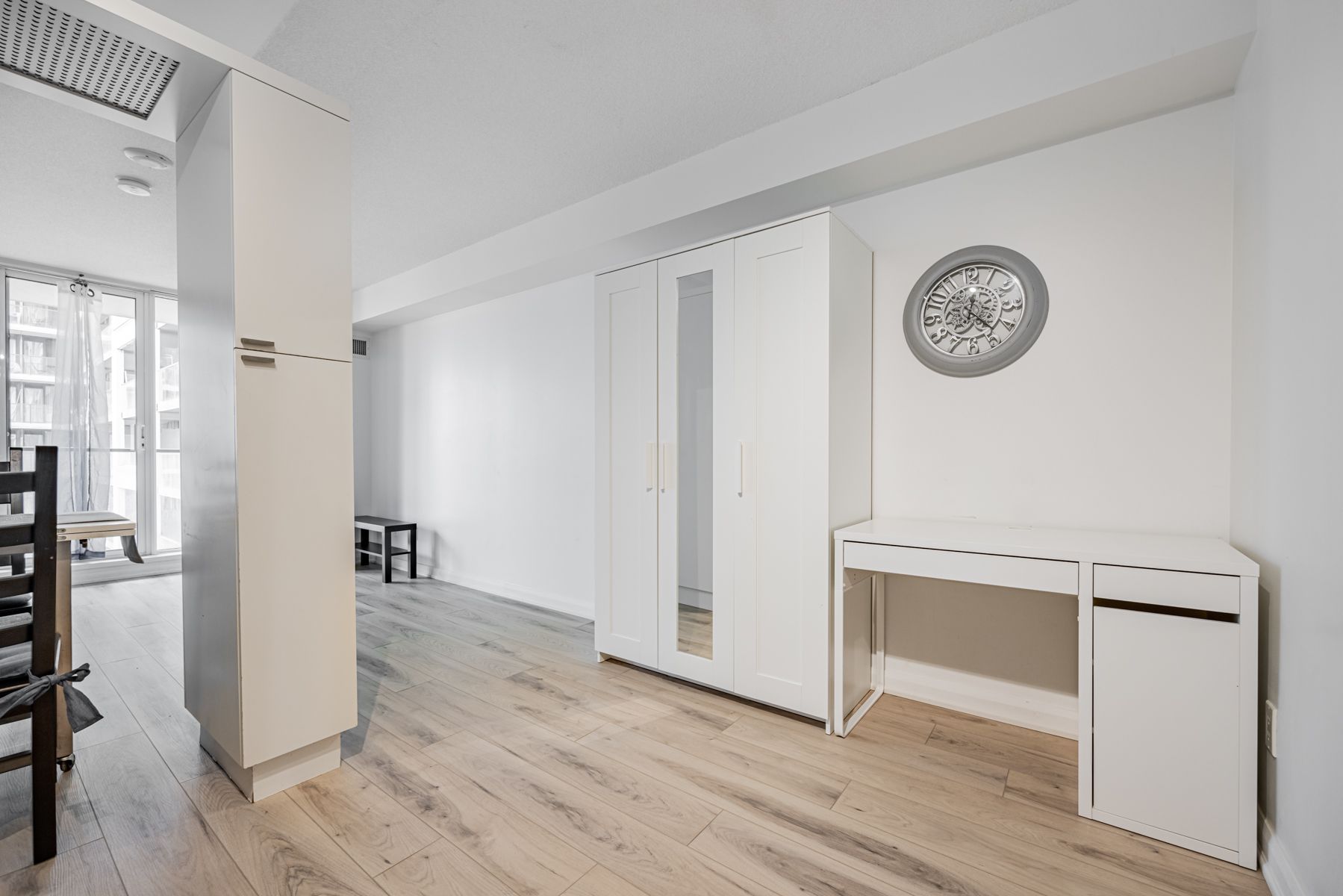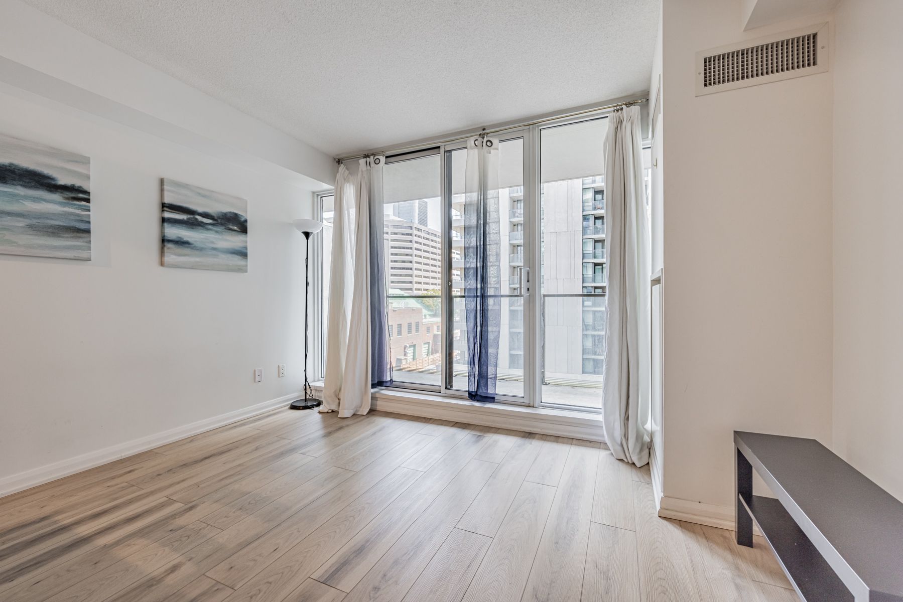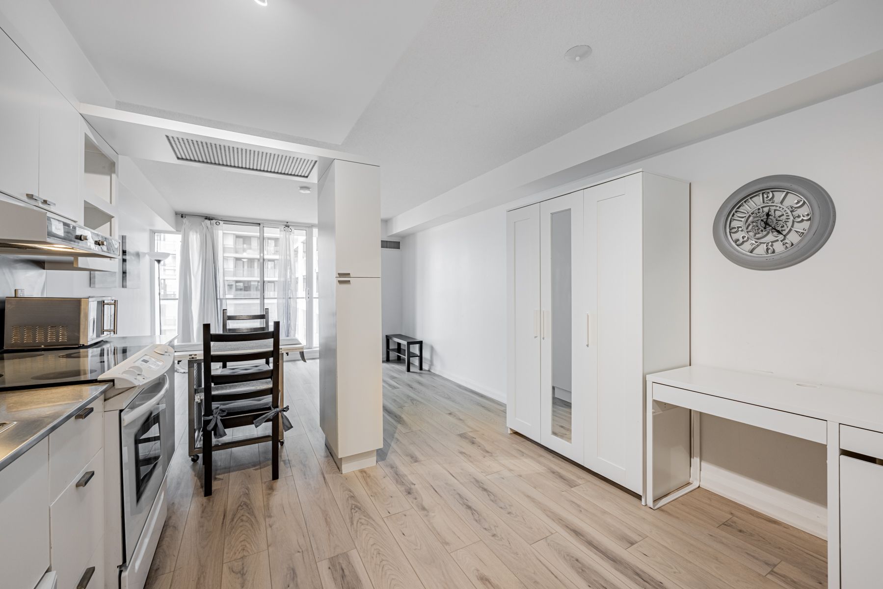 "one city hall studio" a luxury condo in the heart of the downtown toronto core. Outstanding 99% walk score! By eaton centre, on subway line. Walk to u of t, financial district, hospitals. Excellent bachelor suite, open concept kitchen with stainless steel kitchen counter and back-splash. Floor to ceiling windows, full-length open balcony facing south overlooks courtyard. Laminate floor throughout. 24 hours concierge, gym, indoor pool, roof deck, visitor's parking and more! Move in ready! Fridge, stove, dishwasher, 2-in-1 washer/dryer. Desk, table & chairs, locker included! Window coverings. Close to subways toronto coach terminal, steps to city hall, longos grocery, hospital, university of toronto, ryerson,oca