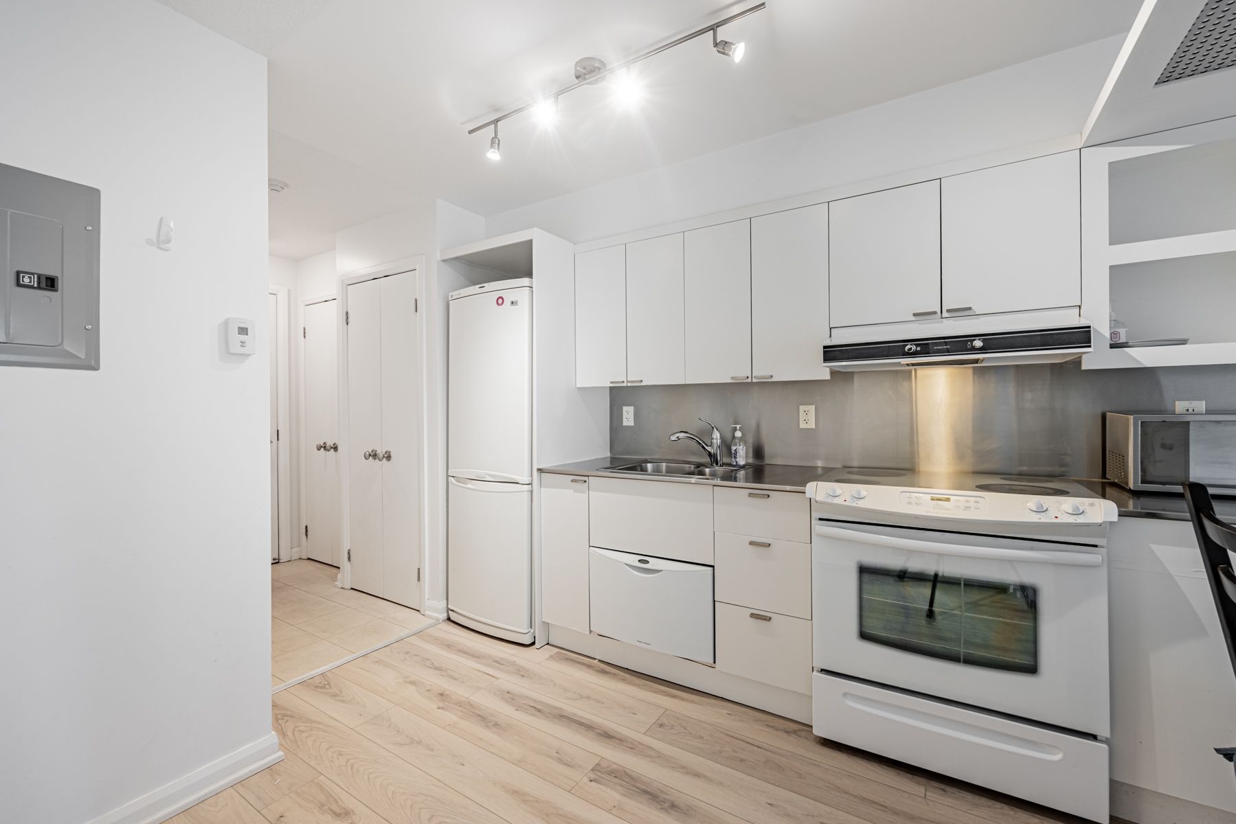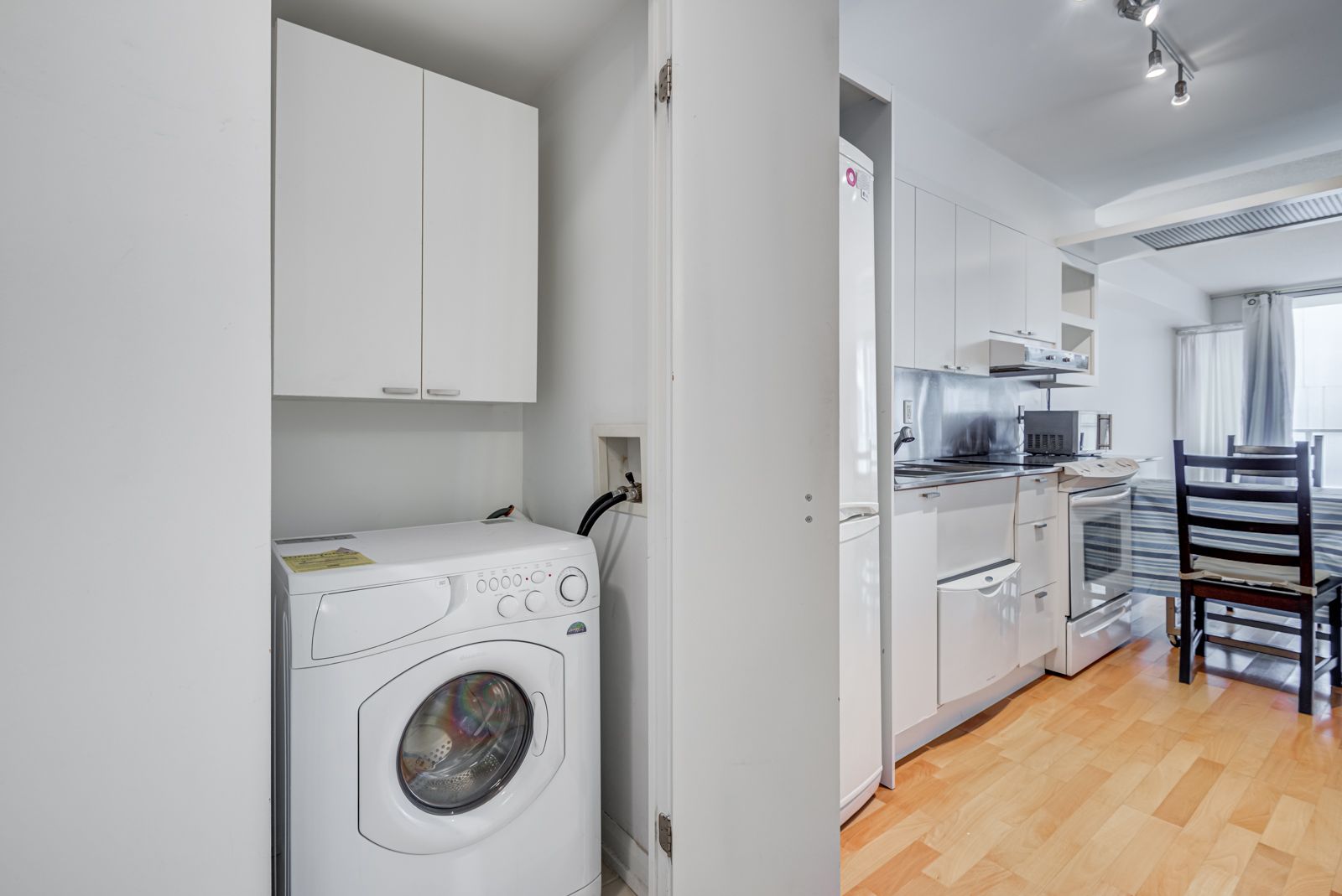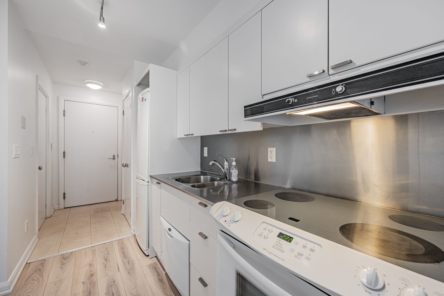 "one city hall studio" a luxury condo in the heart of the downtown toronto core. Outstanding 99% walk score! By eaton centre, on subway line. Walk to u of t, financial district, hospitals. Excellent bachelor suite, open concept kitchen with stainless steel kitchen counter and back-splash. Floor to ceiling windows, full-length open balcony facing south overlooks courtyard. Laminate floor throughout. 24 hours concierge, gym, indoor pool, roof deck, visitor's parking and more! Move in ready! Fridge, stove, dishwasher, 2-in-1 washer/dryer. Desk, table & chairs, locker included! Window coverings. Close to subways toronto coach terminal, steps to city hall, longos grocery, hospital, university of toronto, ryerson,oca