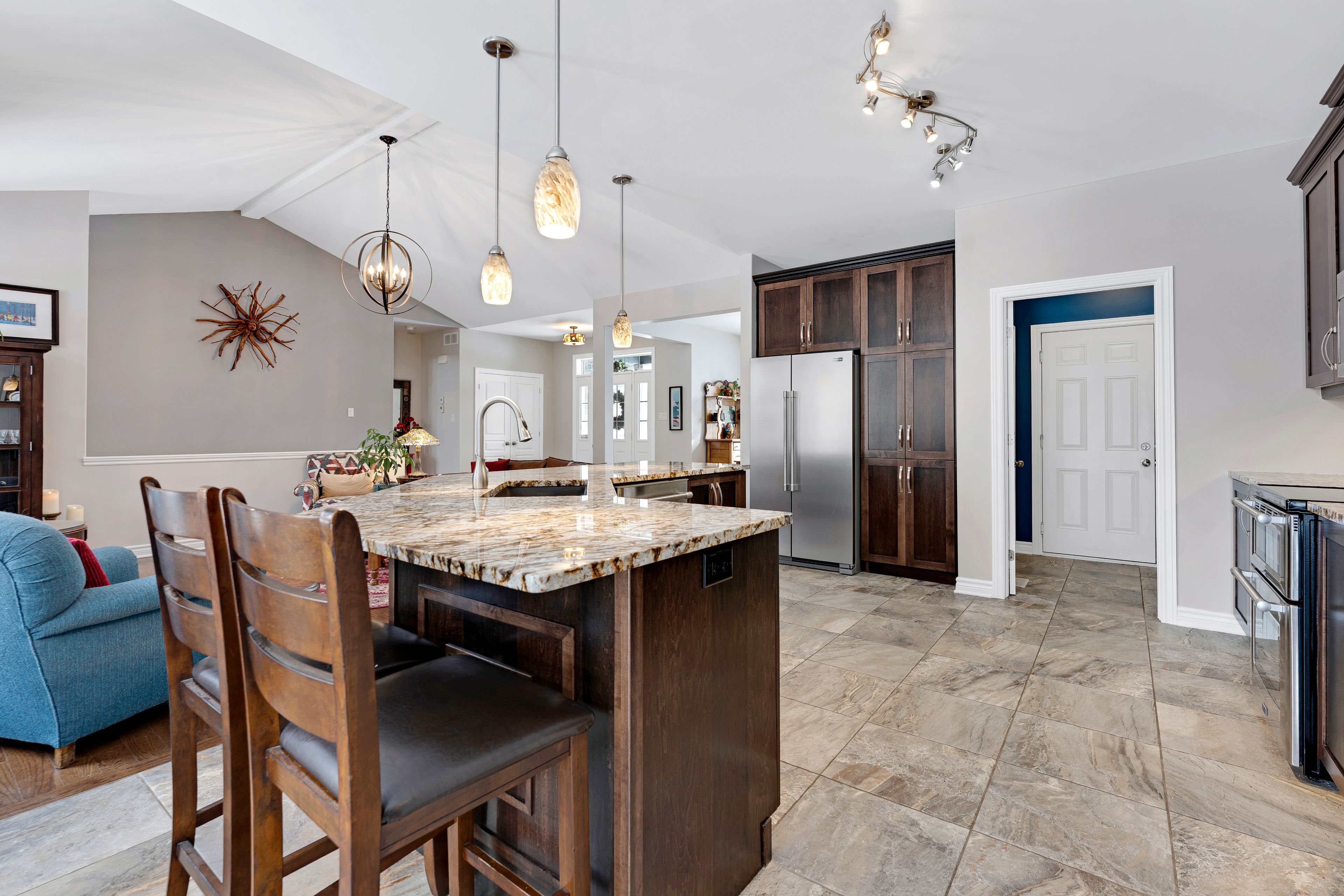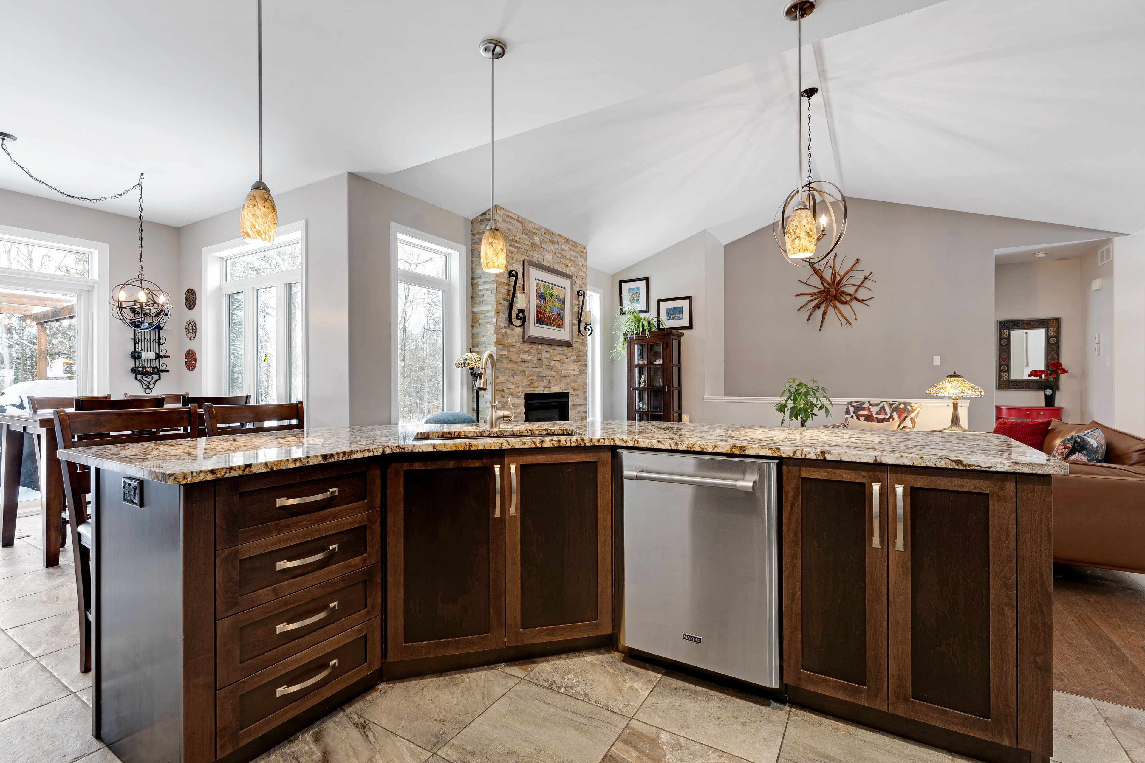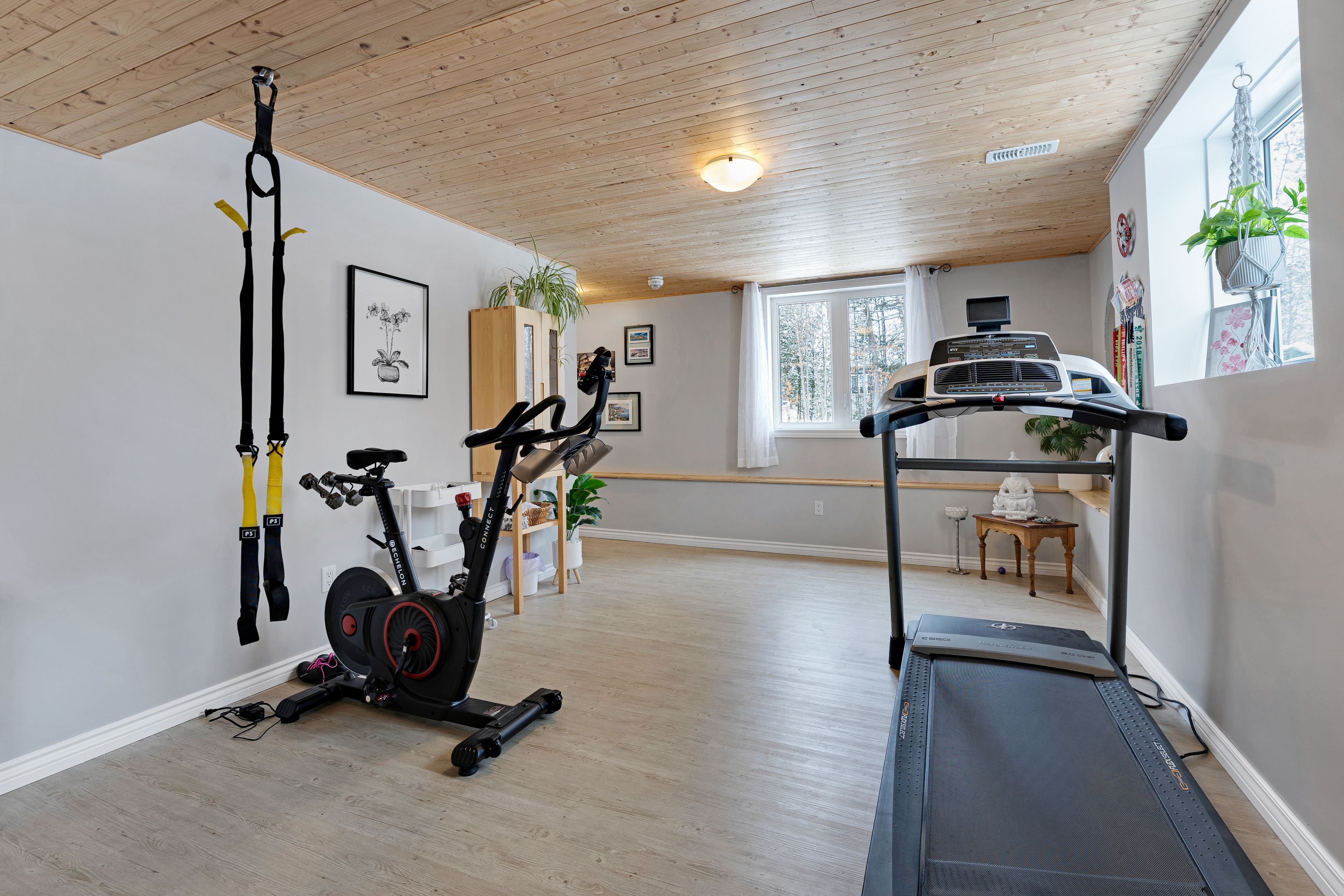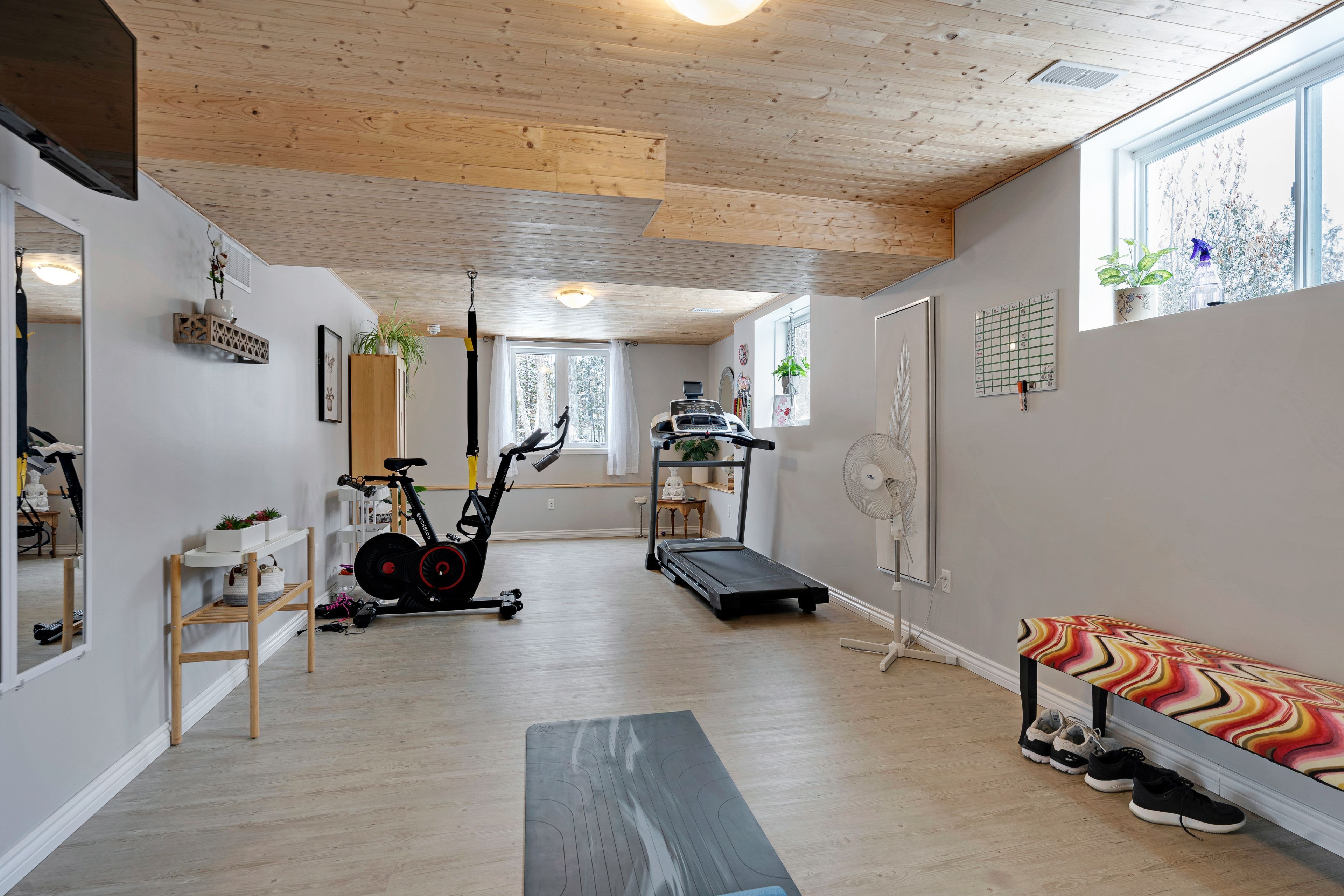 Welcome to beckenridge estates, where privacy, space, and style come together just 5 minutes from carleton place. This beautifully maintained 3 bedroom, 2 bathroom, 1,700 sq. Ft. Walkout bungalow sits on a stunning 1-acre treed lot, surrounded by extensive perennial gardens that create a peaceful, private retreat. Step inside to an inviting open concept main living space featuring a 13' vaulted ceiling and a cozy gas fireplace. The spacious kitchen is both functional and impressive with abundant cabinetry, maytag appliances, an oversized granite island with breakfast bar, a bright eating nook, and a dedicated coffee bar. The primary suite is tucked away for added privacy and includes a spacious 5-piece ensuite with a glass shower and walk-in closet. On the opposite side of the home, you'll find two additional bedrooms and a full bathroom-ideal for family, guests, or a home office. The large finished walkout basement boasts a wood pellet stove adding even more warmth to the pine detailing. Enjoy the calming zen-inspired fitness room or gather round the recreation area for movie nights or game day. Outside is where this property truly shines. Enjoy the sun and scenery from your private two-tiered 14' x 14' decks, unwind in the hot tub year-round, gather around the fire pit, and grow your own produce in the enclosed vegetable garden. Outbuildings offer excellent storage and flexible space for hobbies or a workshop. For outdoor enthusiasts, the home is also just a 1-minute walk to the ovr trail, making it easy to enjoy atving and snowmobiling right from your doorstep. Country living without giving up the convenience of town amenities nearby.